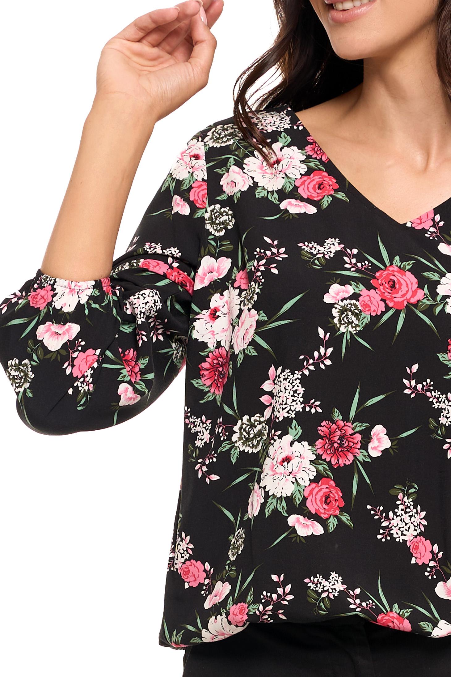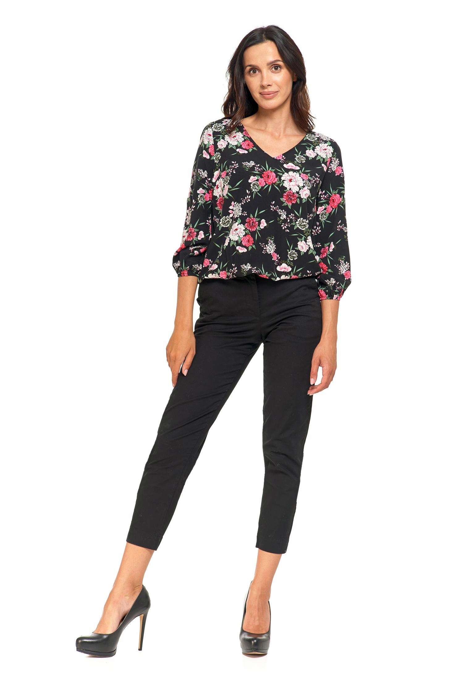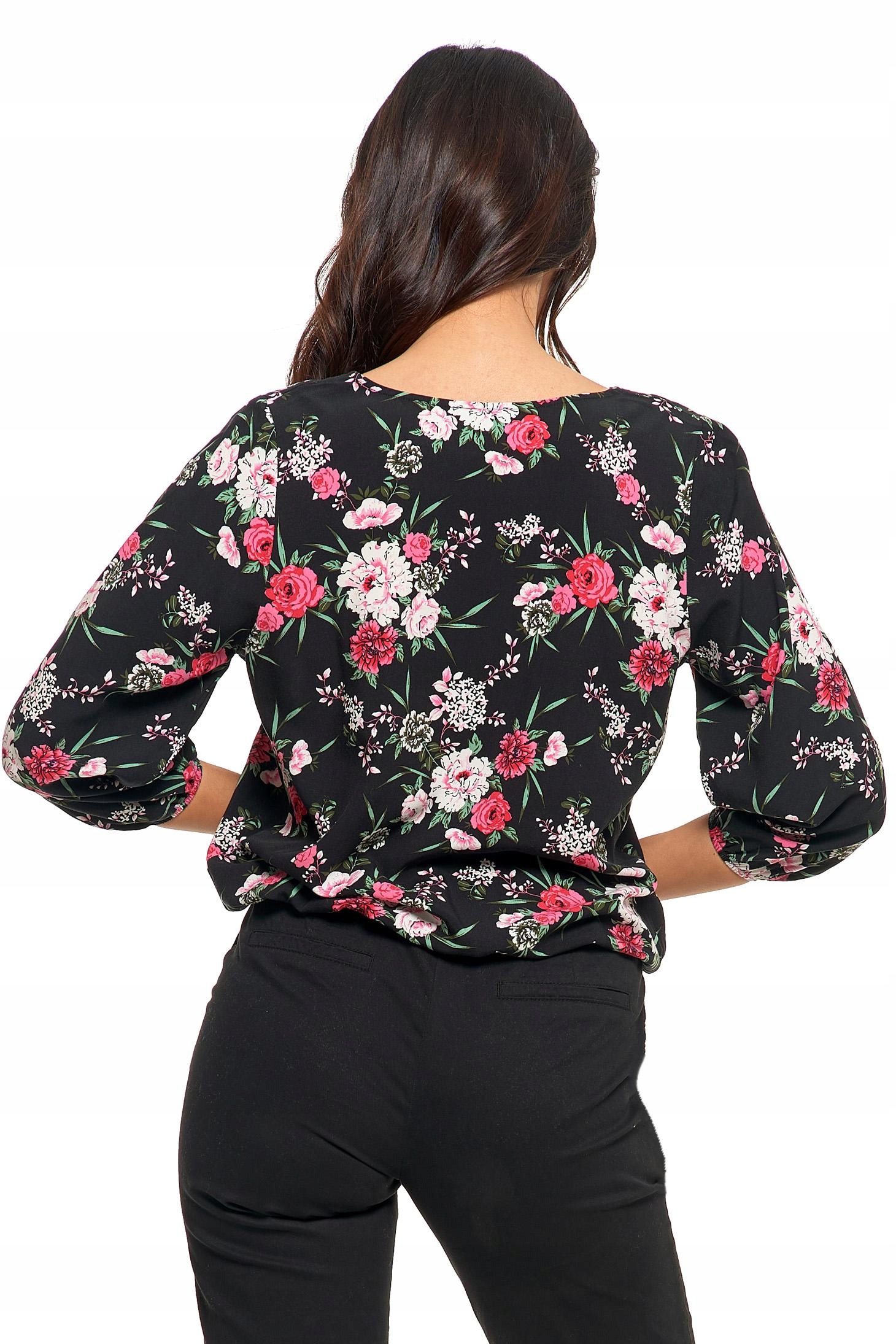 Bluzka Damska Elegancka w Kwiatki Modna Rękawy Ze Ściągaczem MORAJ