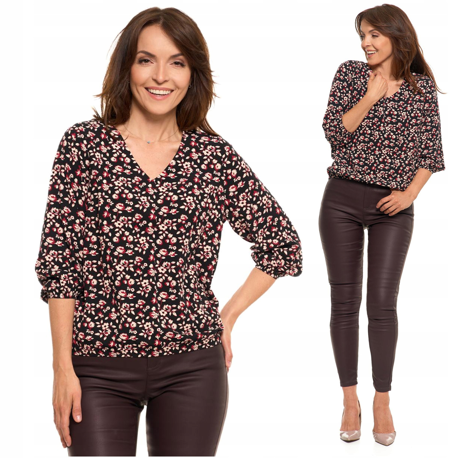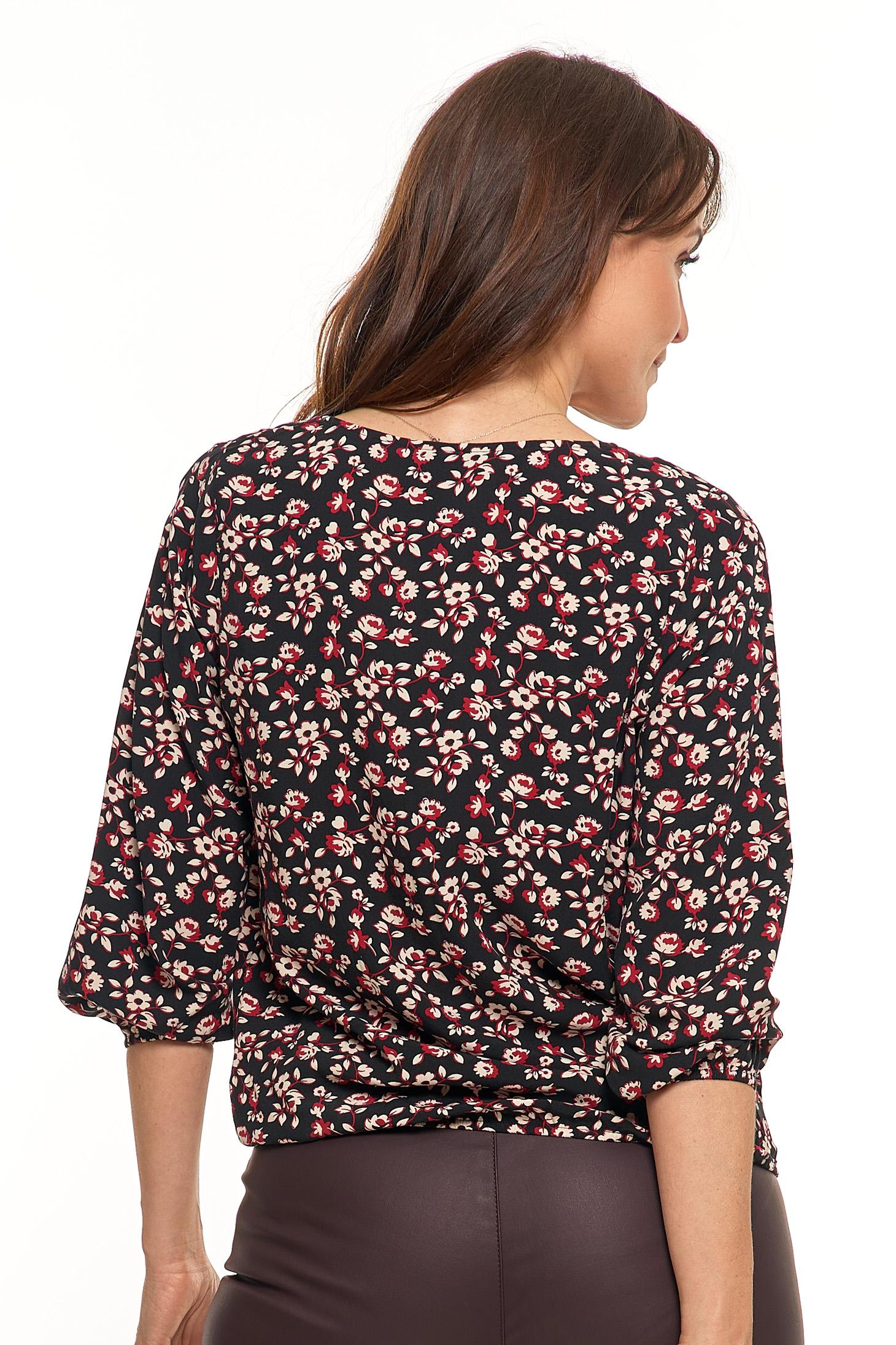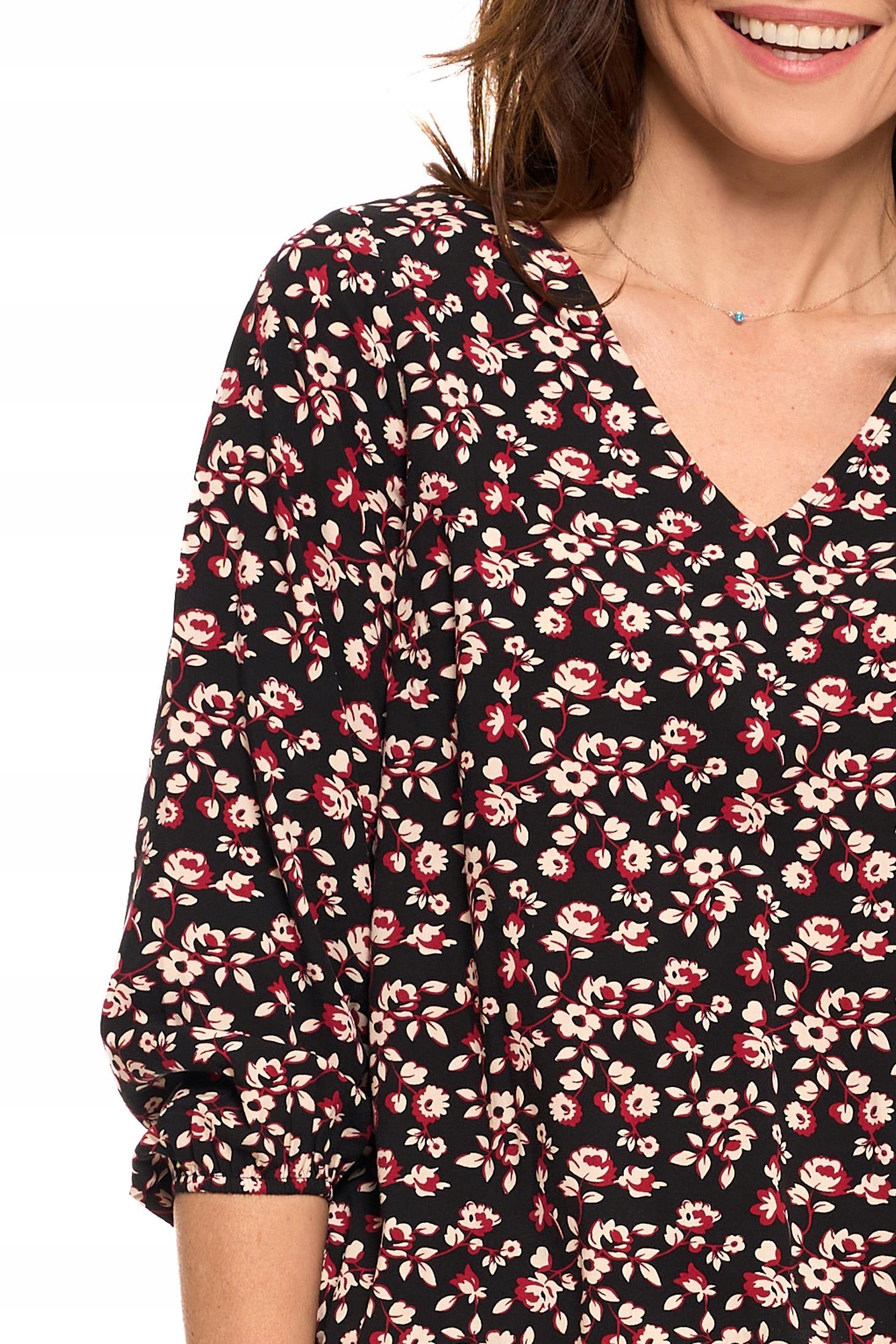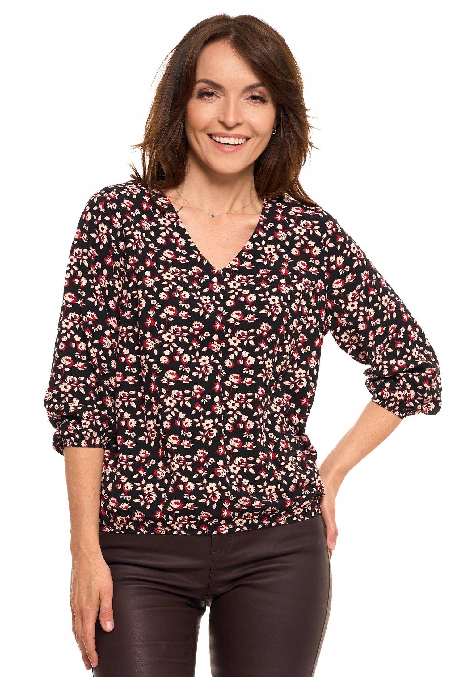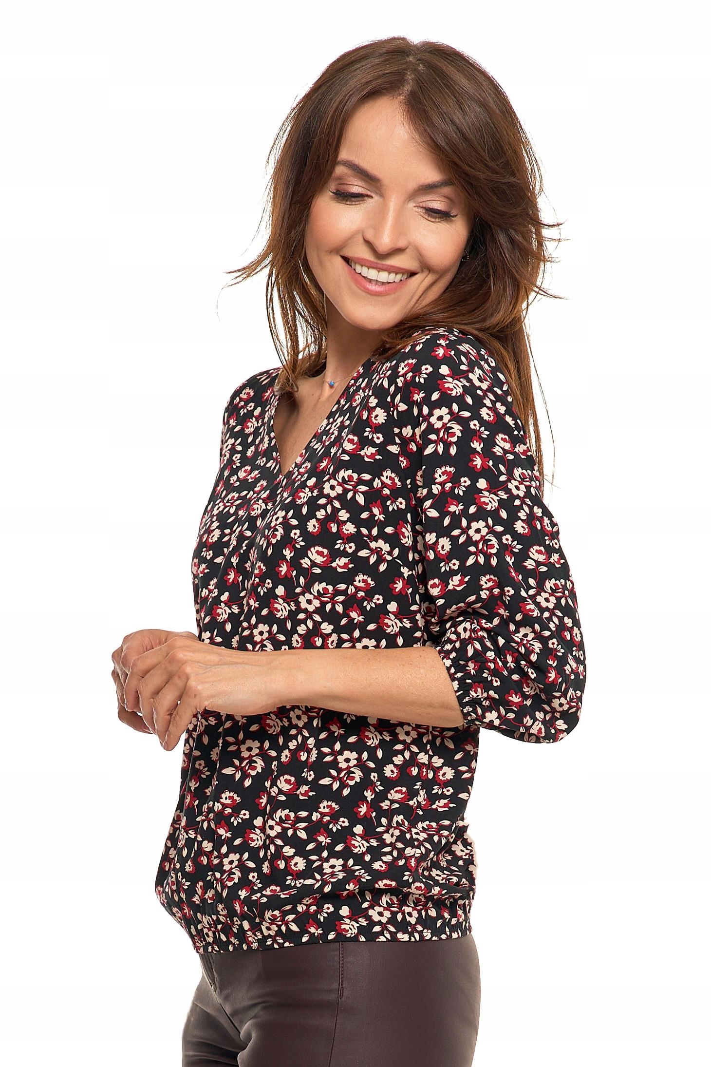 Bluzka Damska Elegancka w Kwiatki Modna Rękawy Ze Ściągaczem MORAJ