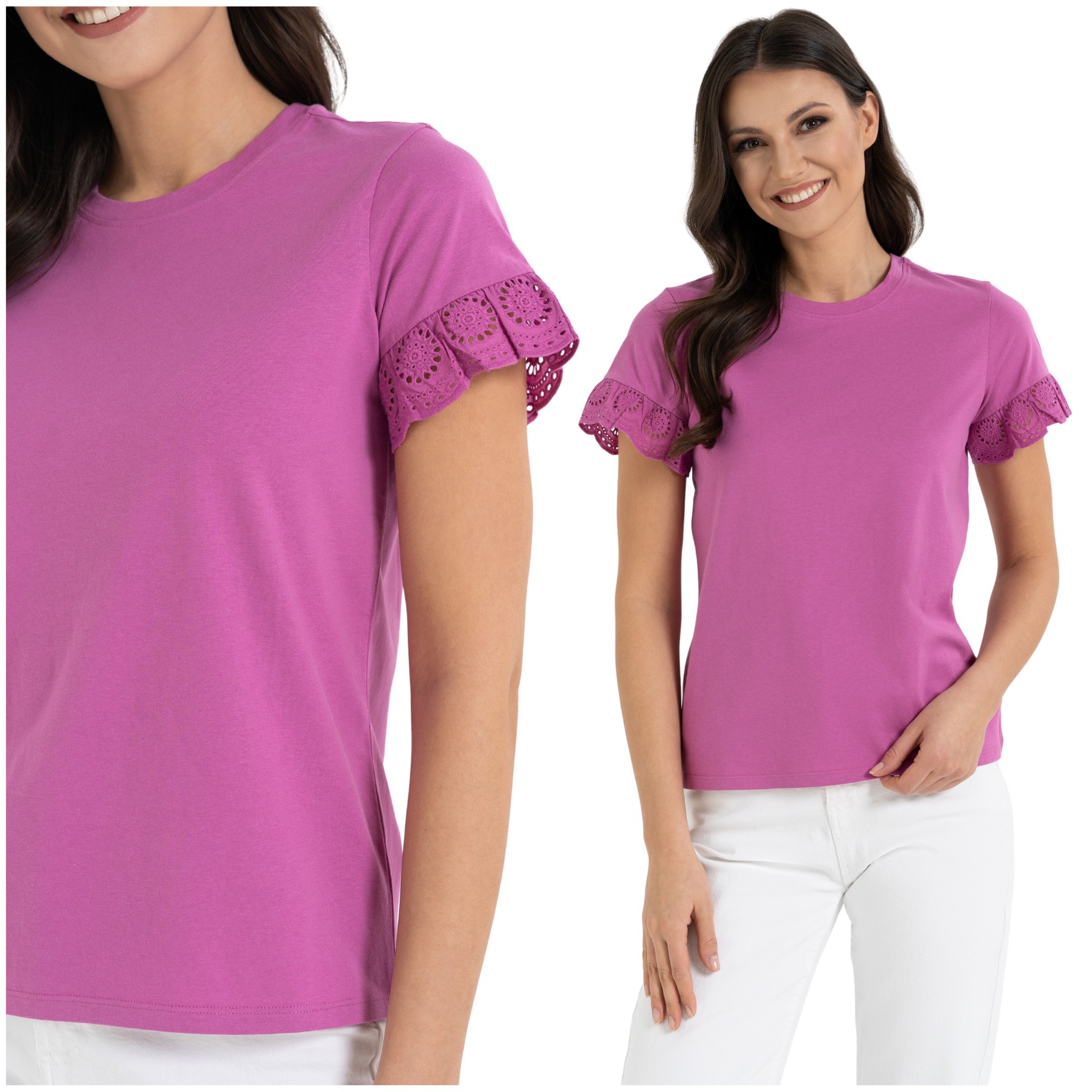 BLUZKA DAMSKA ELEGANCKI RĘKAW WYKOŃCZONY KORONKĄ GŁADKA KOSZULKA MORAJ