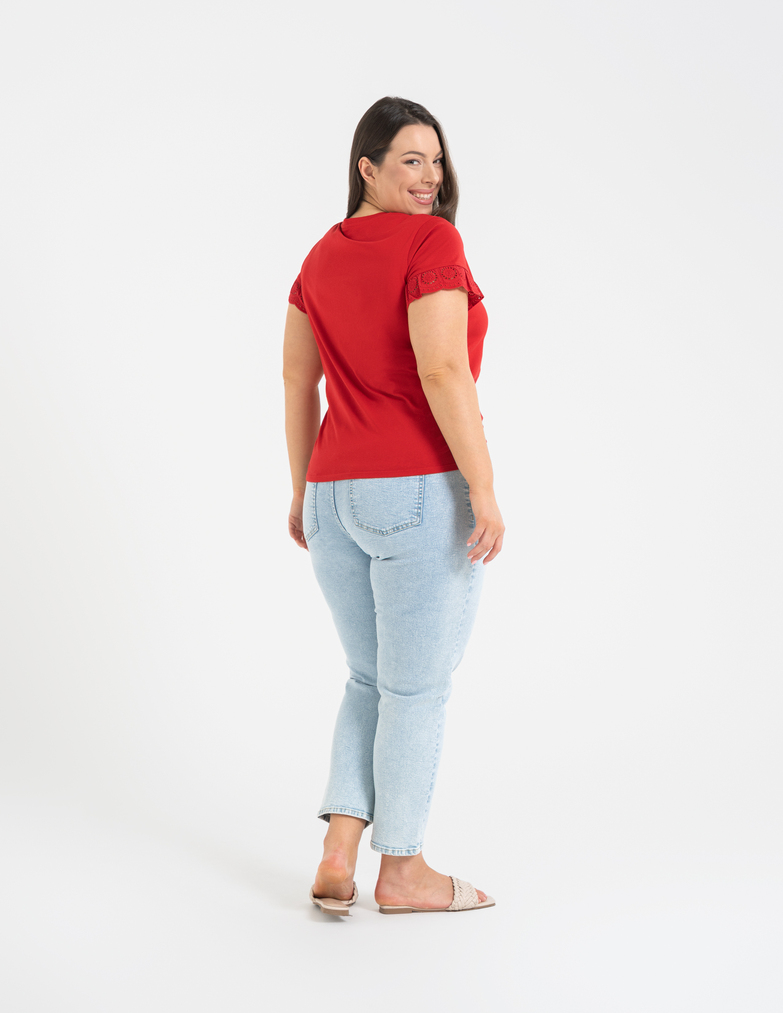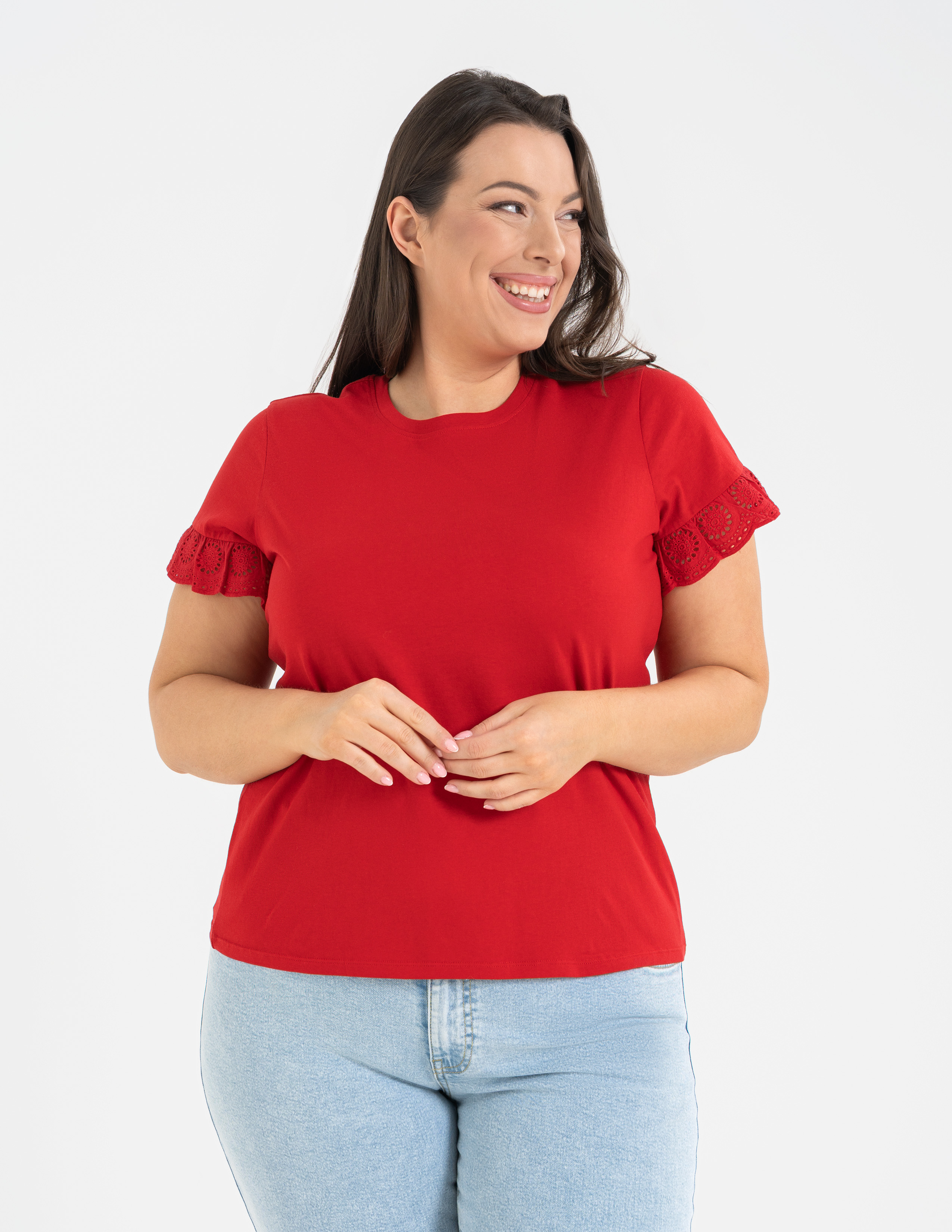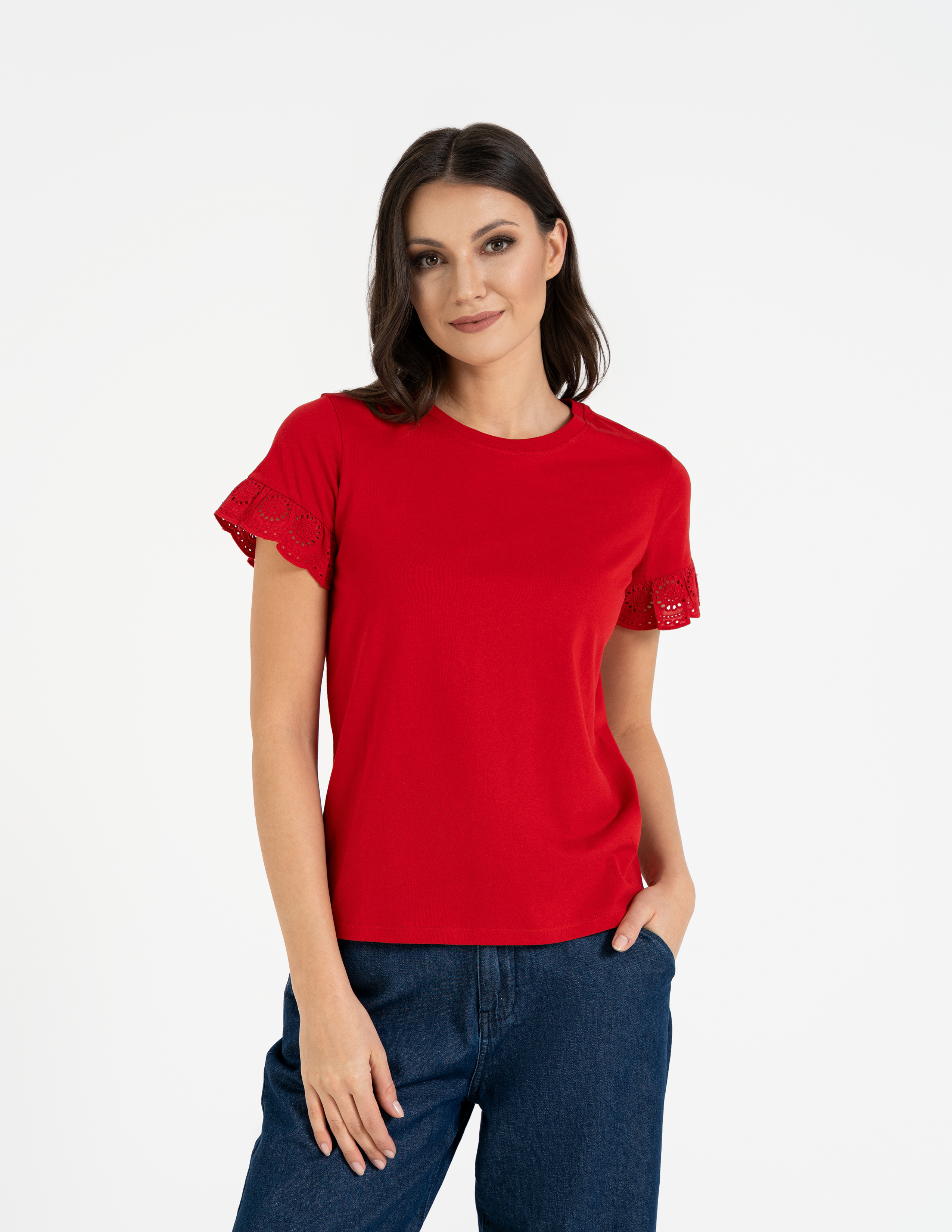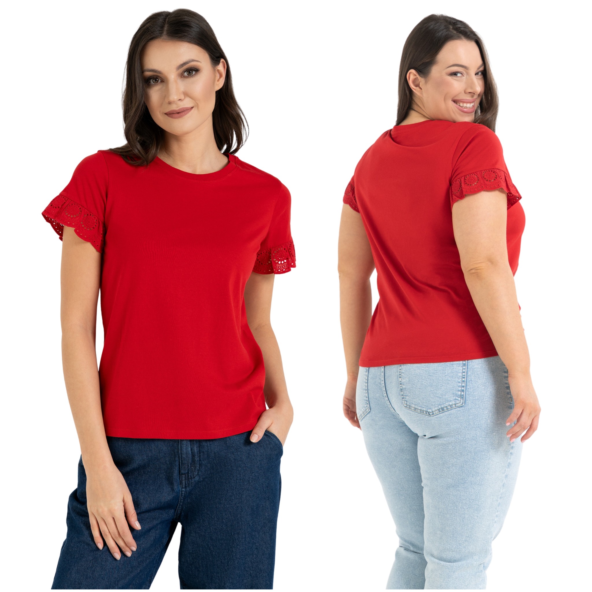 - Romantyczny Akcent: Krótkie rękawki zakończone delikatną, misterną koronką nadają bluzce unikalnego charakteru. Ten mały detal sprawia, że prosta stylizacja natychmiast staje się bardziej kobieca i dopracowana.