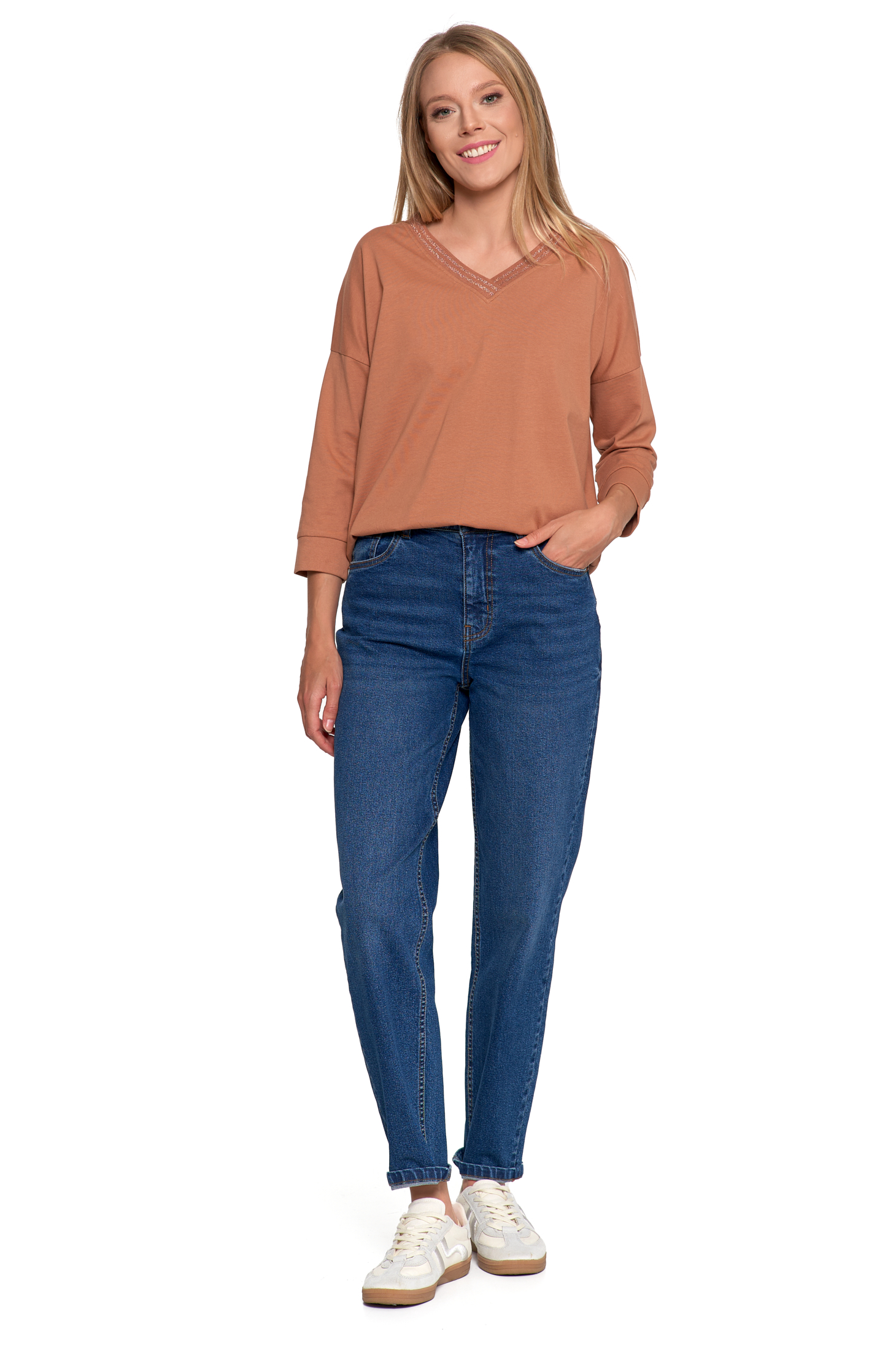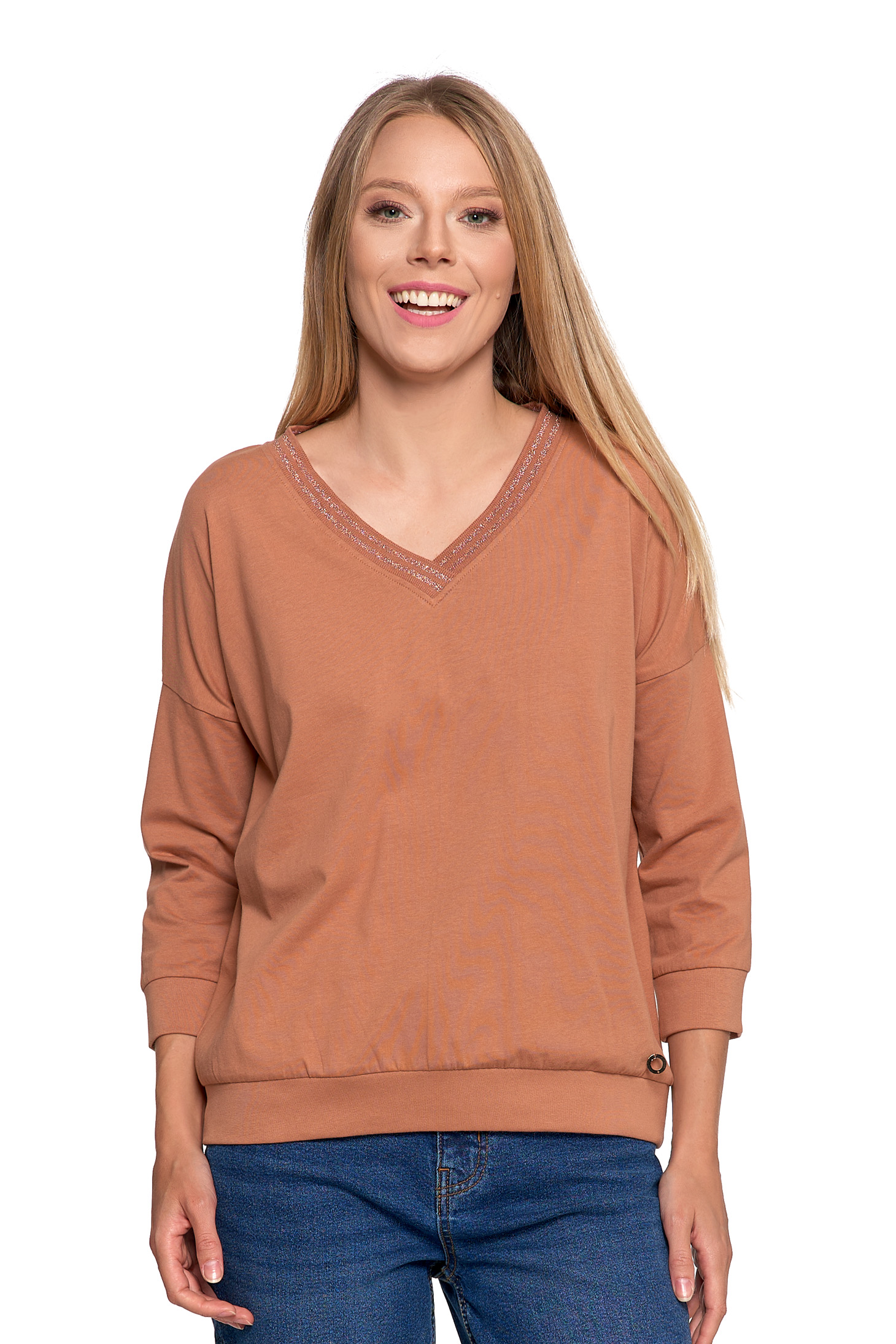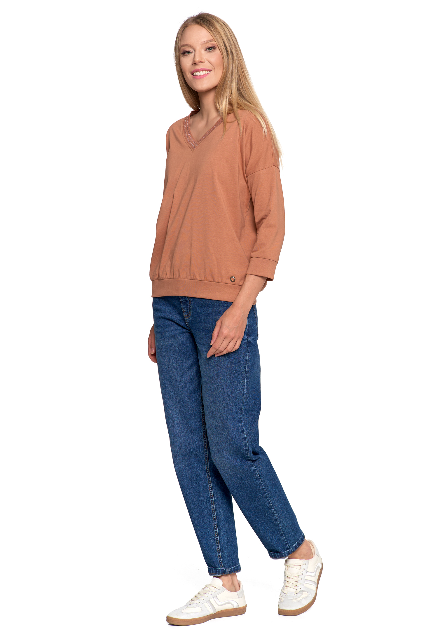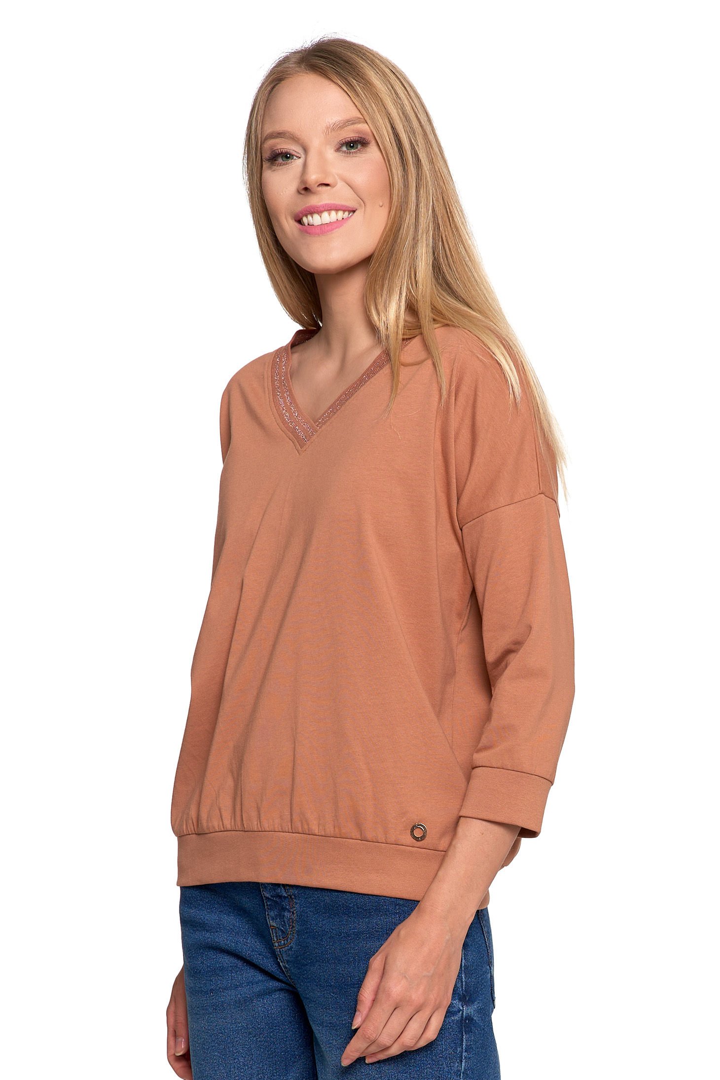 Ta klasyczna bluzka to idealny wybór dla kobiet ceniących wygodę połączoną z subtelnym, modnym detalem. Wykonana z miękkiego i przyjemnego materiału (marka Moraj zazwyczaj stawia na wysoką jakość dzianin), jest idealna do noszenia na co dzień.