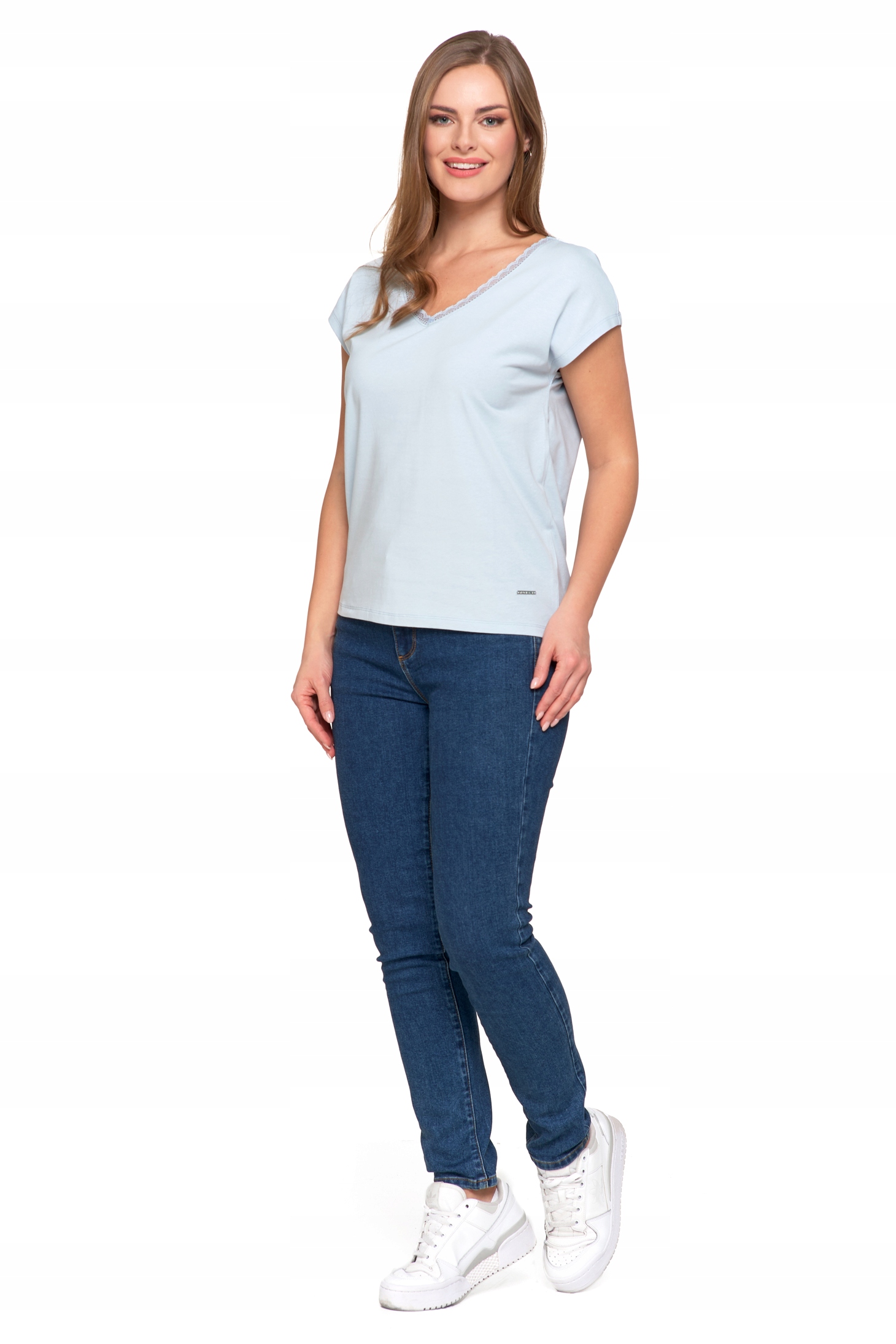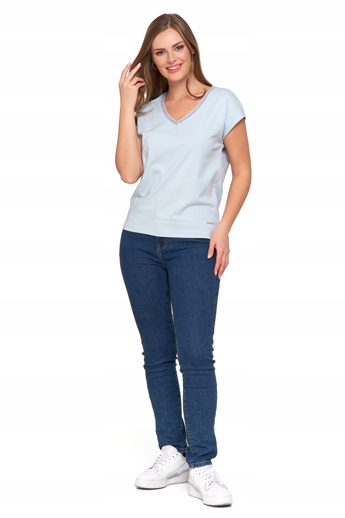 Bluzka Damska Koronkowy Dekolt T-Shirt z krótkim rękawem Koszulka MORAJ