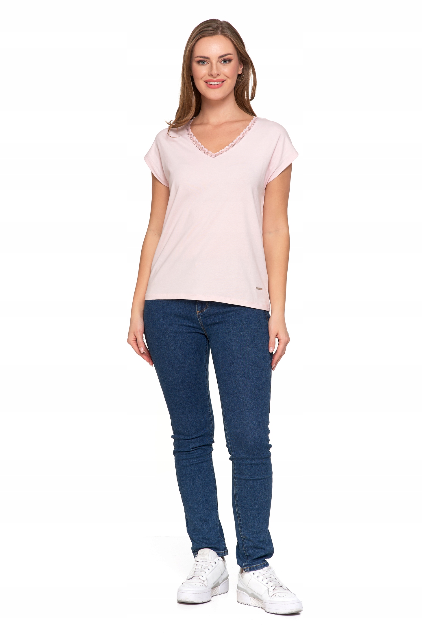 Bluzka Damska Koronkowy Dekolt T-Shirt z krótkim rękawem Koszulka MORAJ