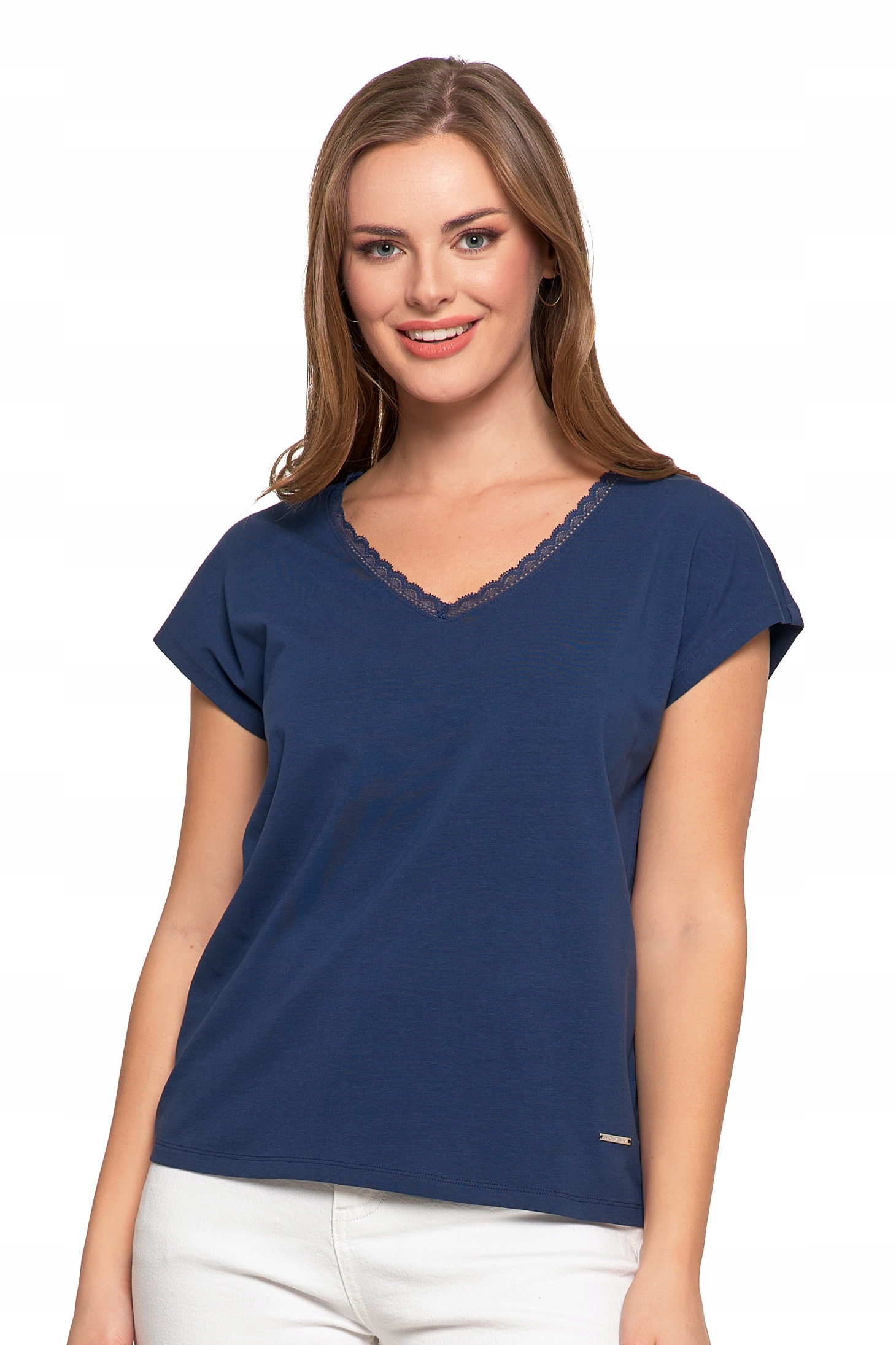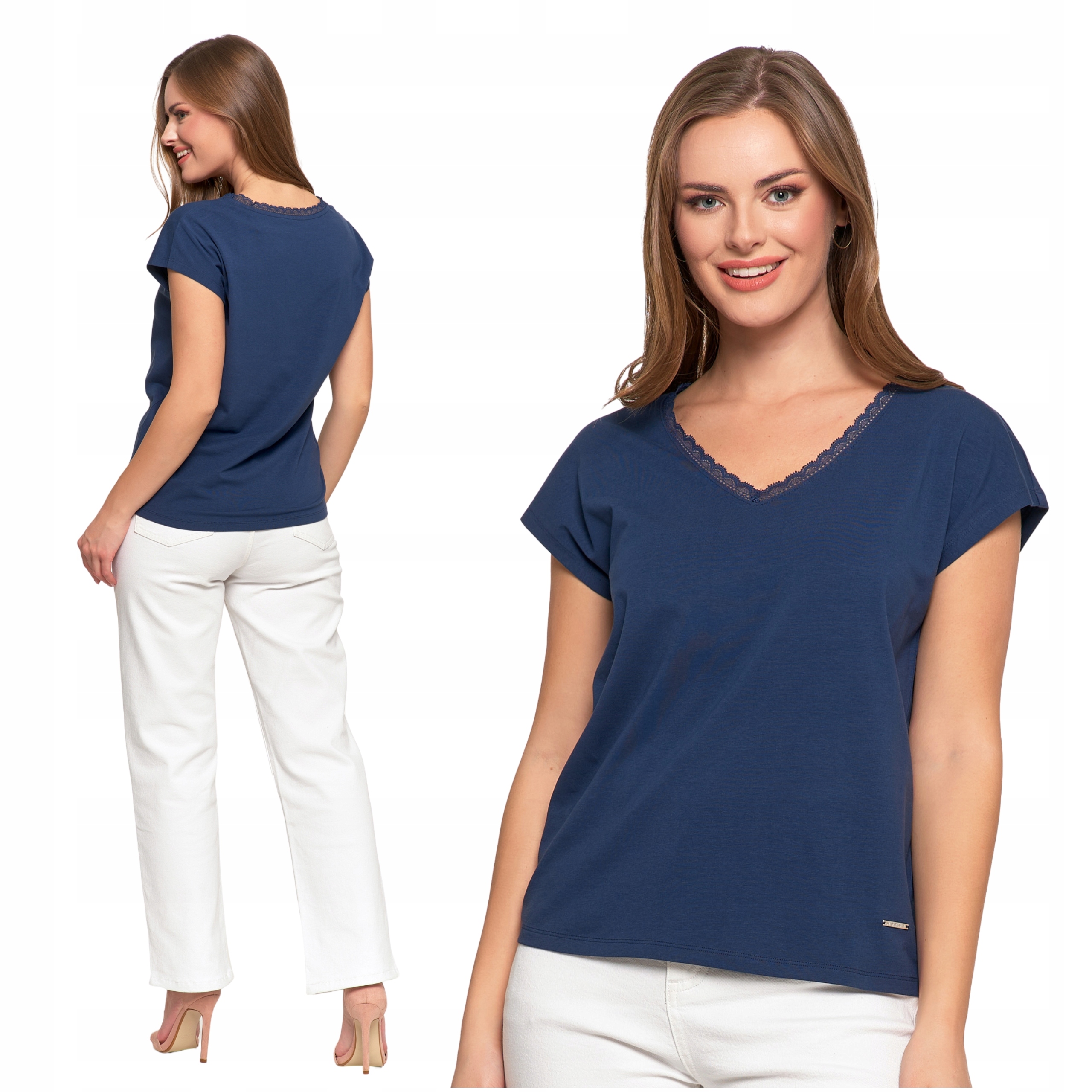 Bluzka Damska Koronkowy Dekolt T-Shirt z krótkim rękawem Koszulka MORAJ