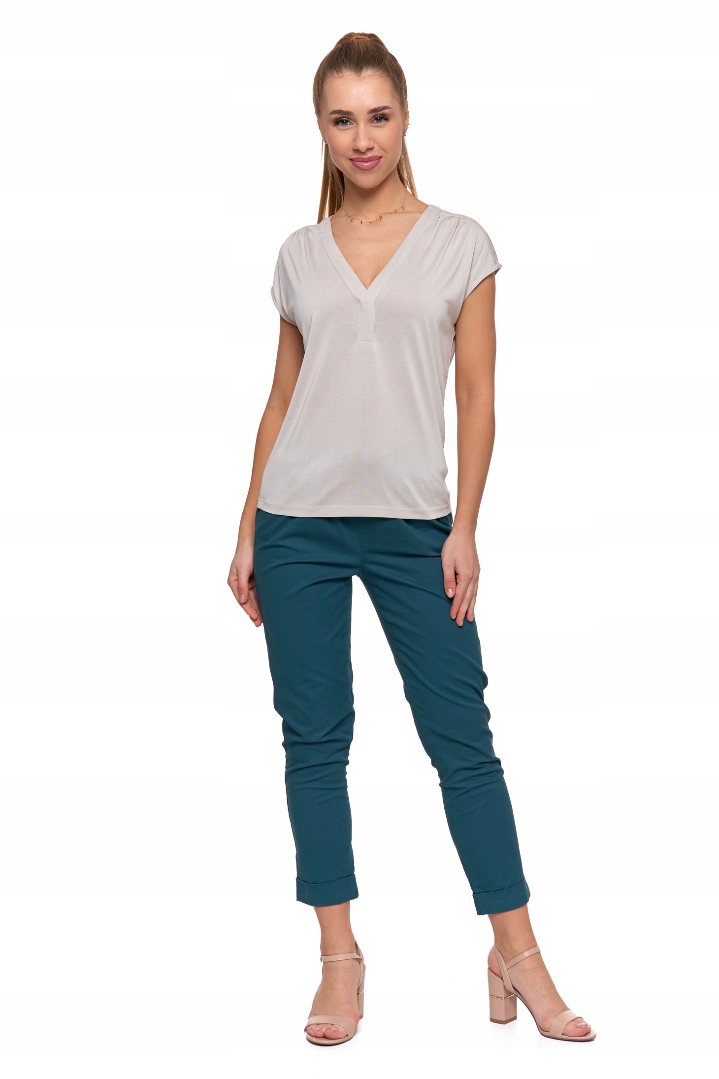 Bluzka Damska Koszulka Gładka T-Shirt Dekolt V z Krótkim Rękawem MORAJ