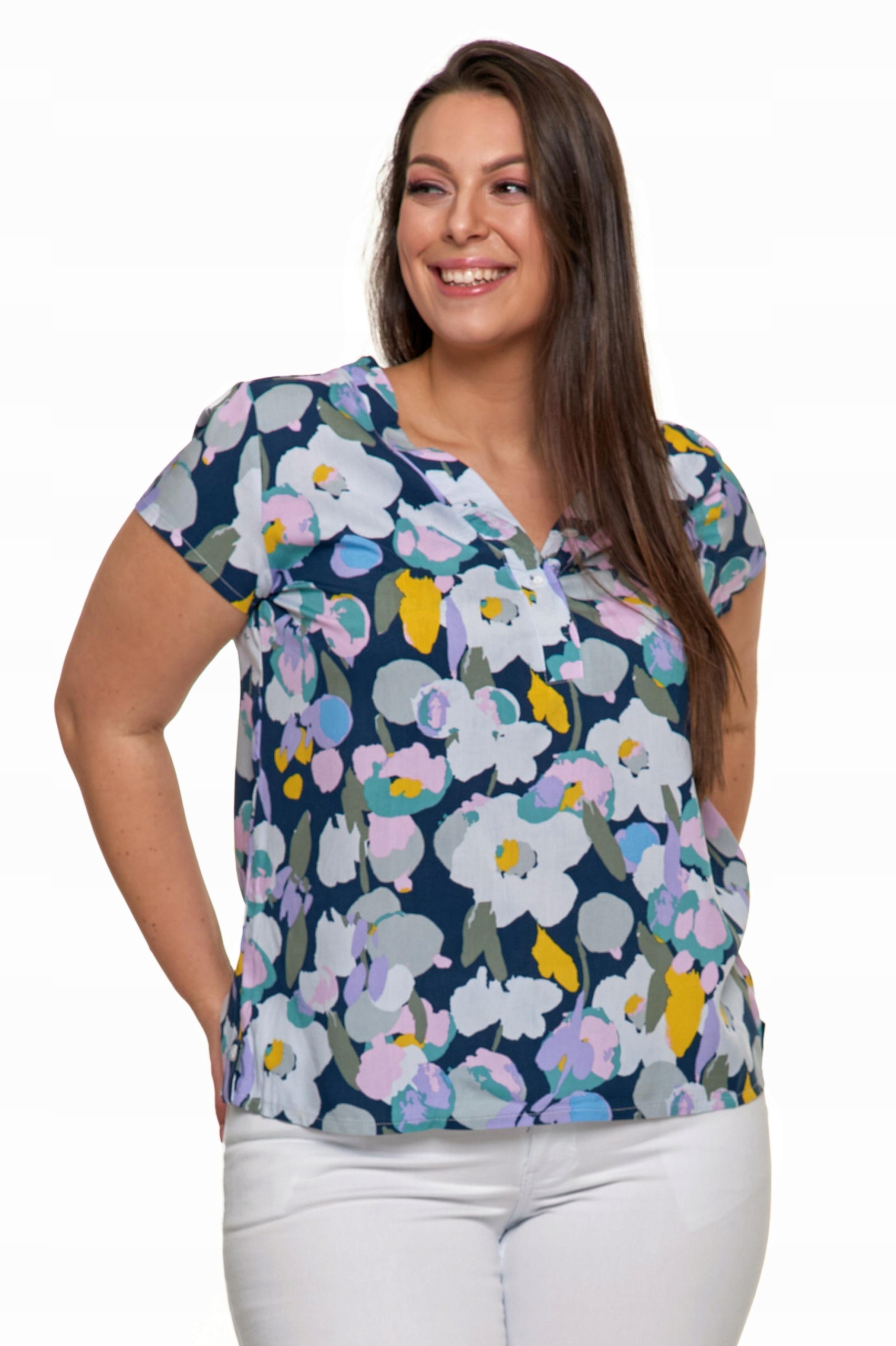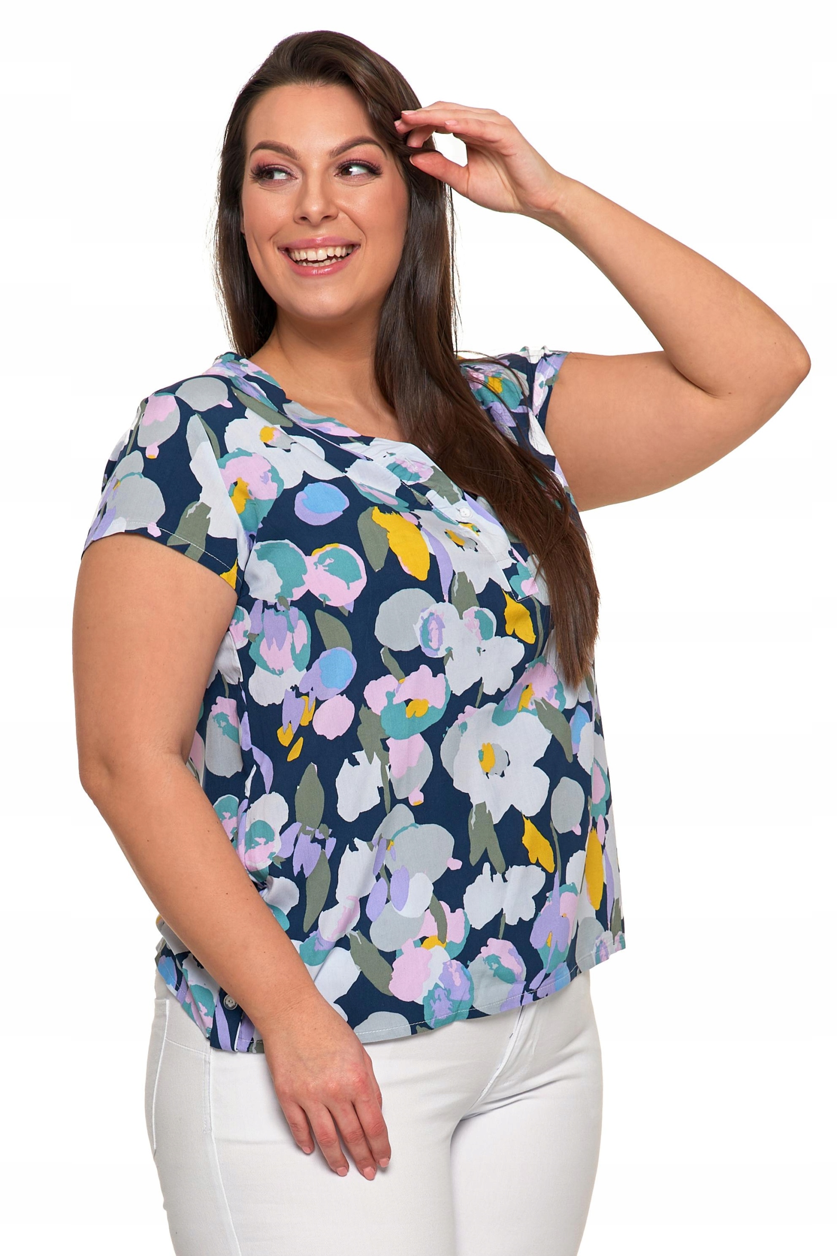Niezależnie od tego, czy chcesz stworzyć casualowy look na co dzień, czy poszukujesz czegoś wygodnego na wieczorne wyjście, nasza wiskozowa bluzka z krótkim rękawem z pewnością spełni Twoje oczekiwania pod względem komfortu i stylu.