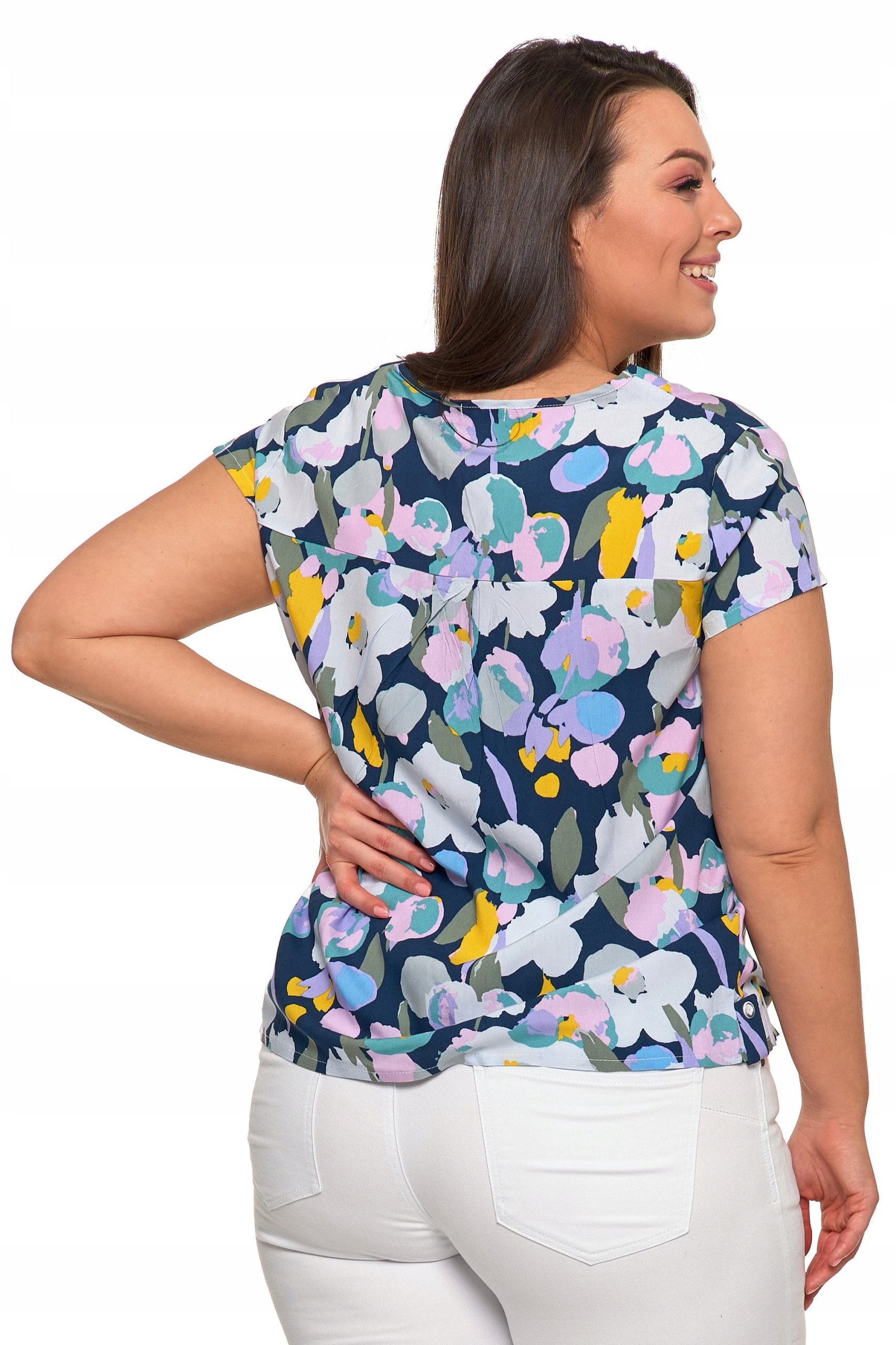 Bluzka Damska Koszulka Na Krótki Rękaw Wzór w Kwiaty Kolorowa MORAJ