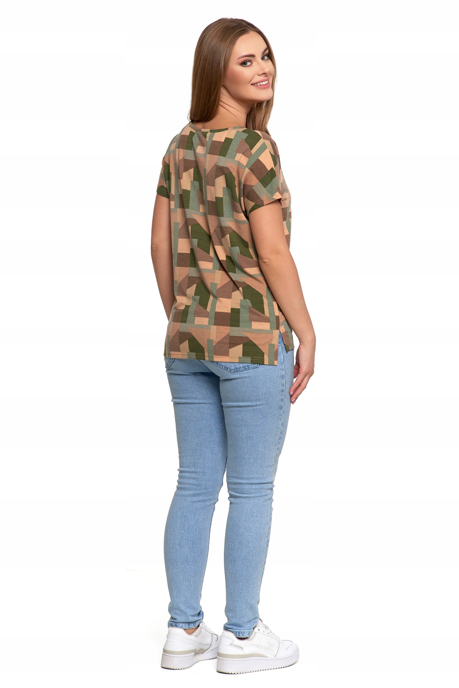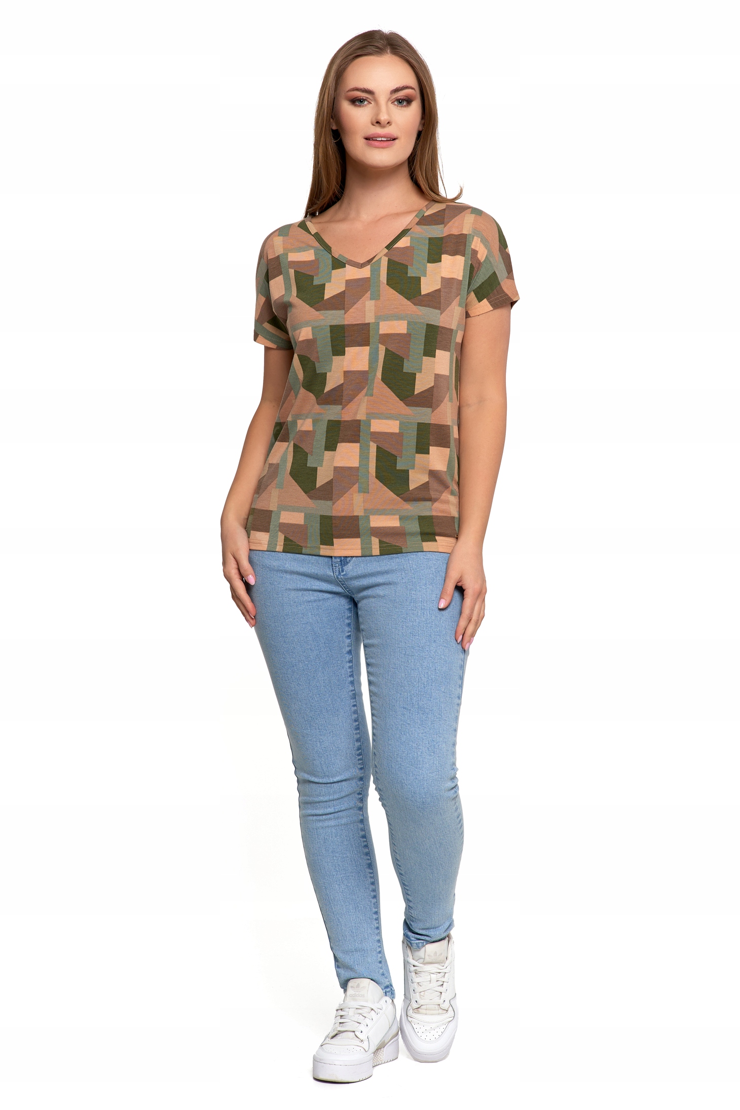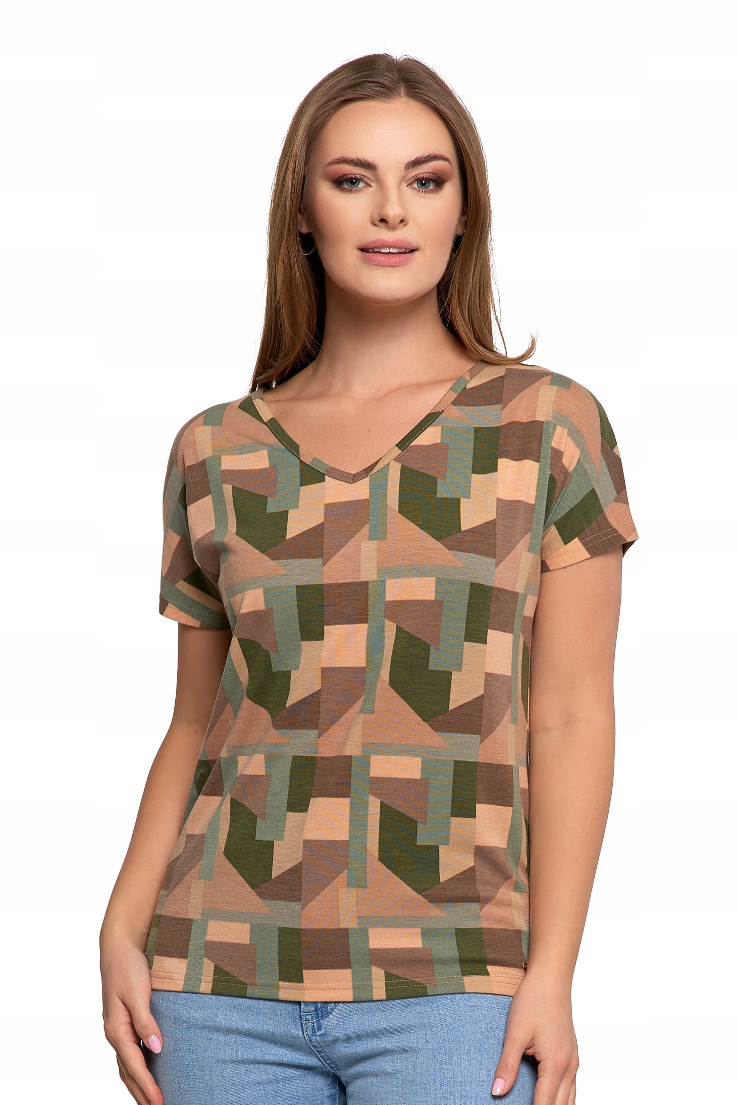 BLUZKA DAMSKA Koszulka z Krótkim Rękawem Modny Wzór Kolorowa MORAJ