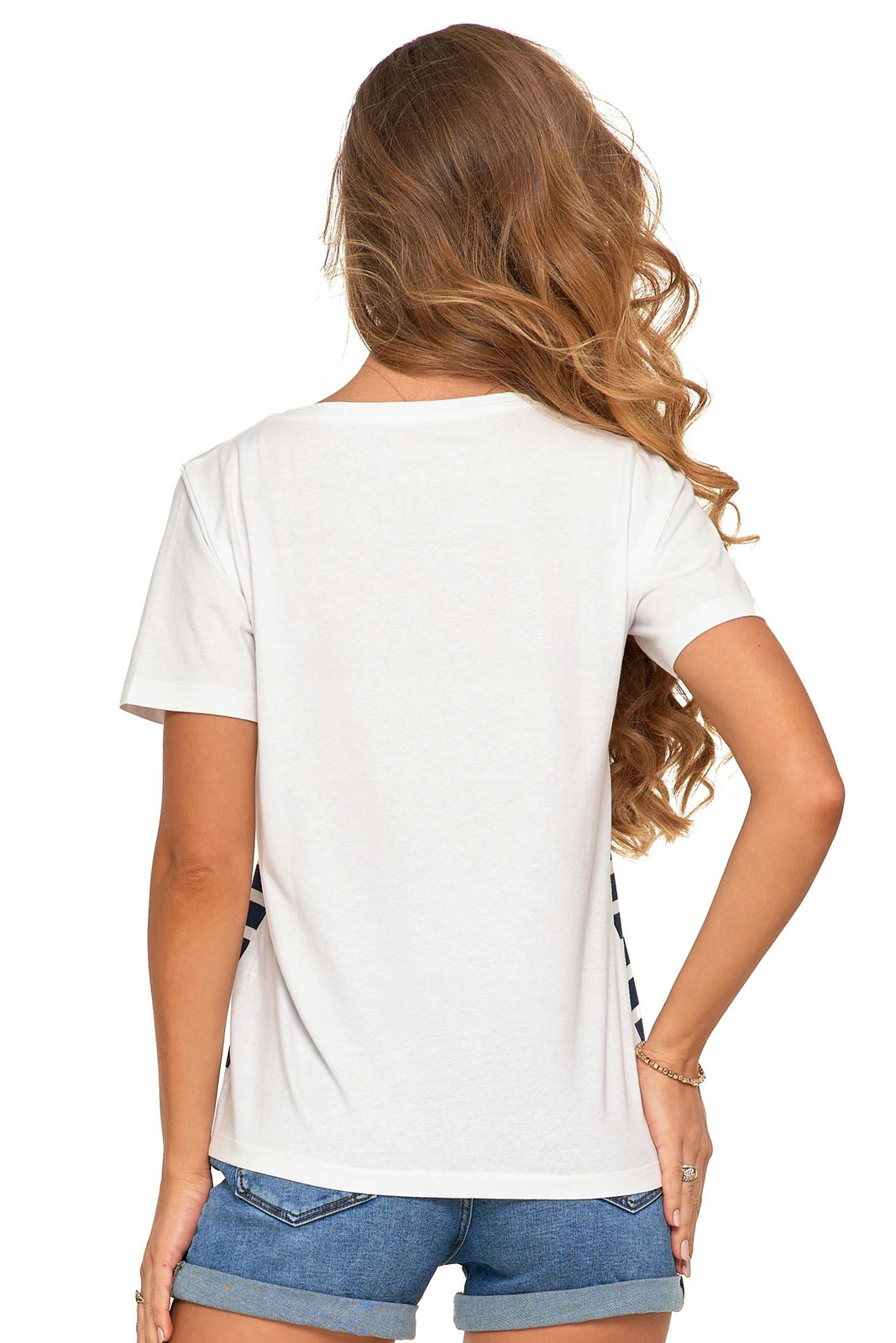 Bluzka Damska Krótki Rękaw T-Shirt Koszulka Dekolt w Serek Paski MORAJ