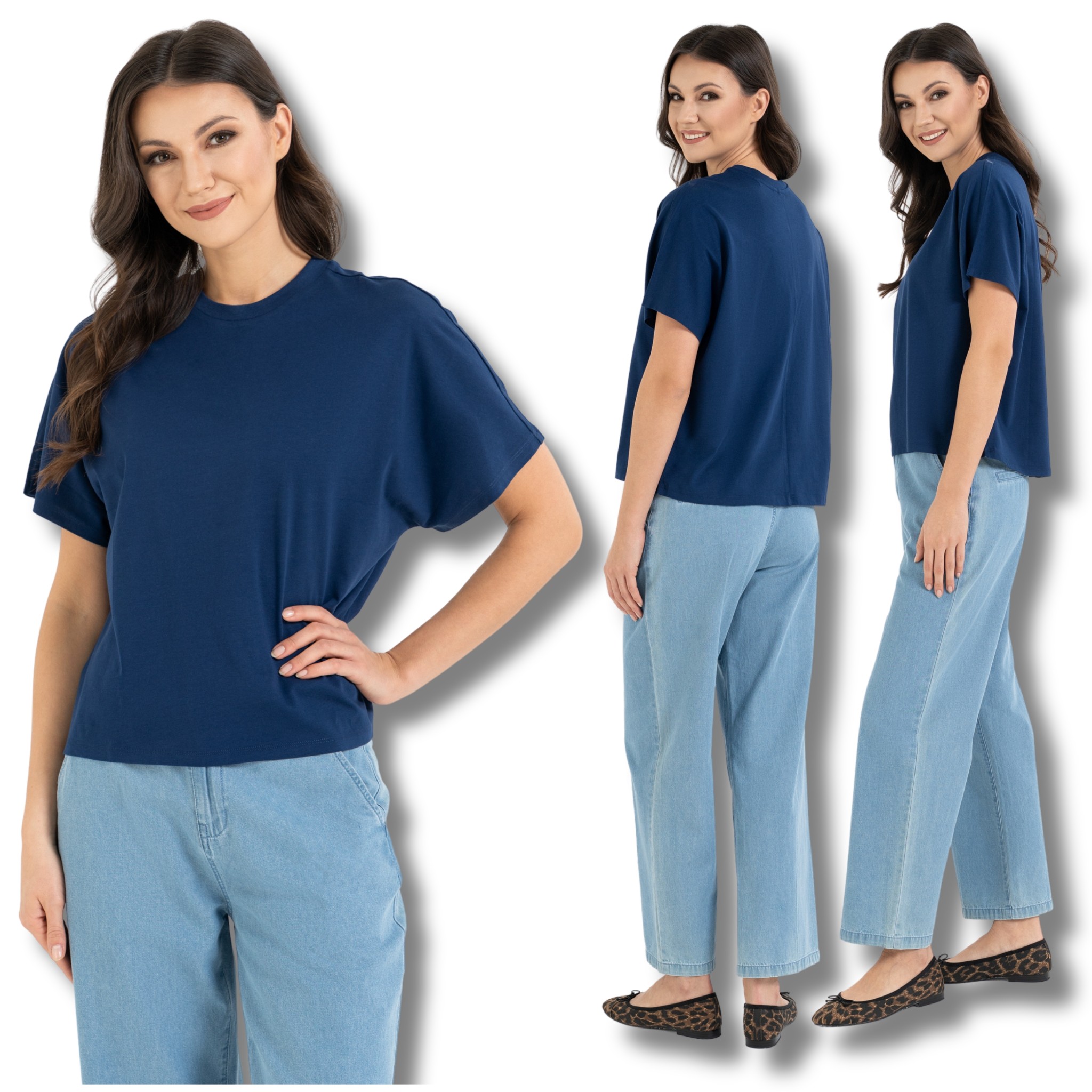 BLUZKA DAMSKA LUŹNY T-SHIRT Z KRÓTKIM RĘKAWEM GŁADKA KOSZULKA MORAJ