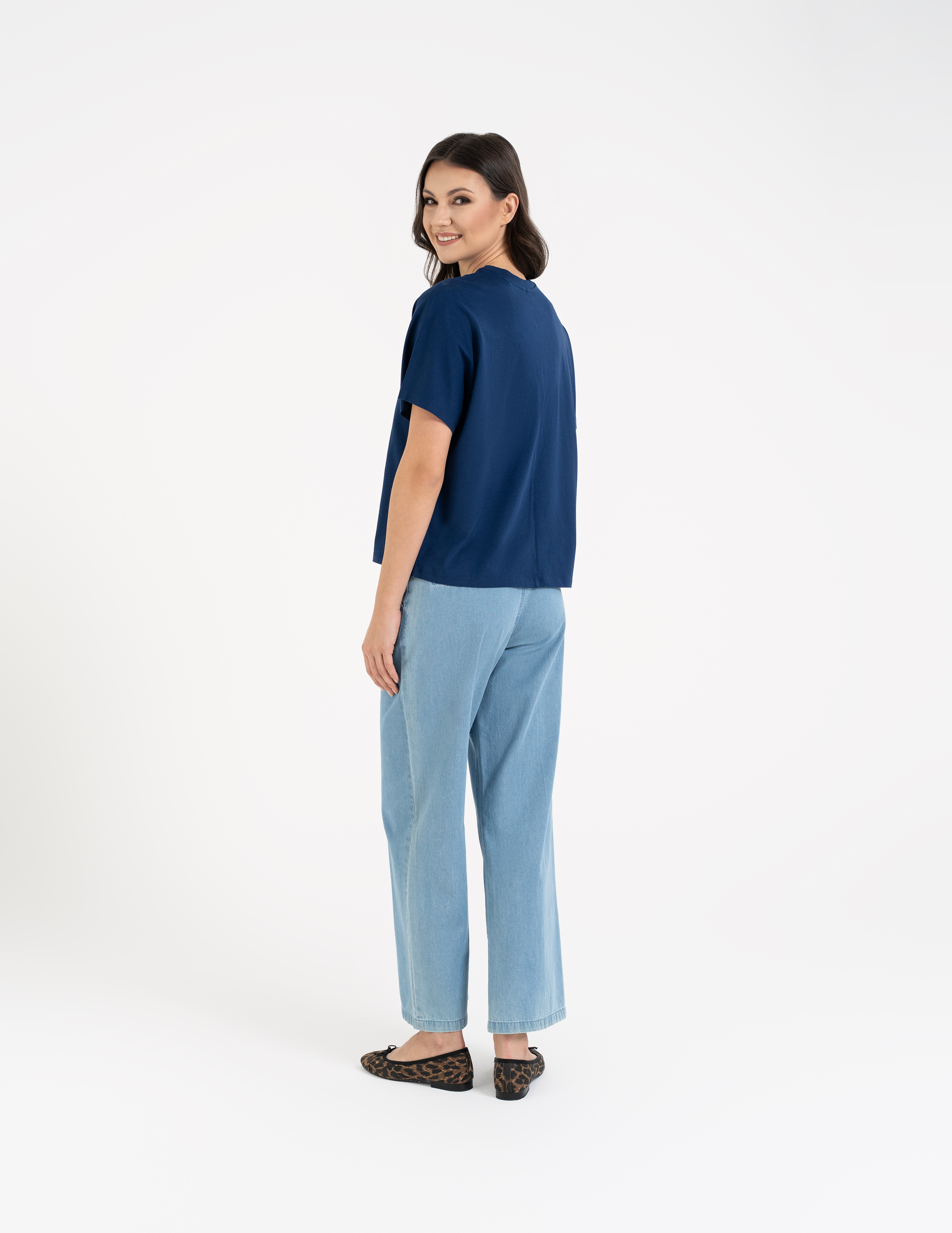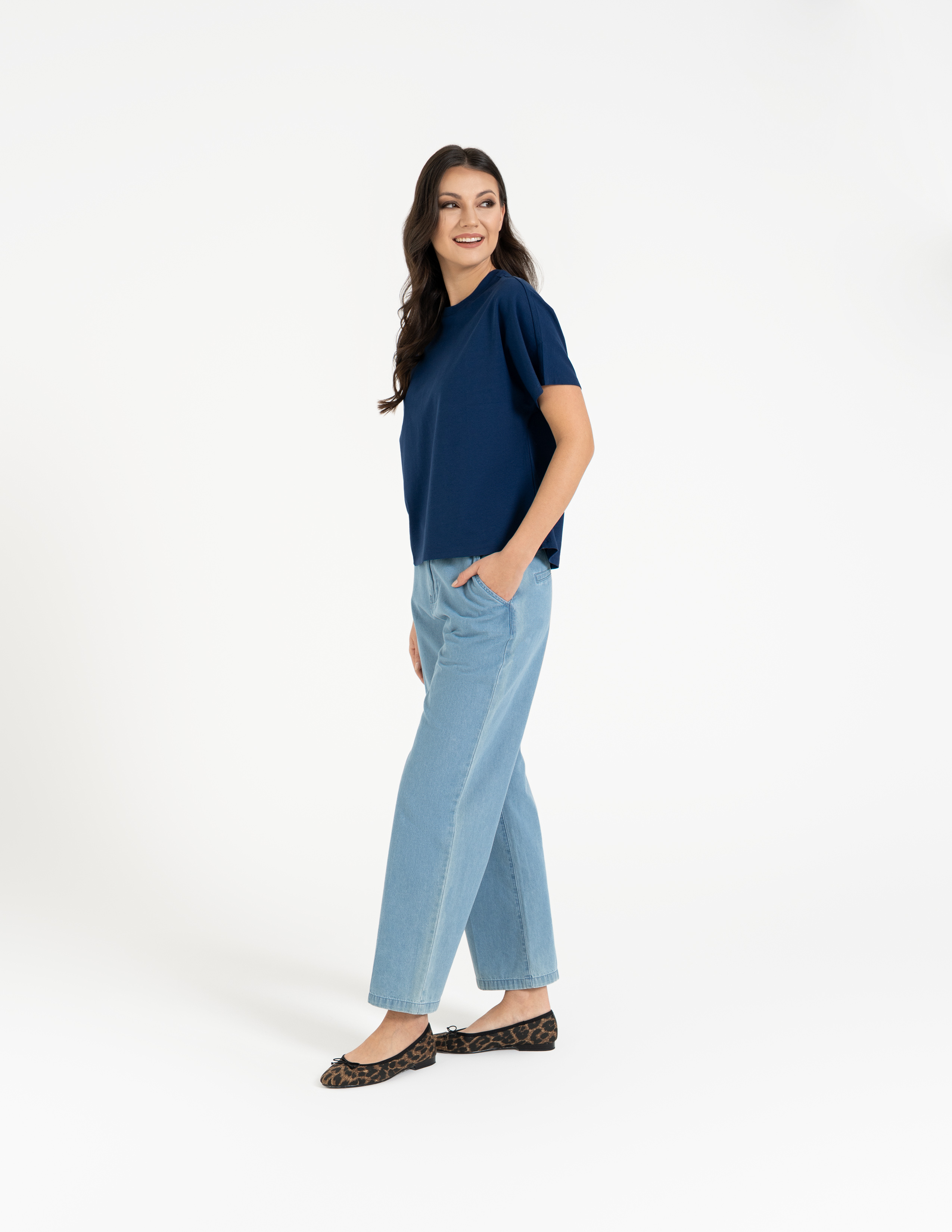 Poczuj pełną swobodę w upalne dni! Ta koszulka to esencja letniego komfortu – połączenie naturalnego materiału z luźnym, nowoczesnym krojem. Idealna baza dla kobiet, które cenią sobie prostotę i bezkompromisową jakość.