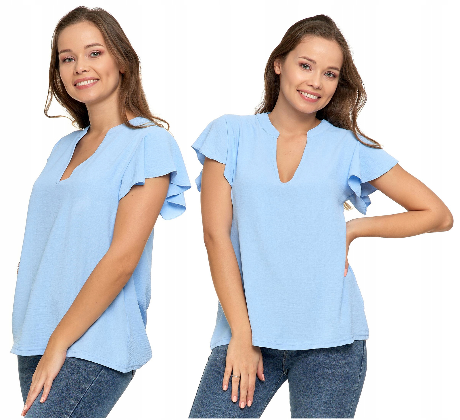 Bluzka damska z motylkowym rękawkiem i dekoltem V to produkt, który doskonale sprawdzi się w letnim sezonie. Lekka kreszowa tkanina zapewni odpowiednią cyrkulację powietrza, co pozwoli Ci cieszyć się komfortem nawet w upalne dni.