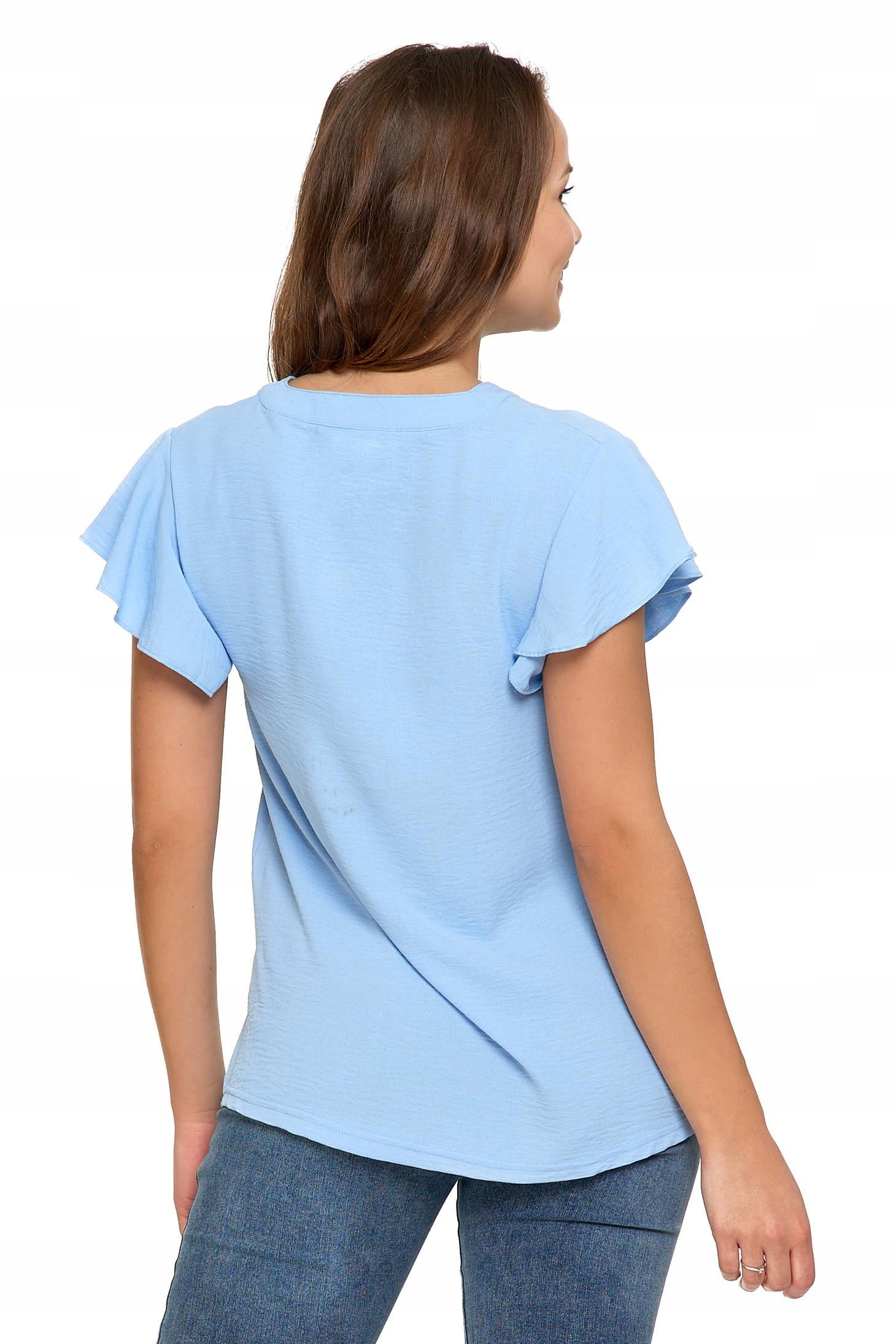 Bluzka wykonana jest z miękkiego i przyjemnego w dotyku materiału, który zapewnia komfort noszenia przez cały dzień. Motylkowe, krótkie rękawki to ciekawy element, który dodaje bluzce lekkości. Dekolt w kształcie litery V pięknie podkreśla szyję. Klasyczny krój bluzki doskonale pasuje do różnych stylizacji - zarówno tych casualowych, jak i bardziej eleganckich.