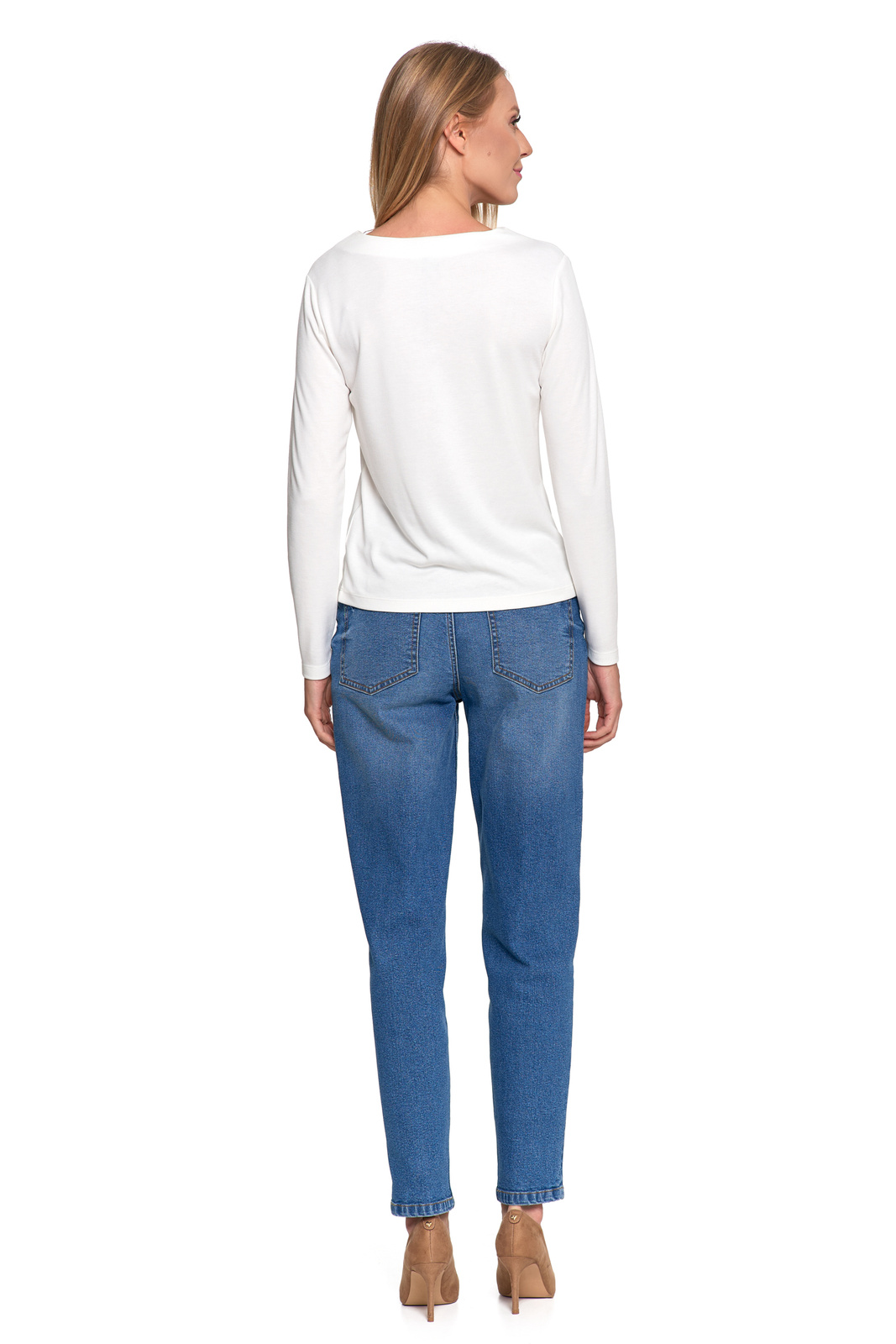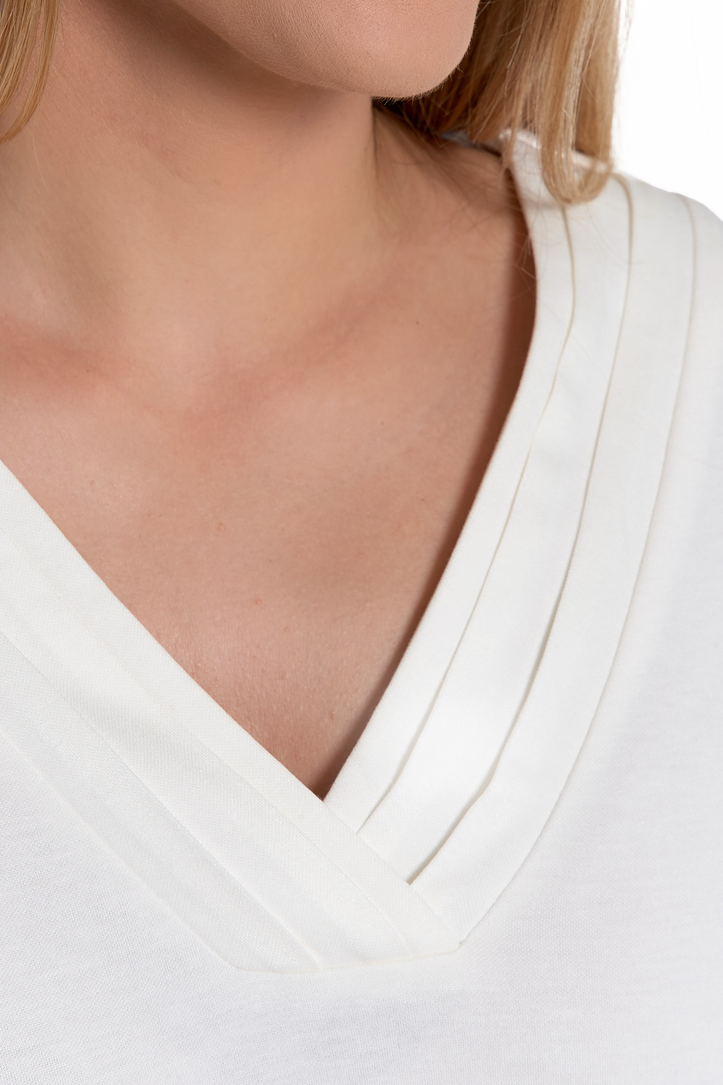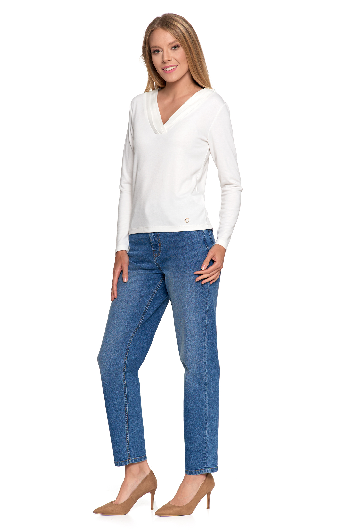 • Design: Dekolt w kształcie litery V subtelnie wysmukla szyję i dodaje bluzce kobiecego charakteru.