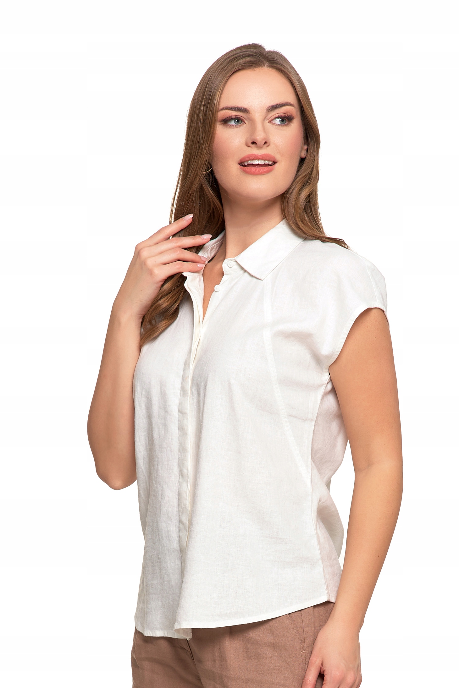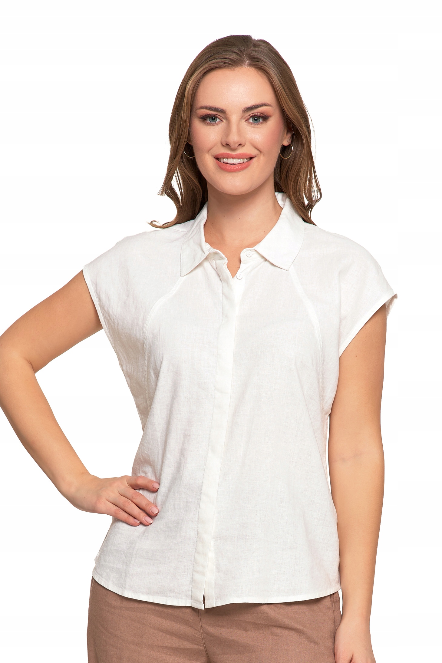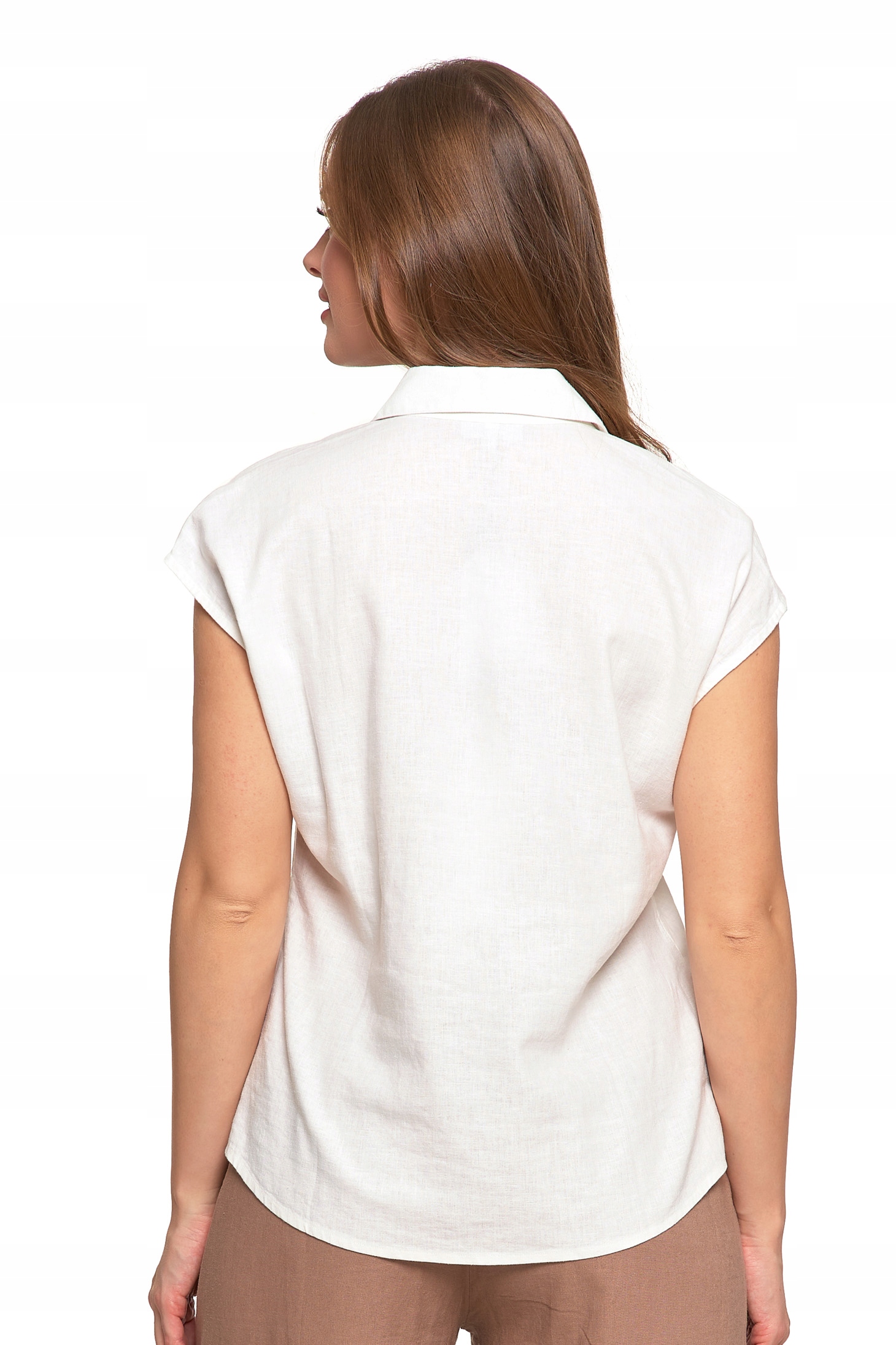 Bluzka Damska Rozpinana Koszula z Krótkim Rękawem Biała Lniana MORAJ