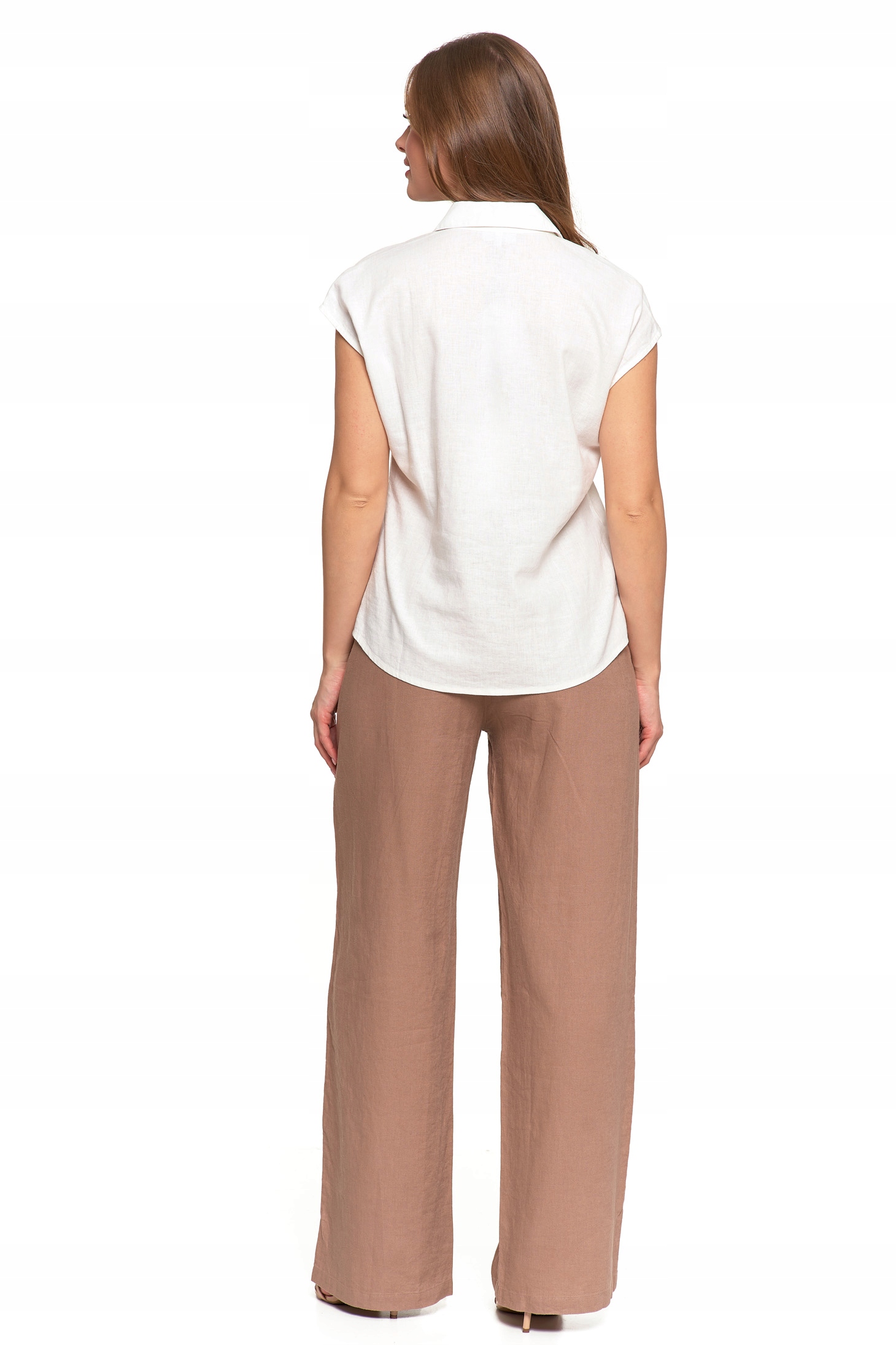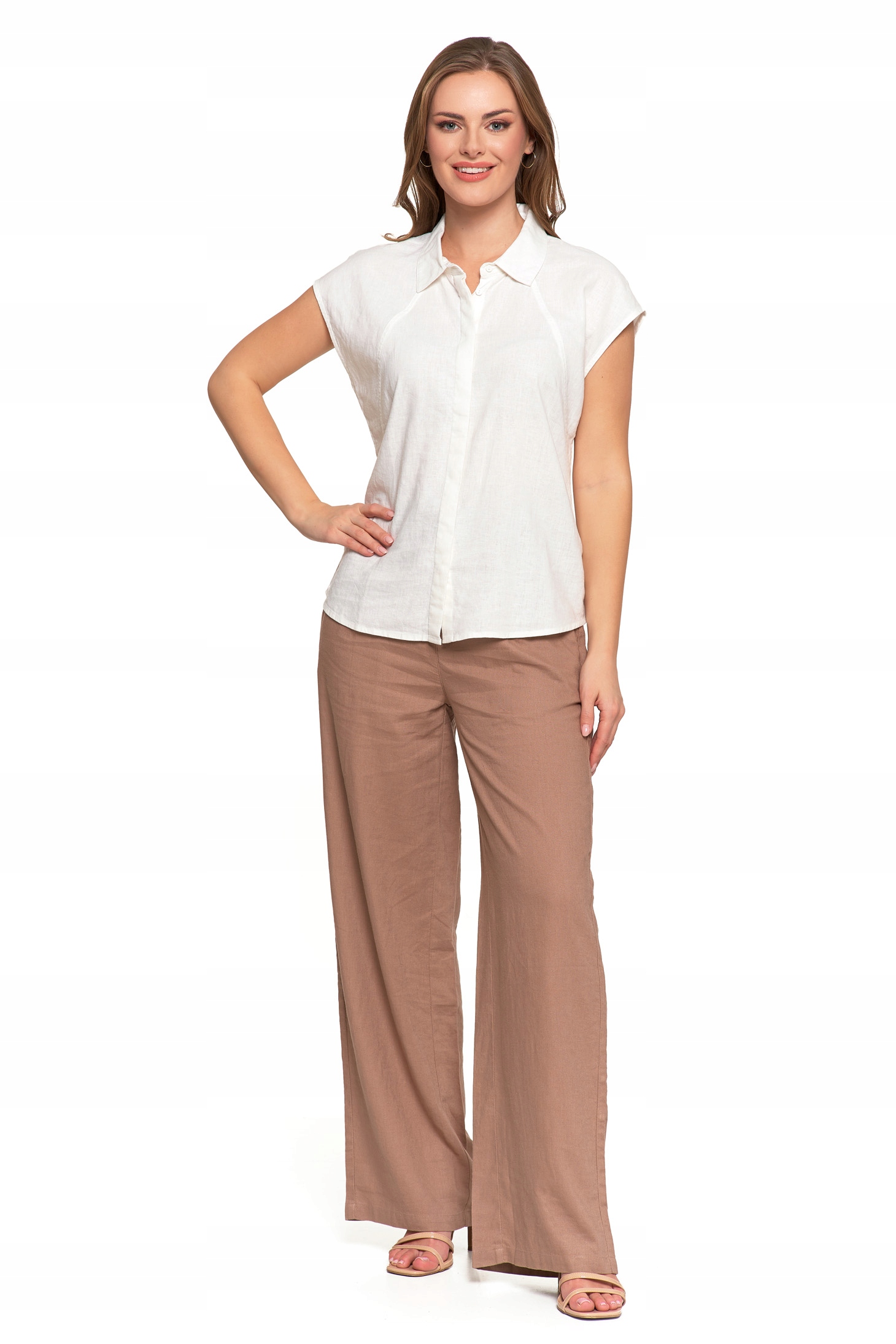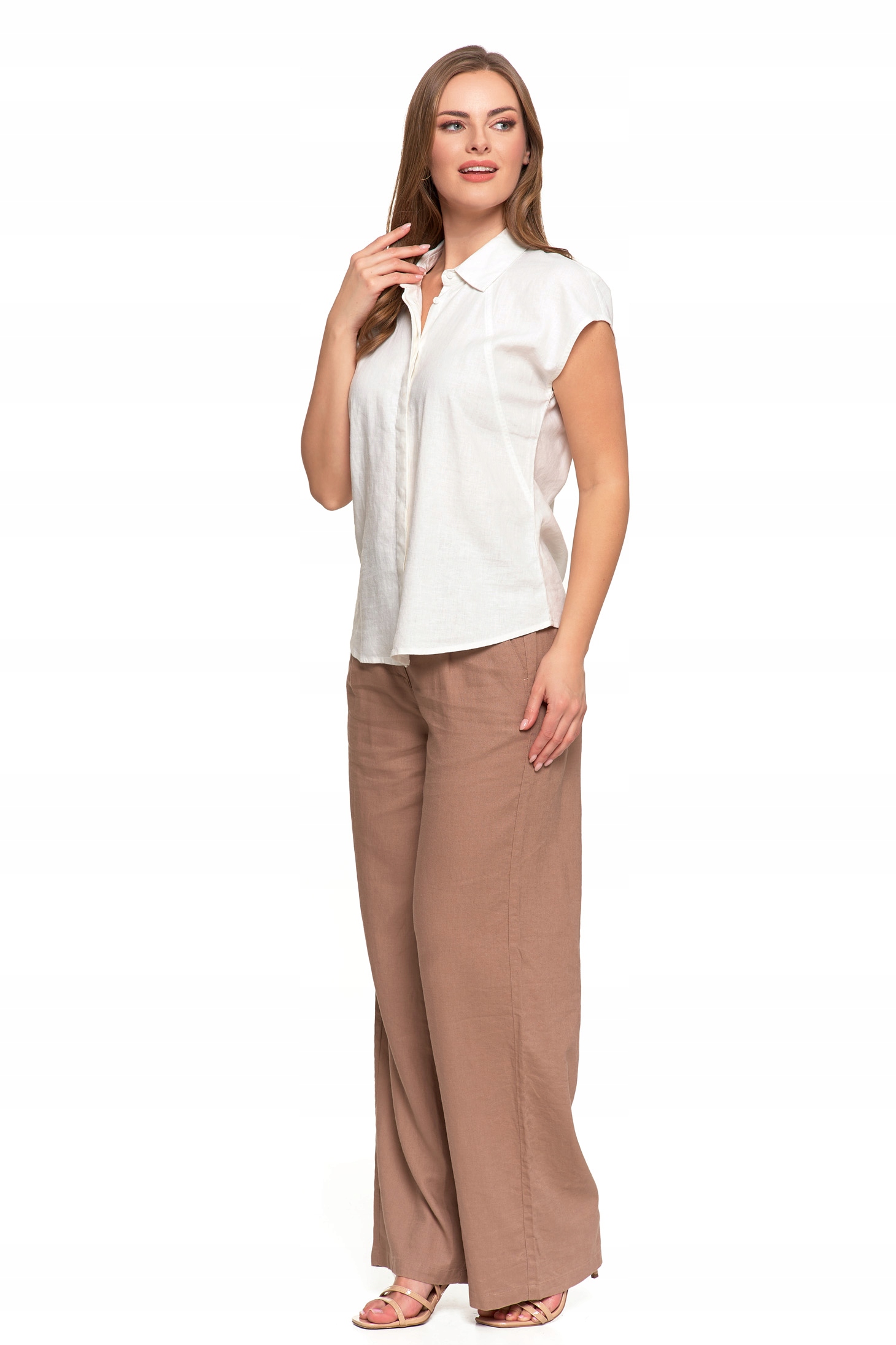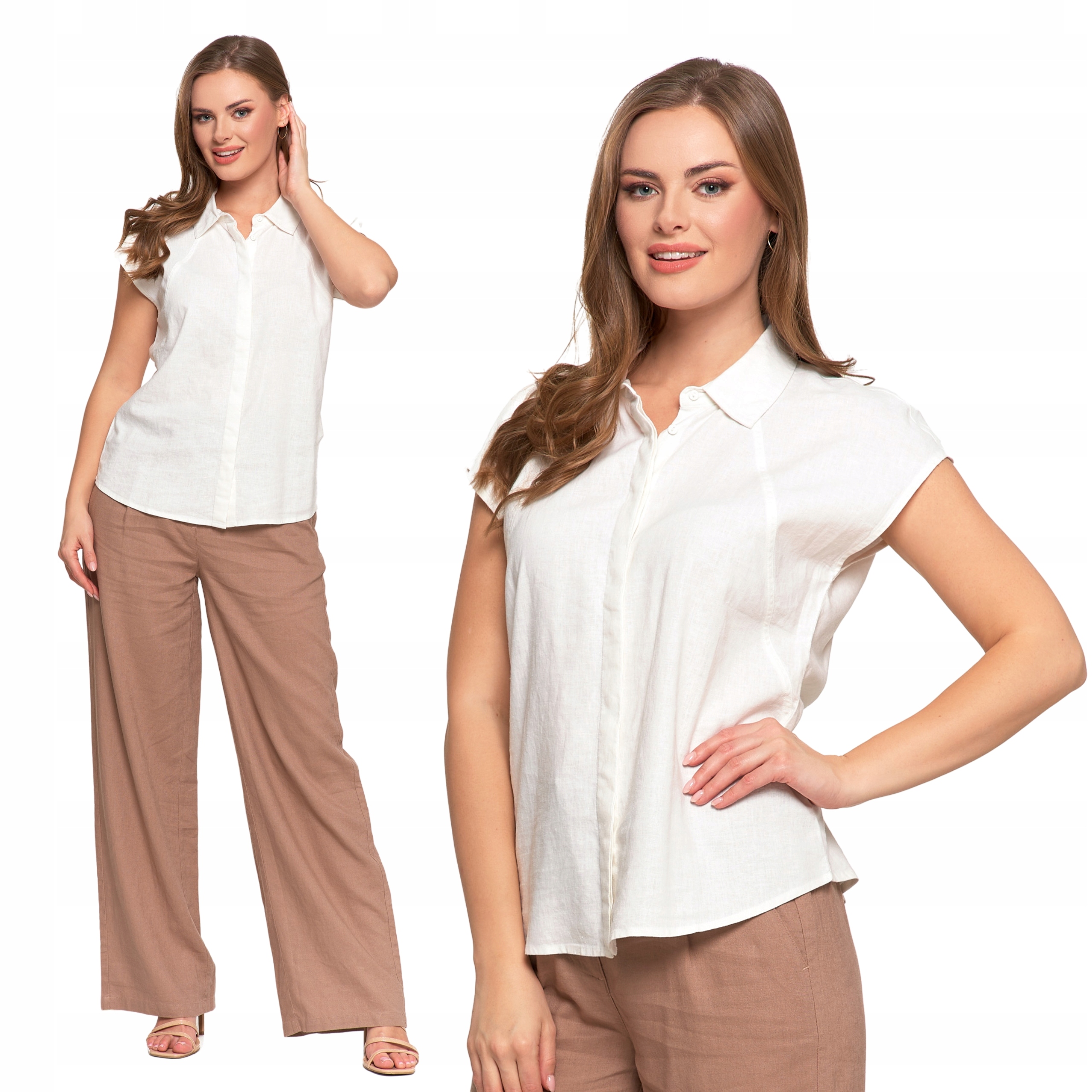 Bluzka Damska Rozpinana Koszula z Krótkim Rękawem Biała Lniana MORAJ