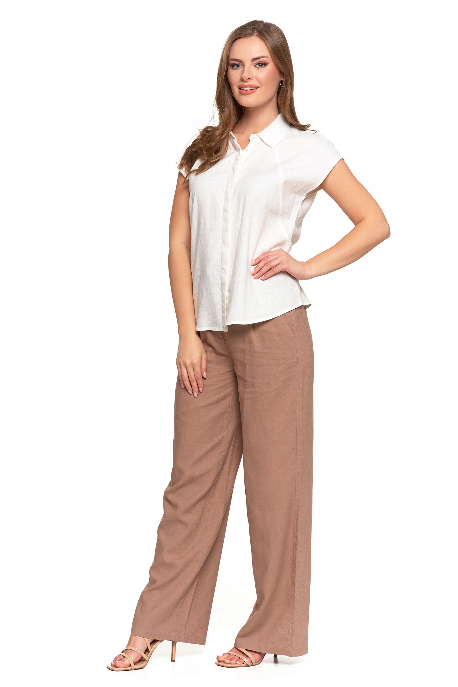 Ta stylowa bluzka koszulowa to idealne połączenie przewiewnego lnu i miękkiej wiskozy, zapewniające wyjątkowy komfort noszenia przez cały dzień. Doskonale sprawdzi się zarówno w casualowych, jak i eleganckich stylizacjach, dodając im subtelnej lekkości i klasy.