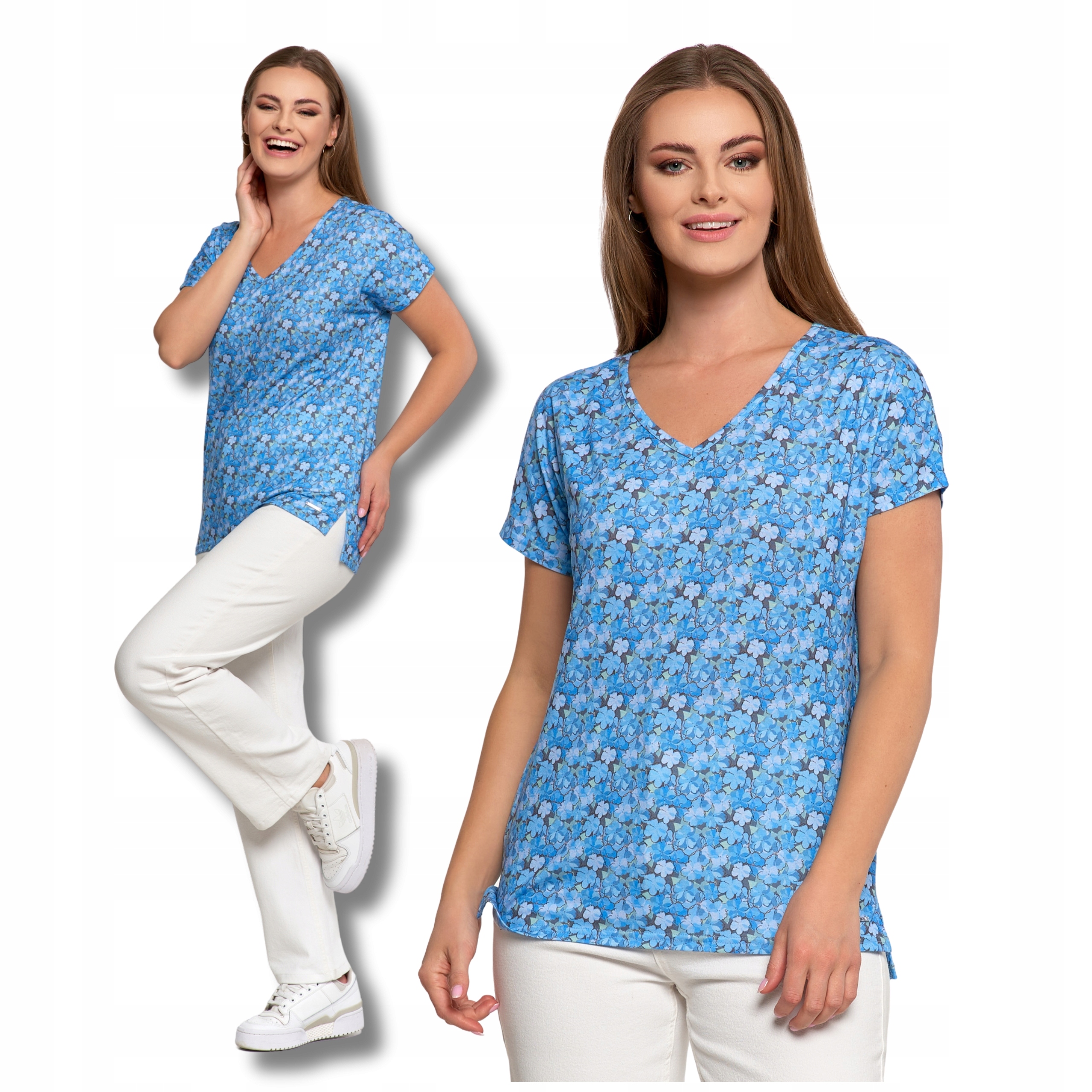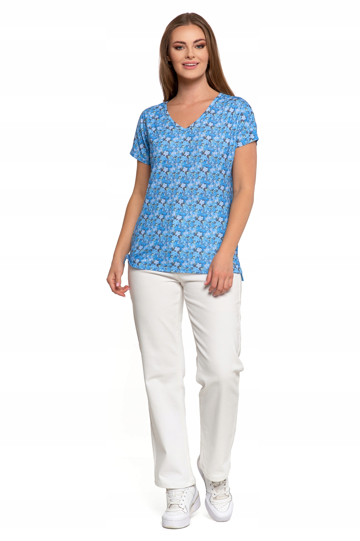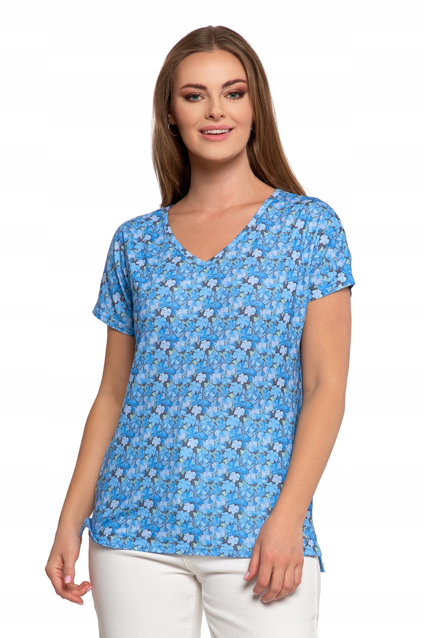 BLUZKA DAMSKA w Kwiaty Koszulka z Krótkim Rękawem Modny Wzór MORAJ