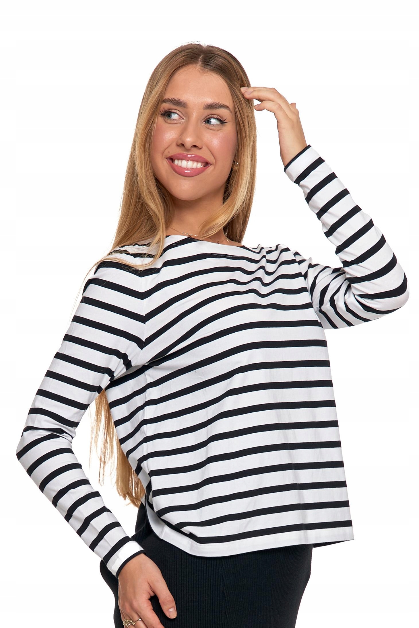 BLUZKA DAMSKA W PASKI Koszulka T-Shirt Na Długi Rękaw Bawełniany MORAJ