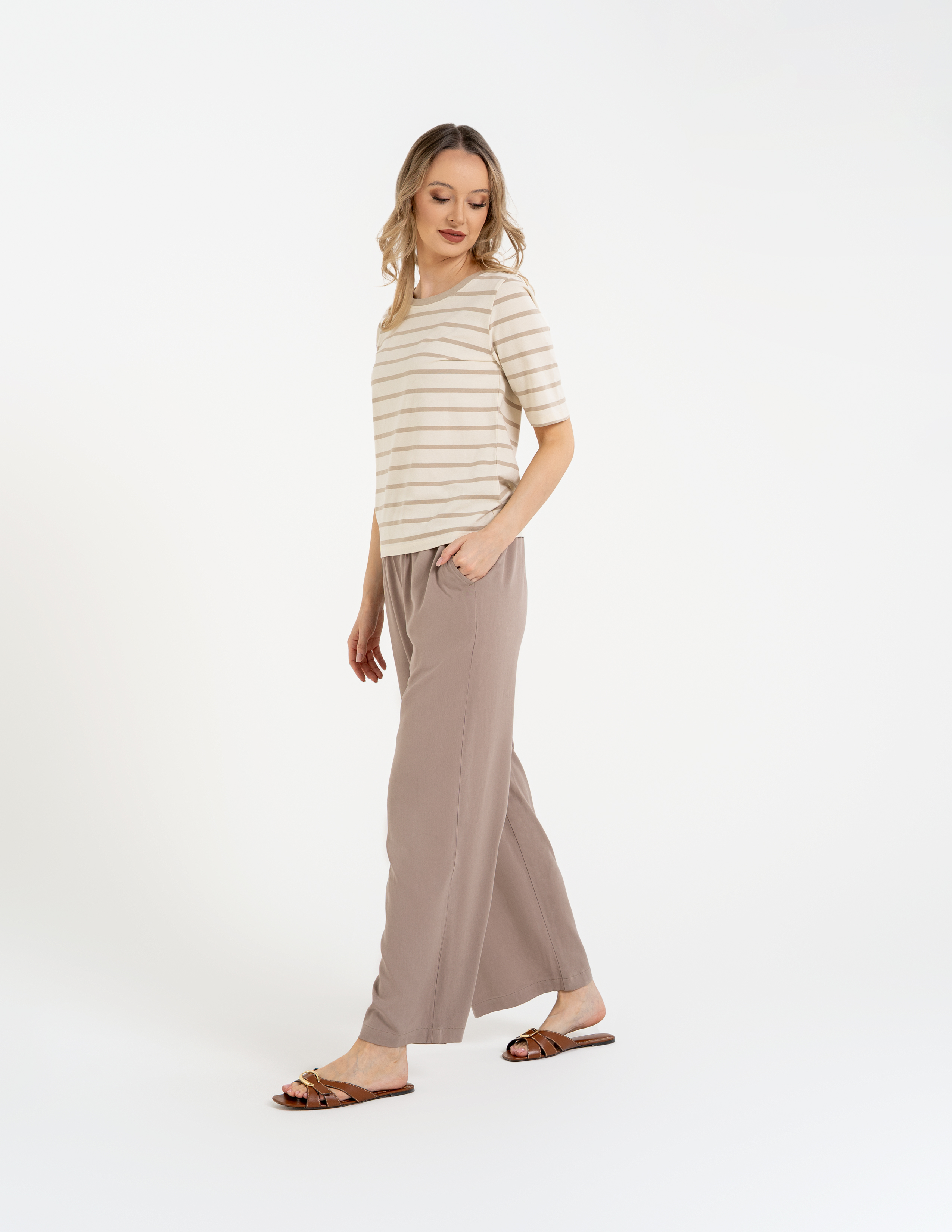 Ikoniczny Wzór w Paski: Ten motyw to modowy pewniak. Dodaje stylizacji lekkości i świeżości, świetnie komponując się z klasycznym denimem, białymi spodniami czy czerwoną szminką.