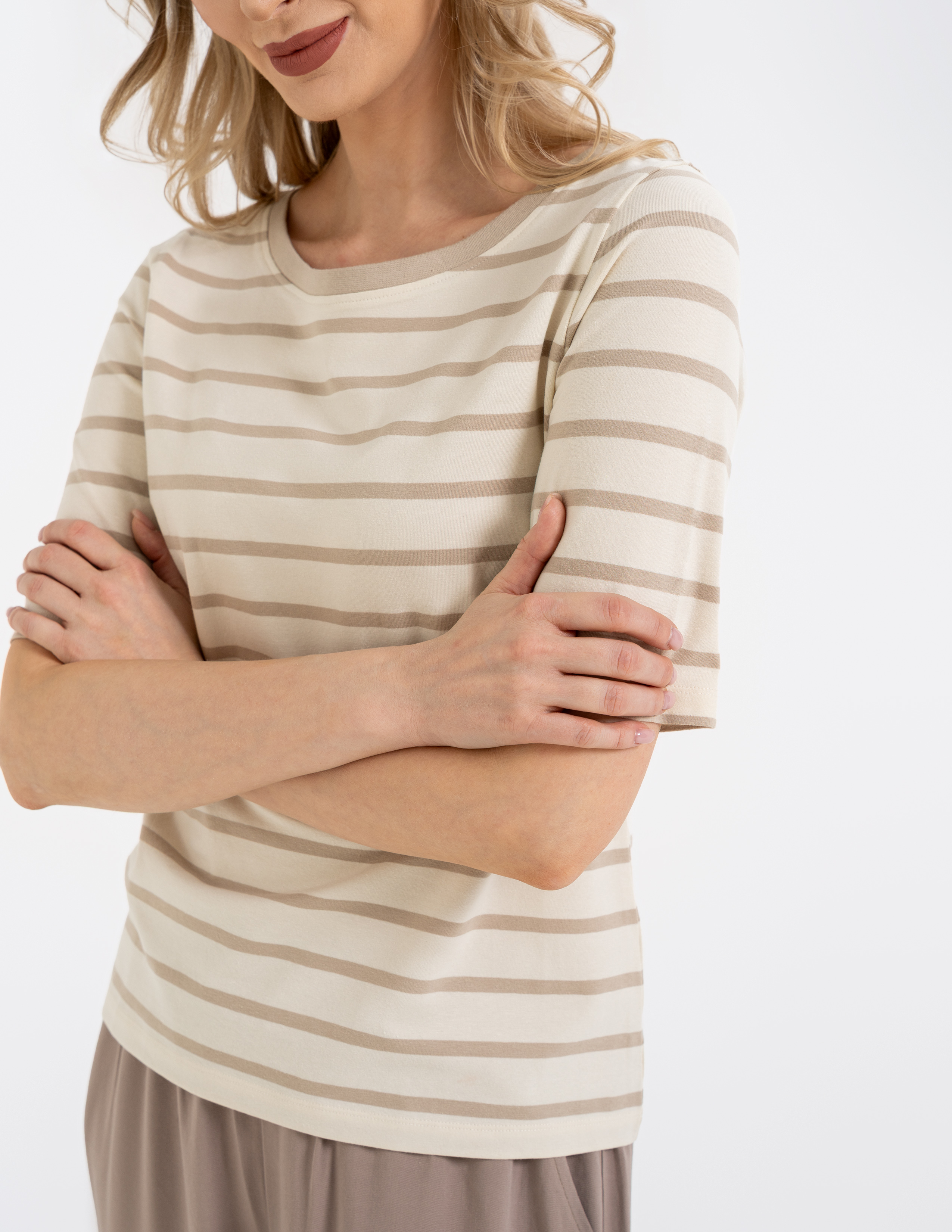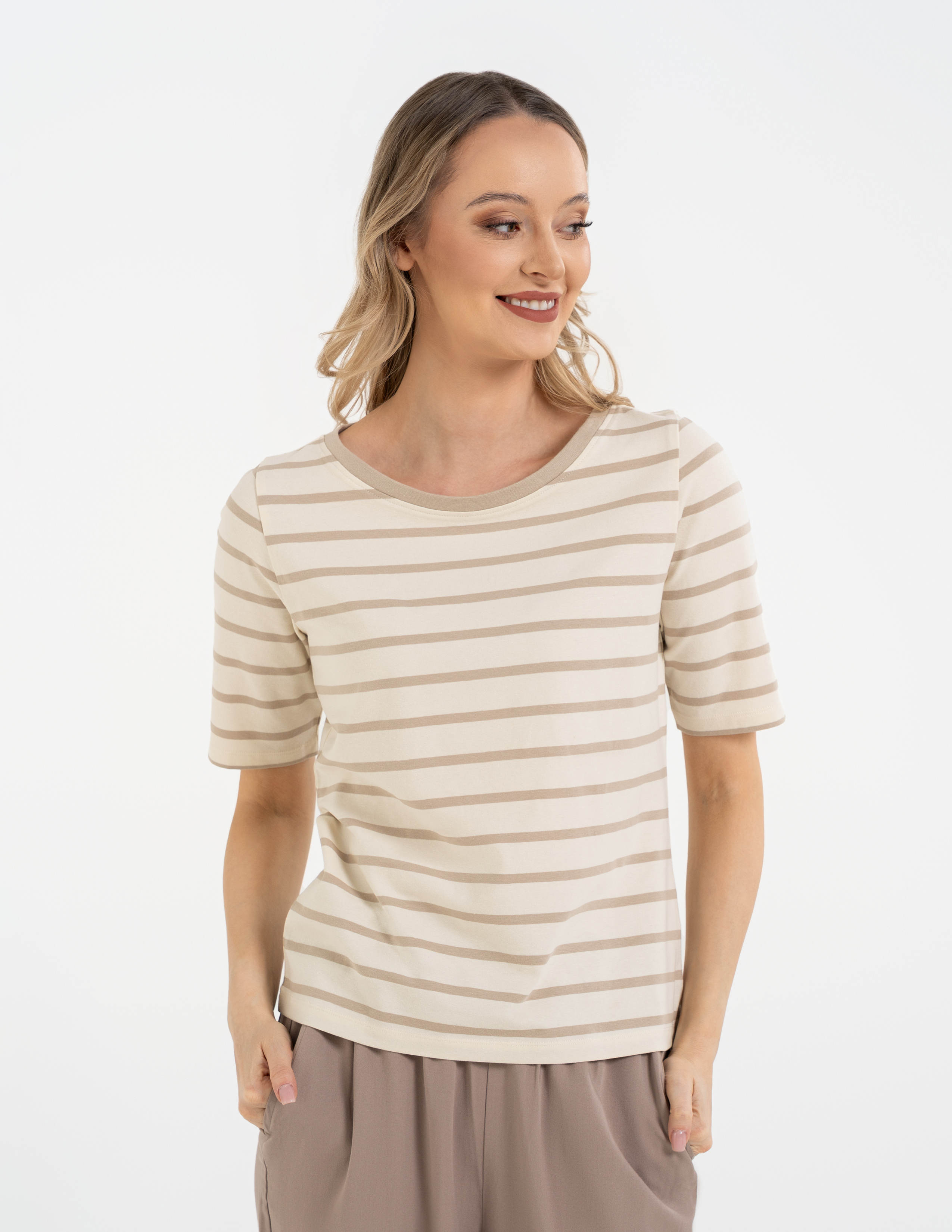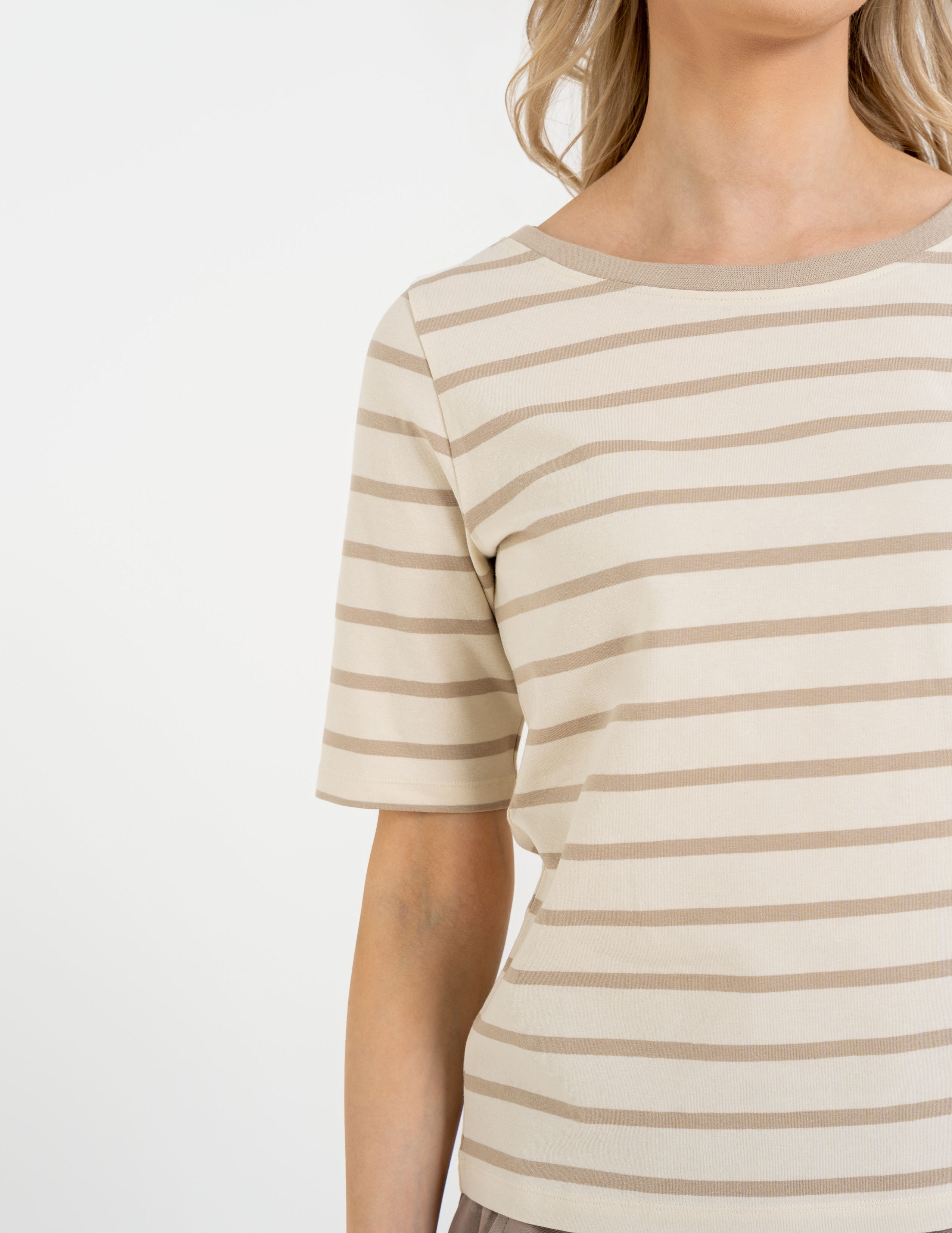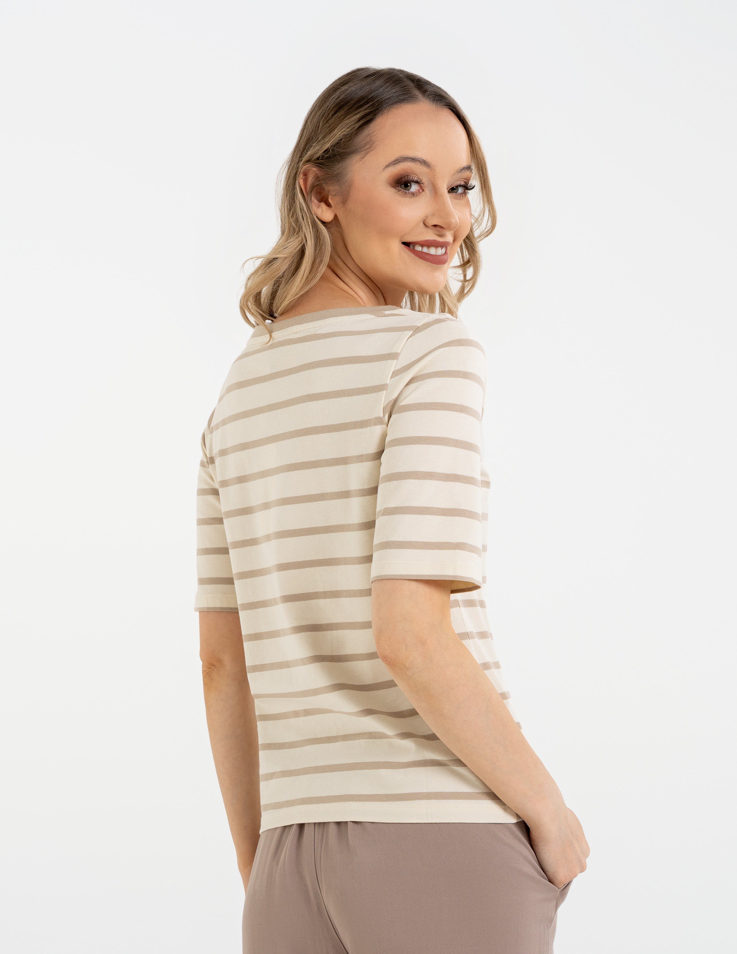 Bluzka w paski od Moraj – wyglądasz w niej świetnie bez najmniejszego wysiłku. Połączenie bawełny z elastanem sprawia, że jest to jedna z tych rzeczy, które zdejmujesz z wieszaka najczęściej, bo zawsze czujesz się w niej dobrze i pewnie.