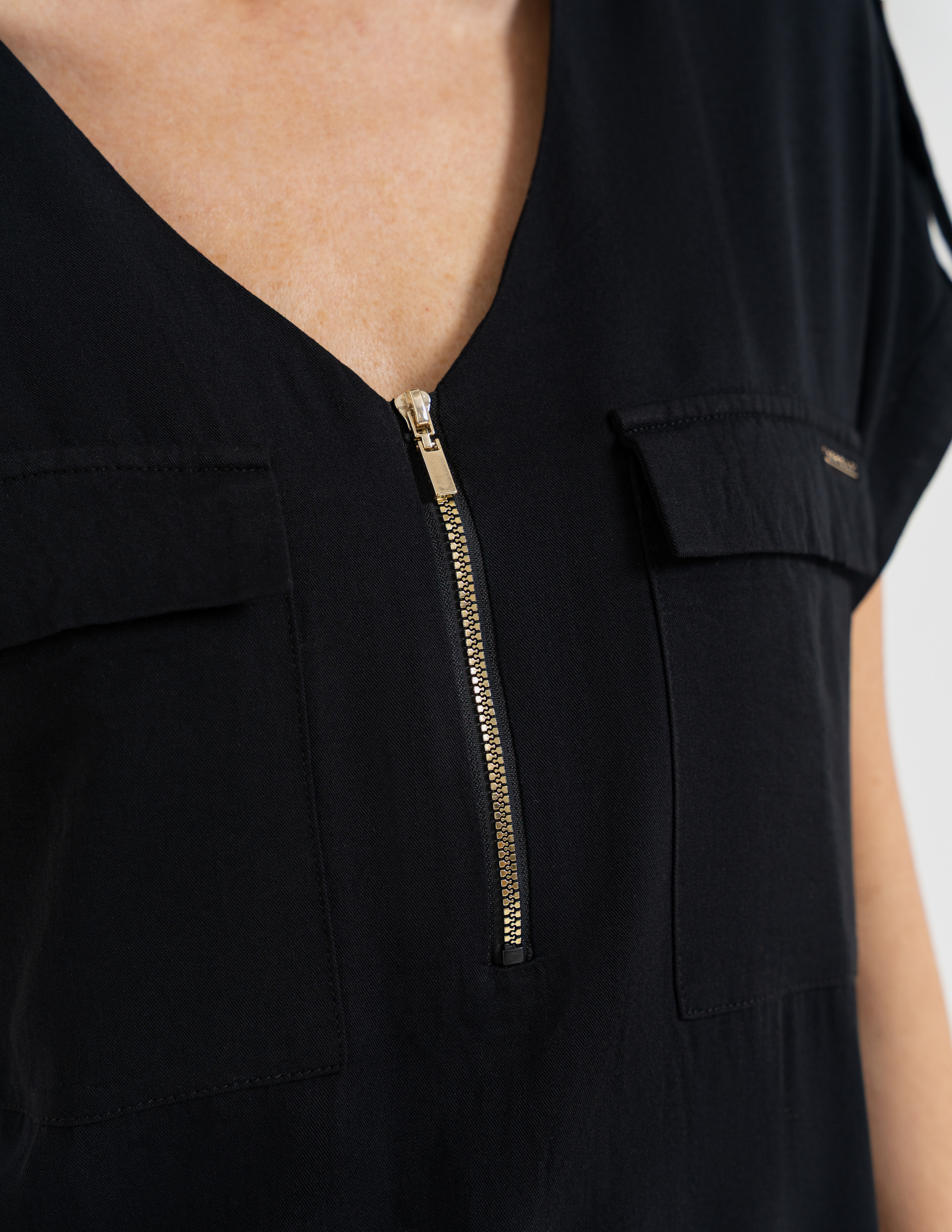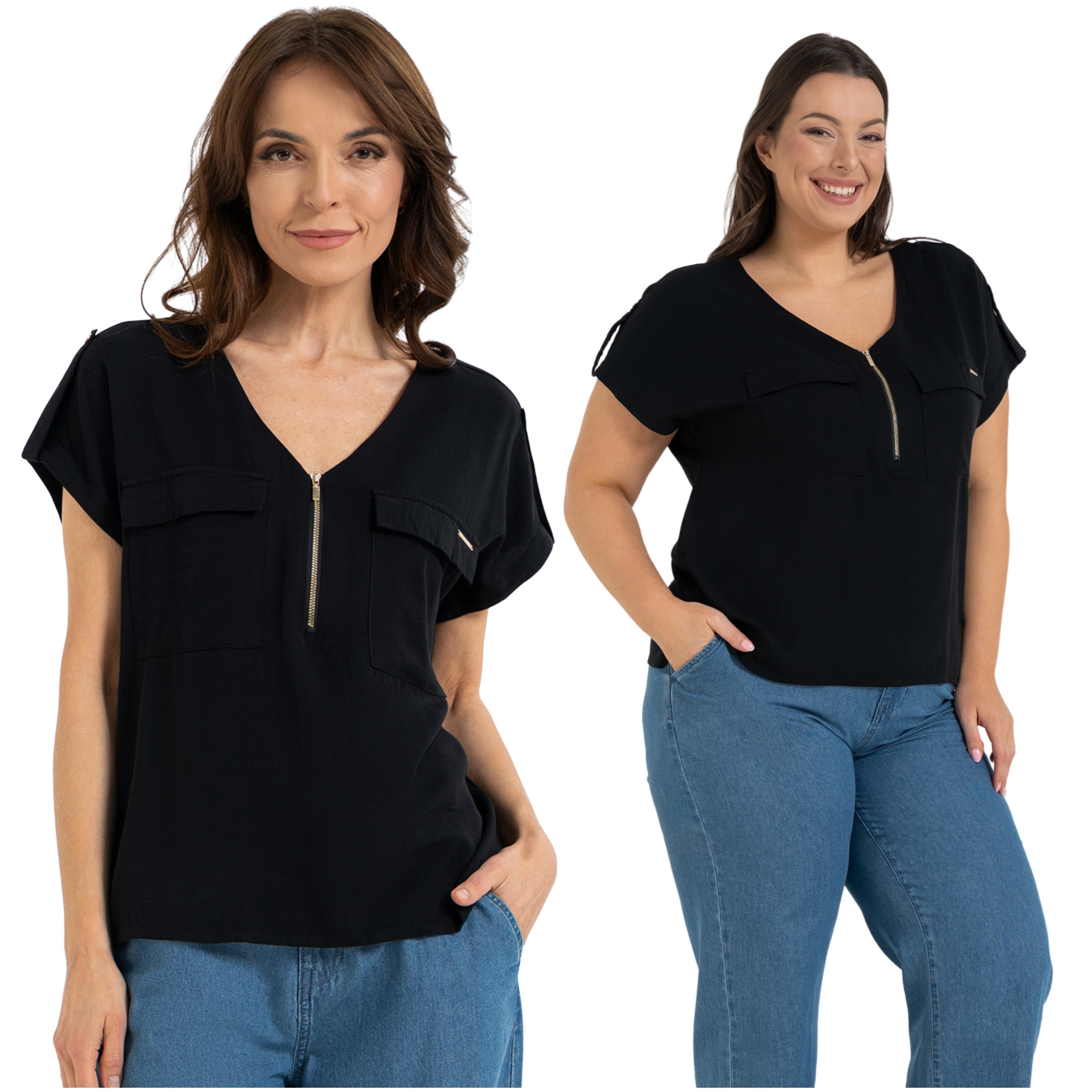 - Dekolt V z Suwakiem: Nowoczesny detal w postaci regulowanego zapięcia na suwak nie tylko przyciąga wzrok, ale pozwala Ci samodzielnie decydować o głębokości dekoltu – od biurowej klasyki po odważniejszy, wieczorny look.