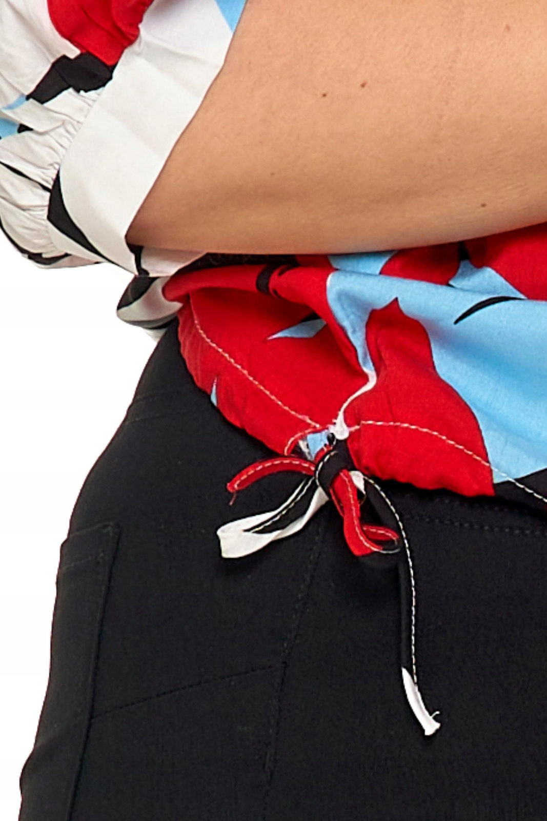 Rękaw 3/4 to praktyczne rozwiązanie, które pozwala na noszenie bluzki w różnych warunkach pogodowych - zarówno w ciepłe, jak i nieco chłodniejsze dni. Wzorzysty print na bluzce dodaje jej charakteru i sprawia, że wyróżnia się spośród innych podobnych produktów. Można ją łączyć z różnymi elementami garderoby - od jeansów po spódnice, a także pozwala na dodanie do niej różnych akcesoriów, takich jak biżuteria czy szalik. To idealna propozycja dla kobiet, które cenią sobie wygodę, oryginalność i modny styl.
