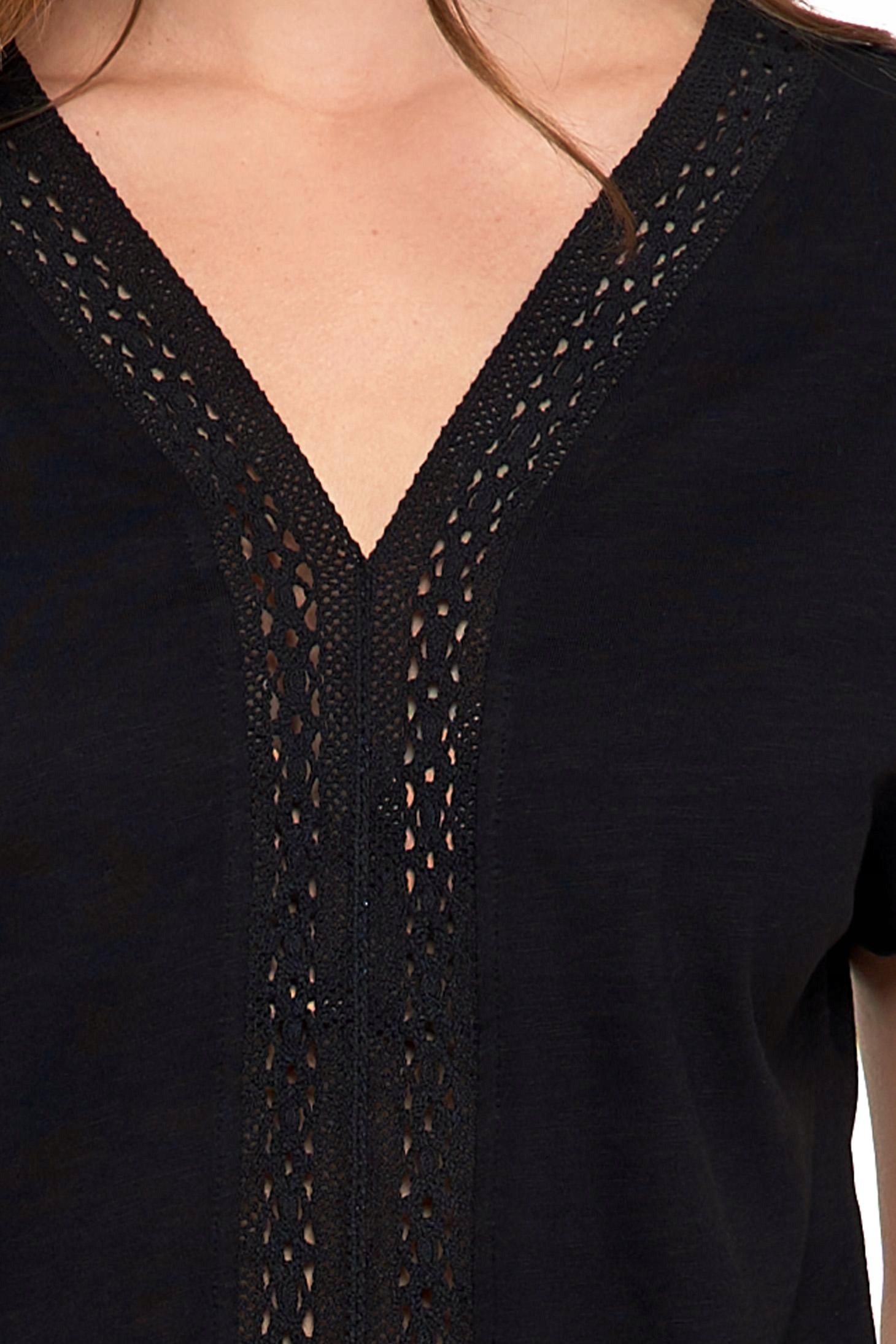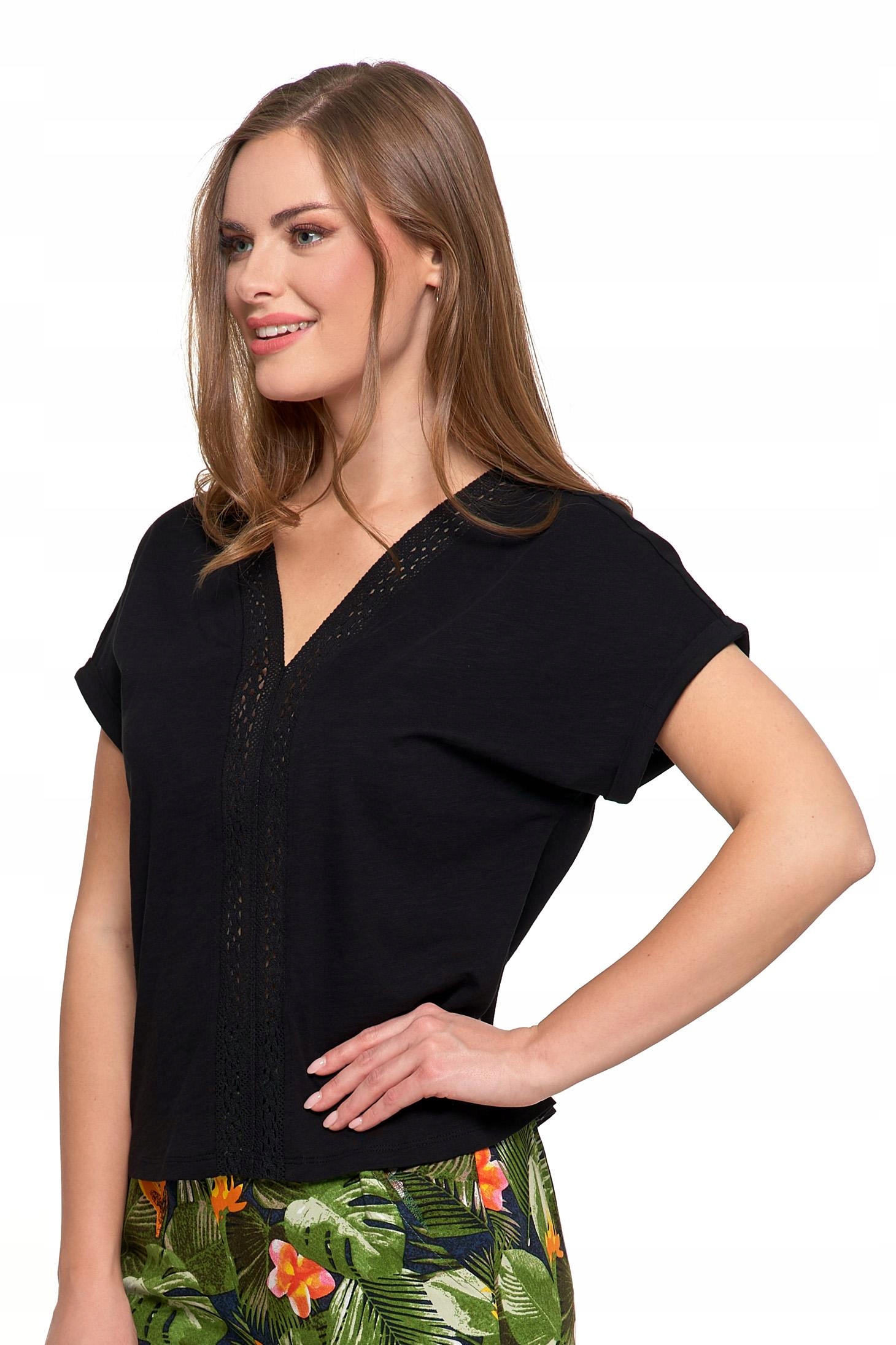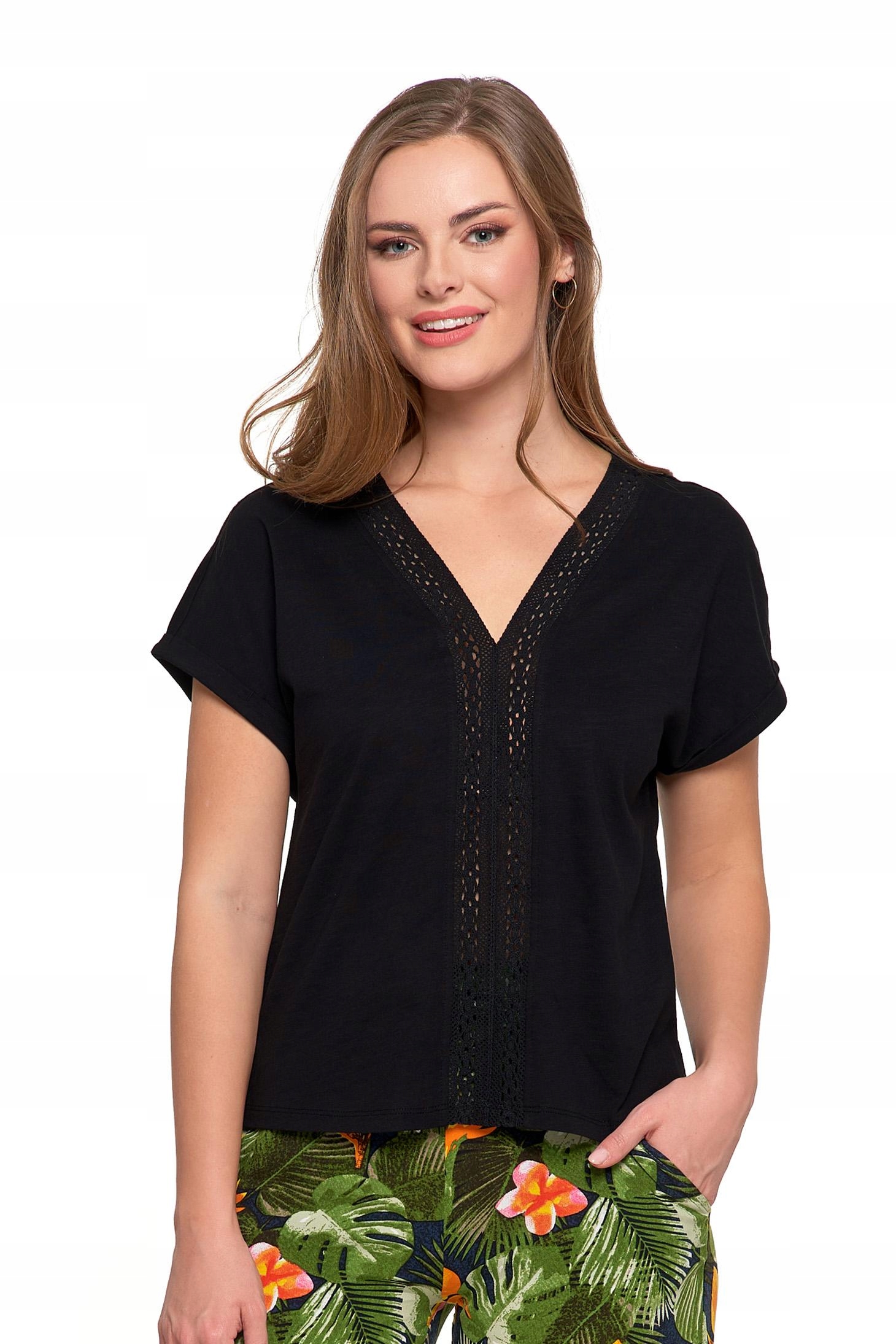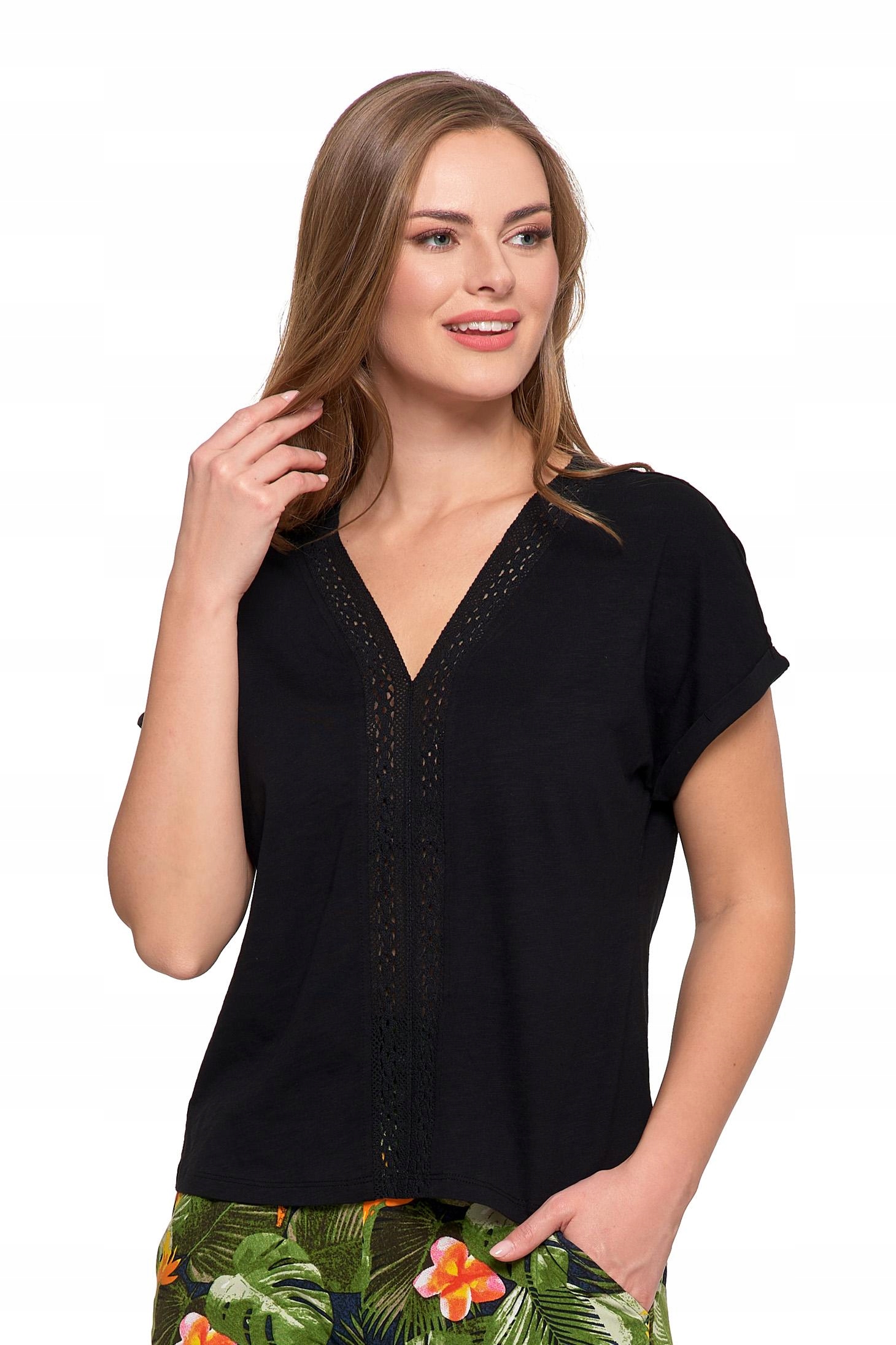 Bluzka Damska z Koronkową Ażurową Wstawką Dekolt ''V'' Elegancka MORAJ