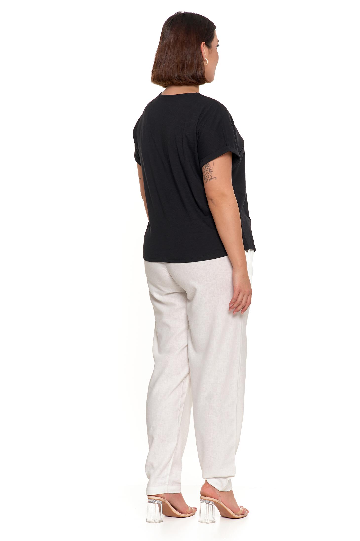 - Dekolt „V”, podkreślający szyję i nadający bluzce lekkości.