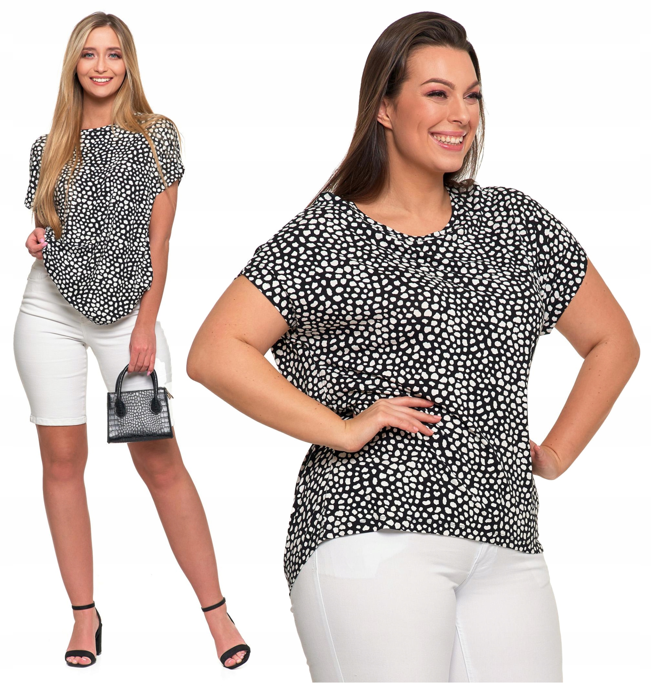 Bluzka Damska z Wiskozy Luźna Koszulka Na Krótki Rękaw Wzorzysta MORAJ