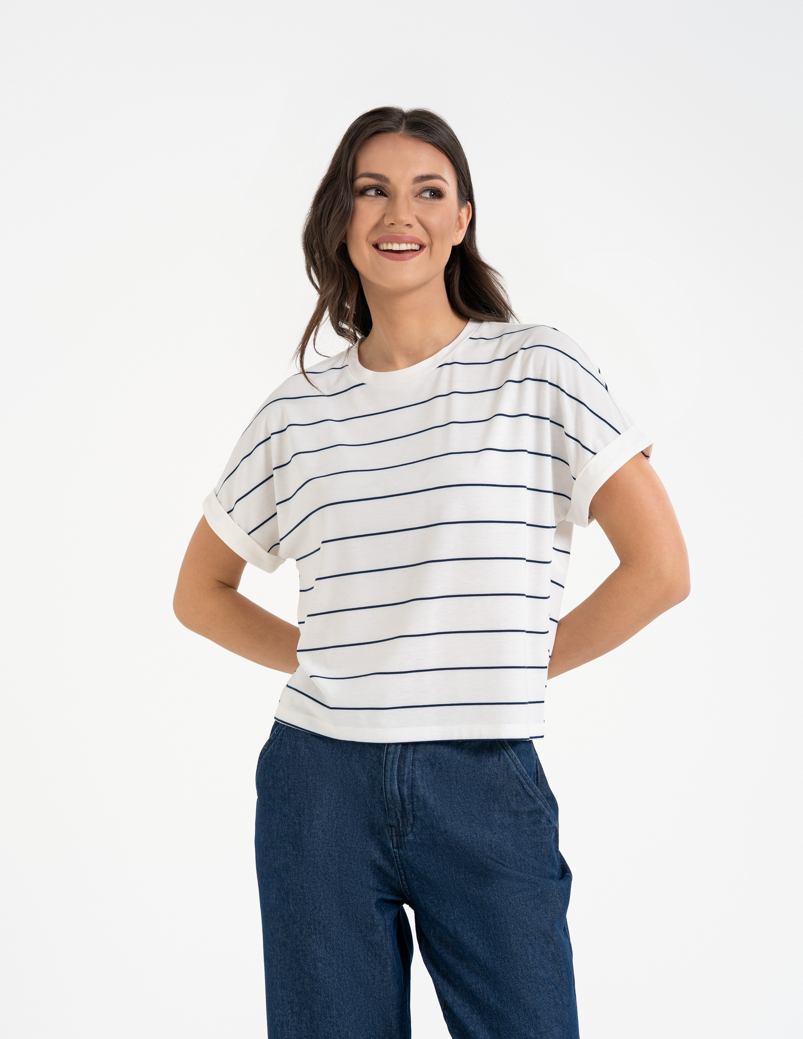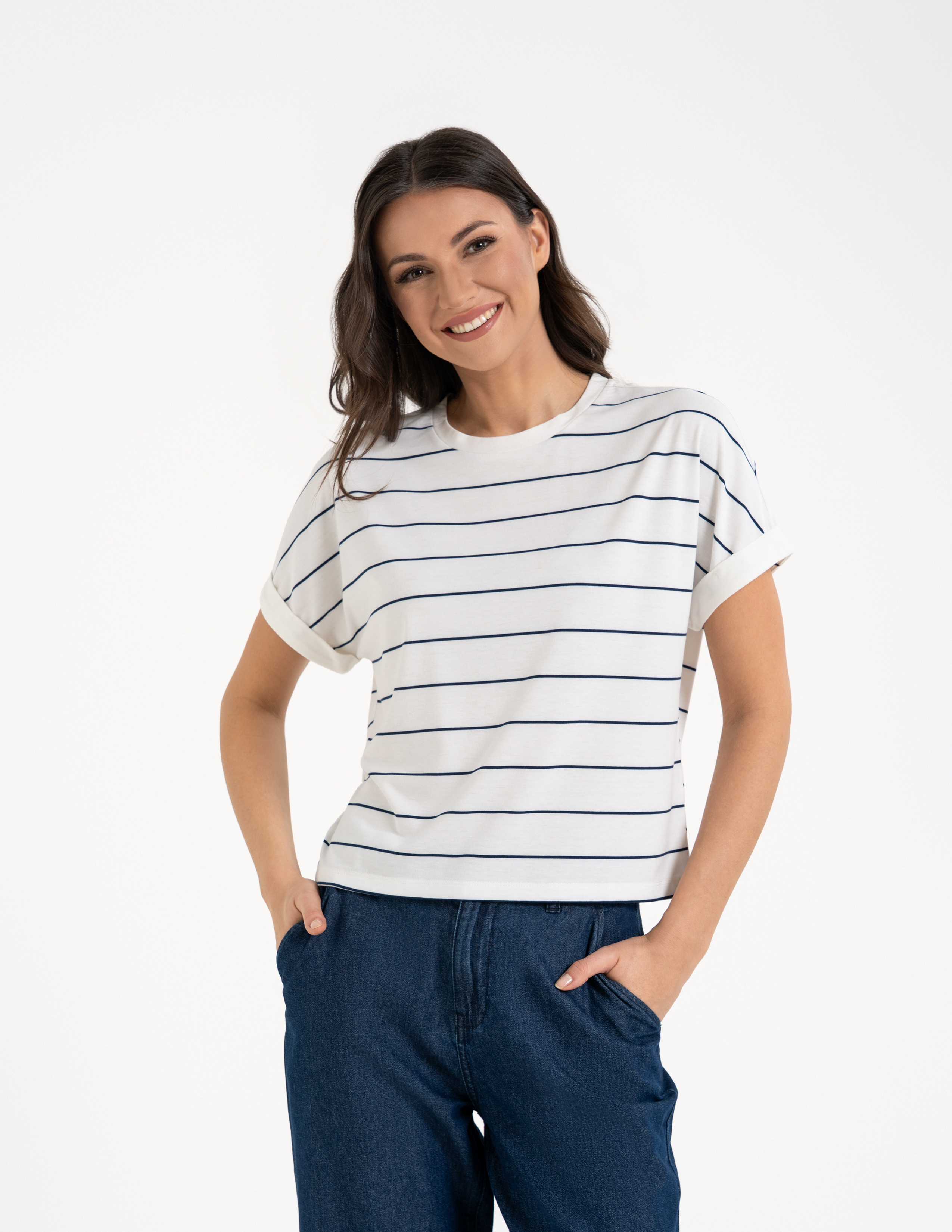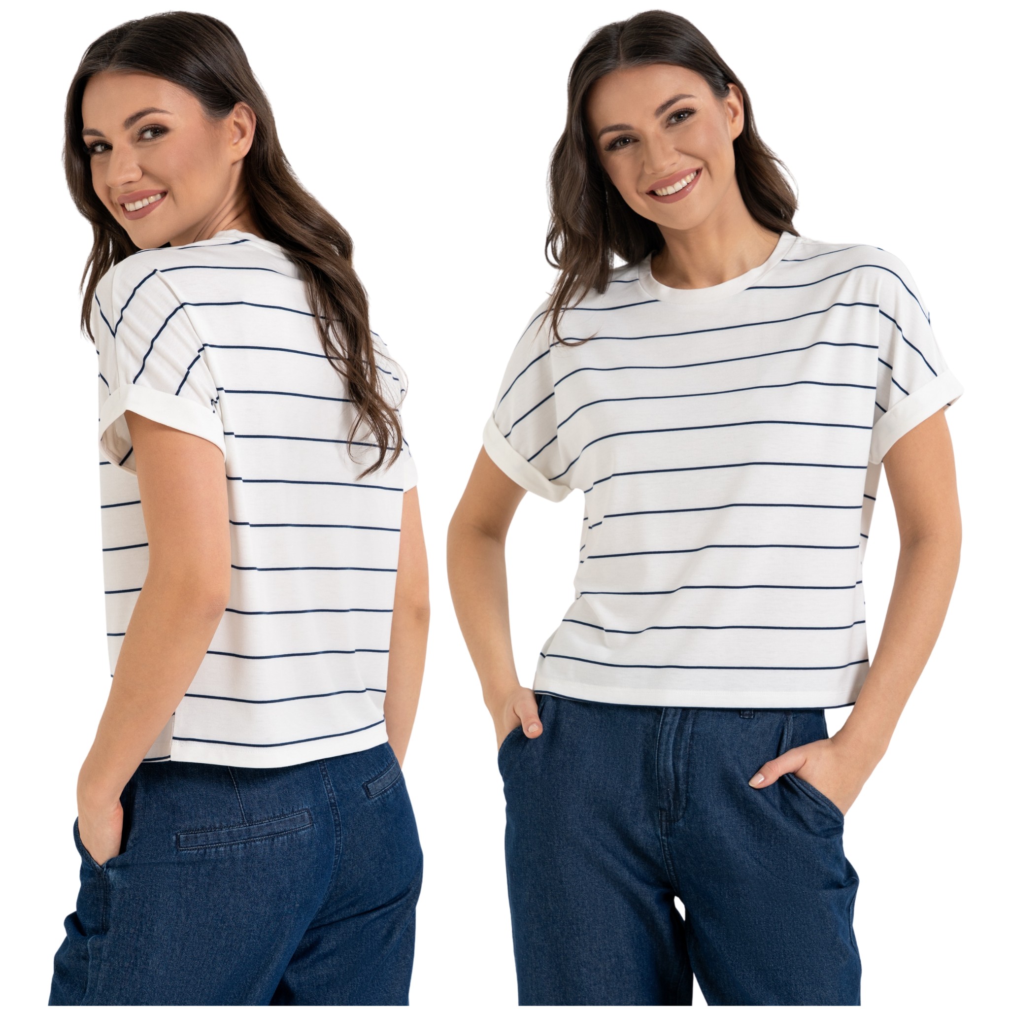 - Ponadczasowy Wzór: Paski w stonowanej palecie barw to fundament stylu marynarskiego i paryskiego szyku. Łatwo zestawisz je z dowolnym dołem w Twojej szafie.