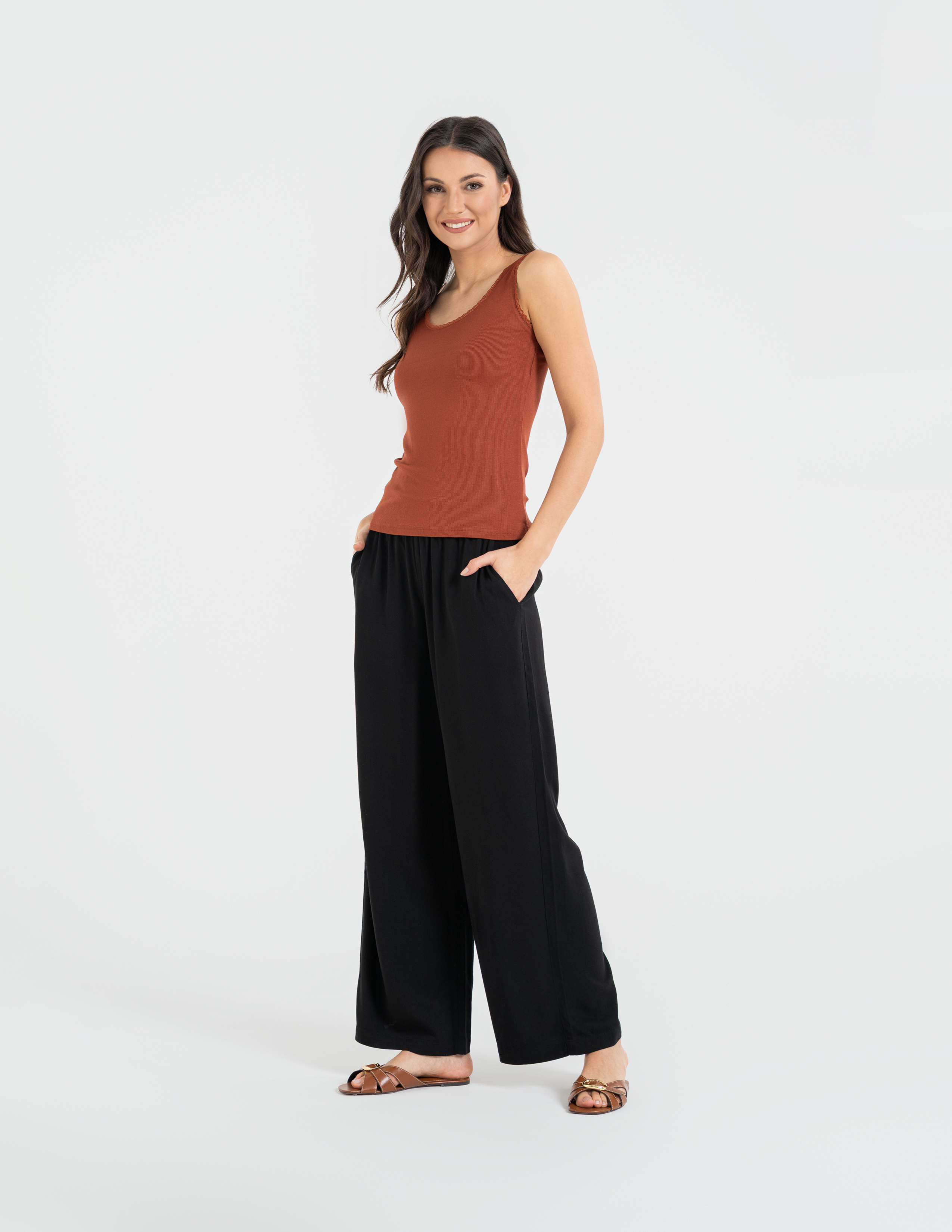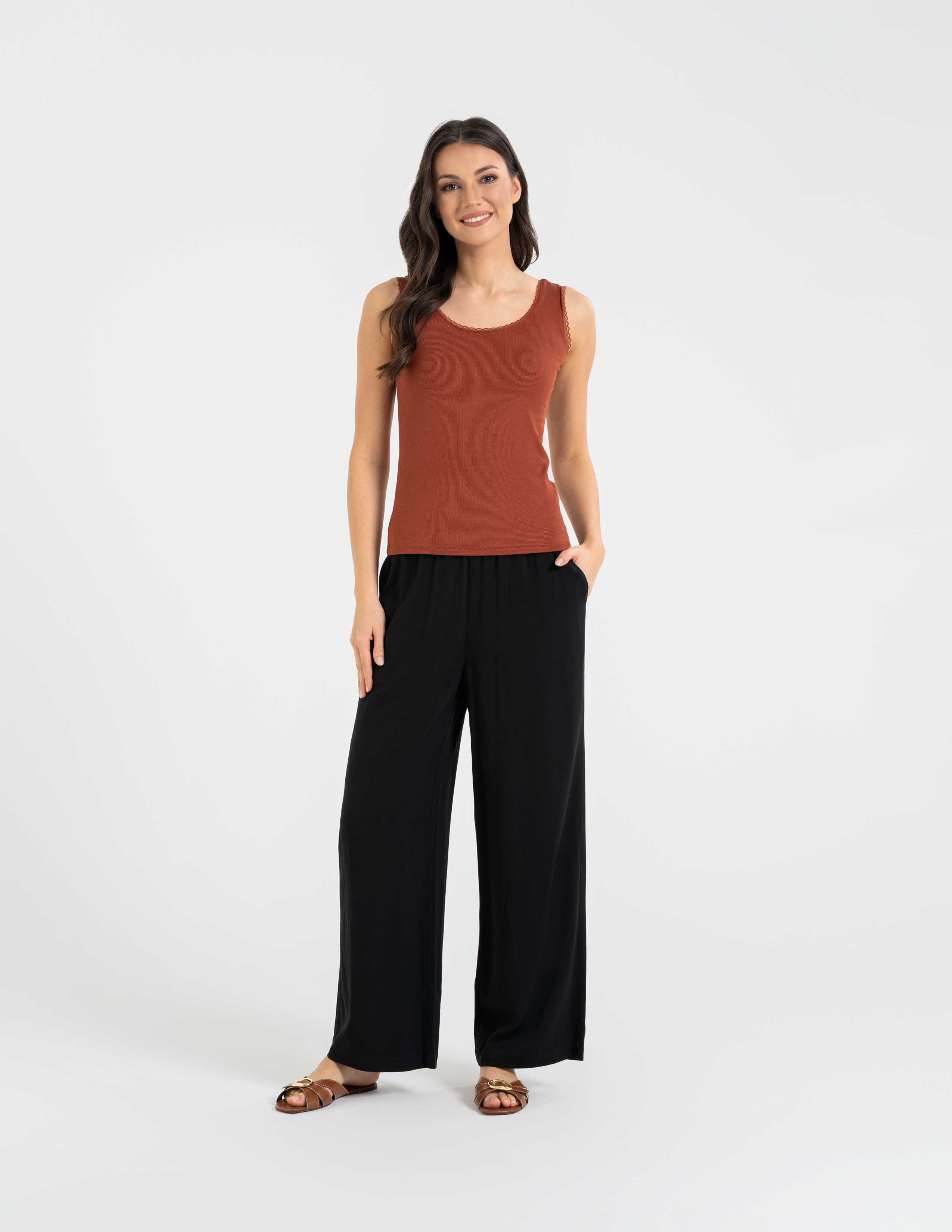 Poczuj wyjątkową lekkość i kobiecość w codziennym wydaniu. Ten tank top to połączenie jedwabistej miękkości wiskozy z eleganckim wykończeniem, które sprawia, że zwykła baza staje się luksusowym elementem Twojej garderoby.