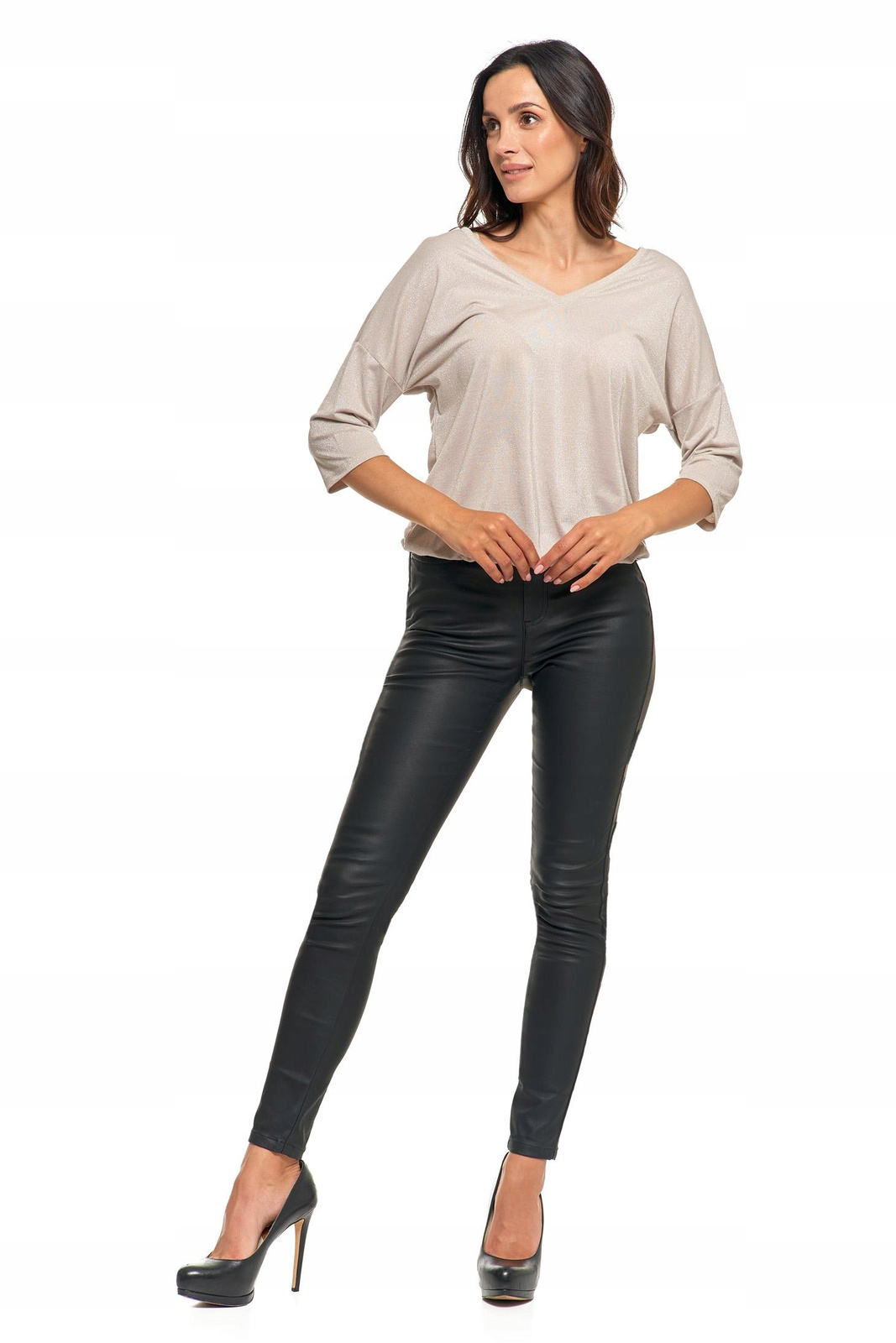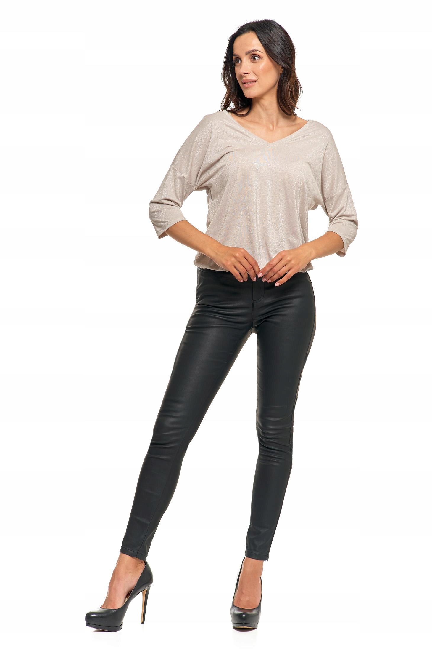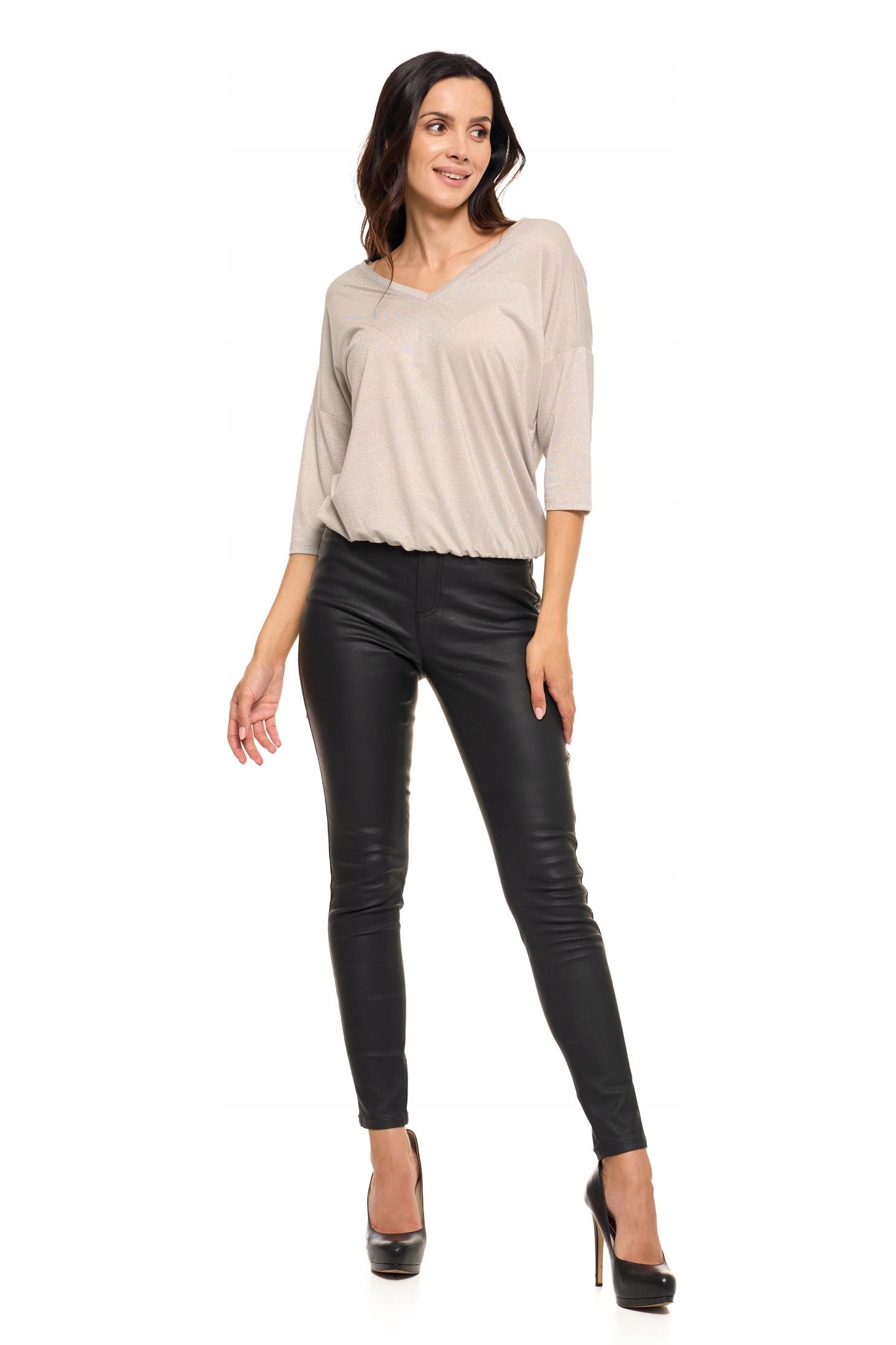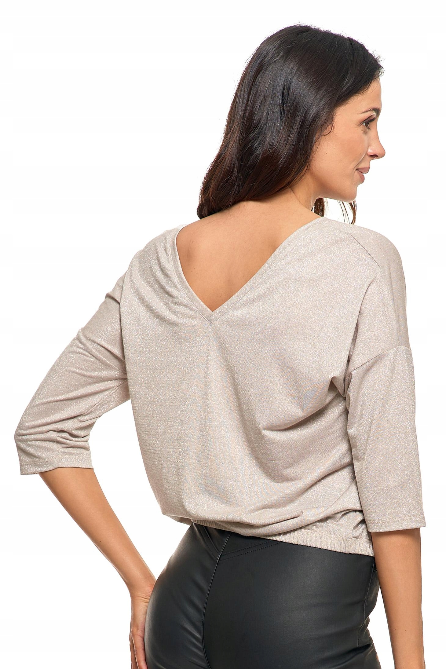 Błyszcząca Bluzka Damska Elegancka Rękaw 3/4 Modna Luźna Koszulka MORAJ