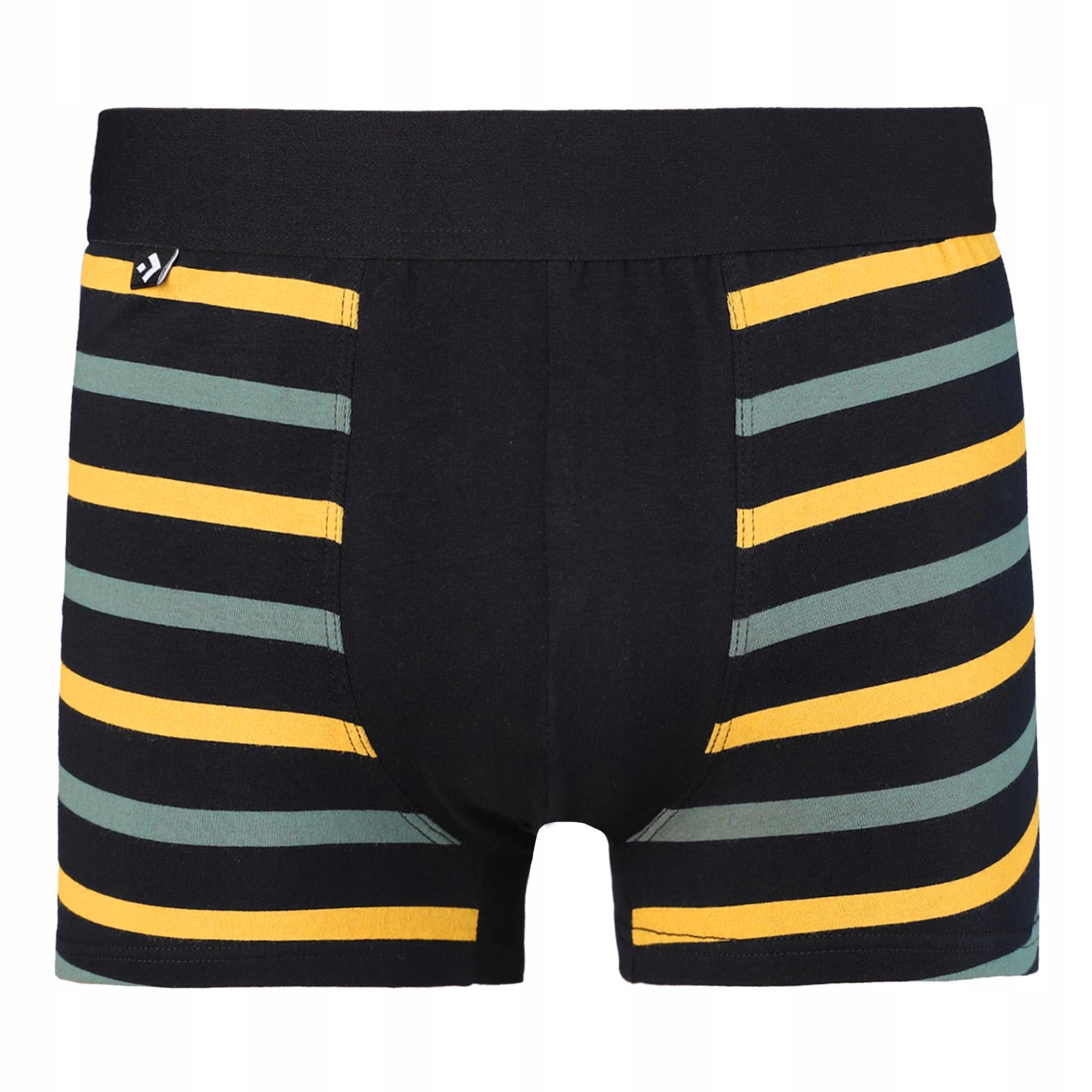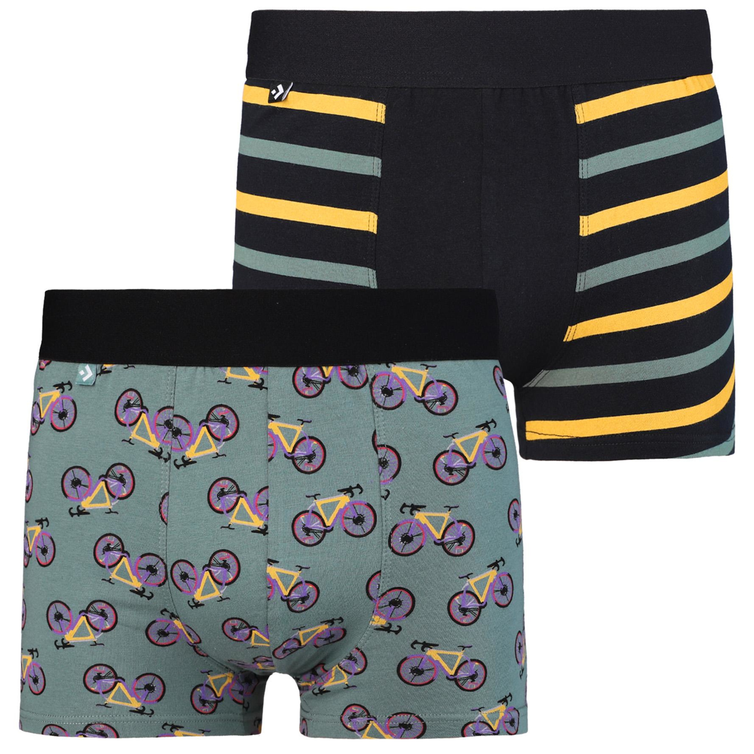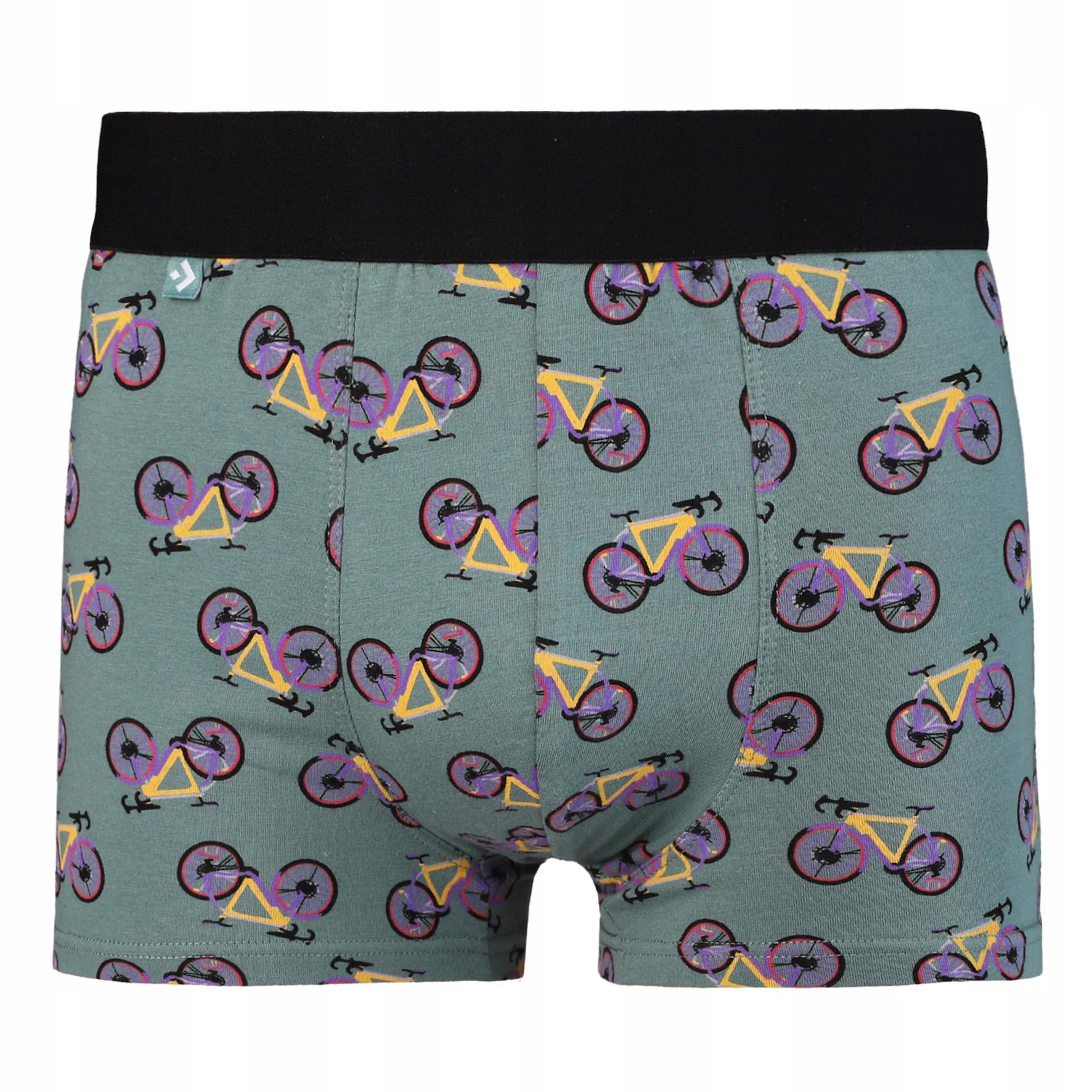 Klasyczny, przylegający krój sprawia, że bokserki są wygodne i stylowe. Zestaw zawiera dwie pary: jedna z charakterystycznym, rowerowym wzorem na szarym tle, idealna dla miłośników aktywnego stylu życia, druga z czarno-żółtymi i zielonymi pasami, dodającymi nowoczesnego akcentu.