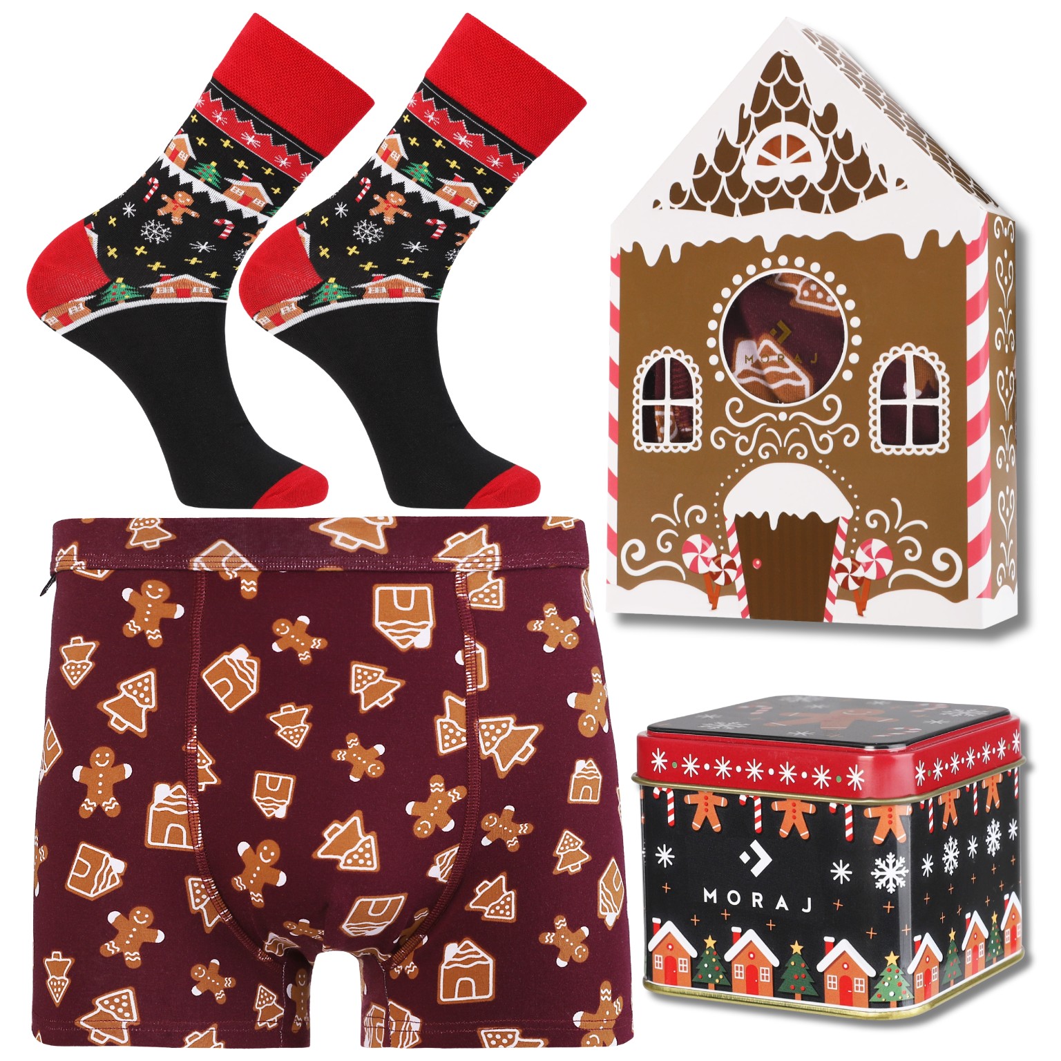 BOKSERKI MĘSKIE W KARTONIKU ŚWIĄTECZNE SKARPETY PREZENT PIERNIKI MORAJ