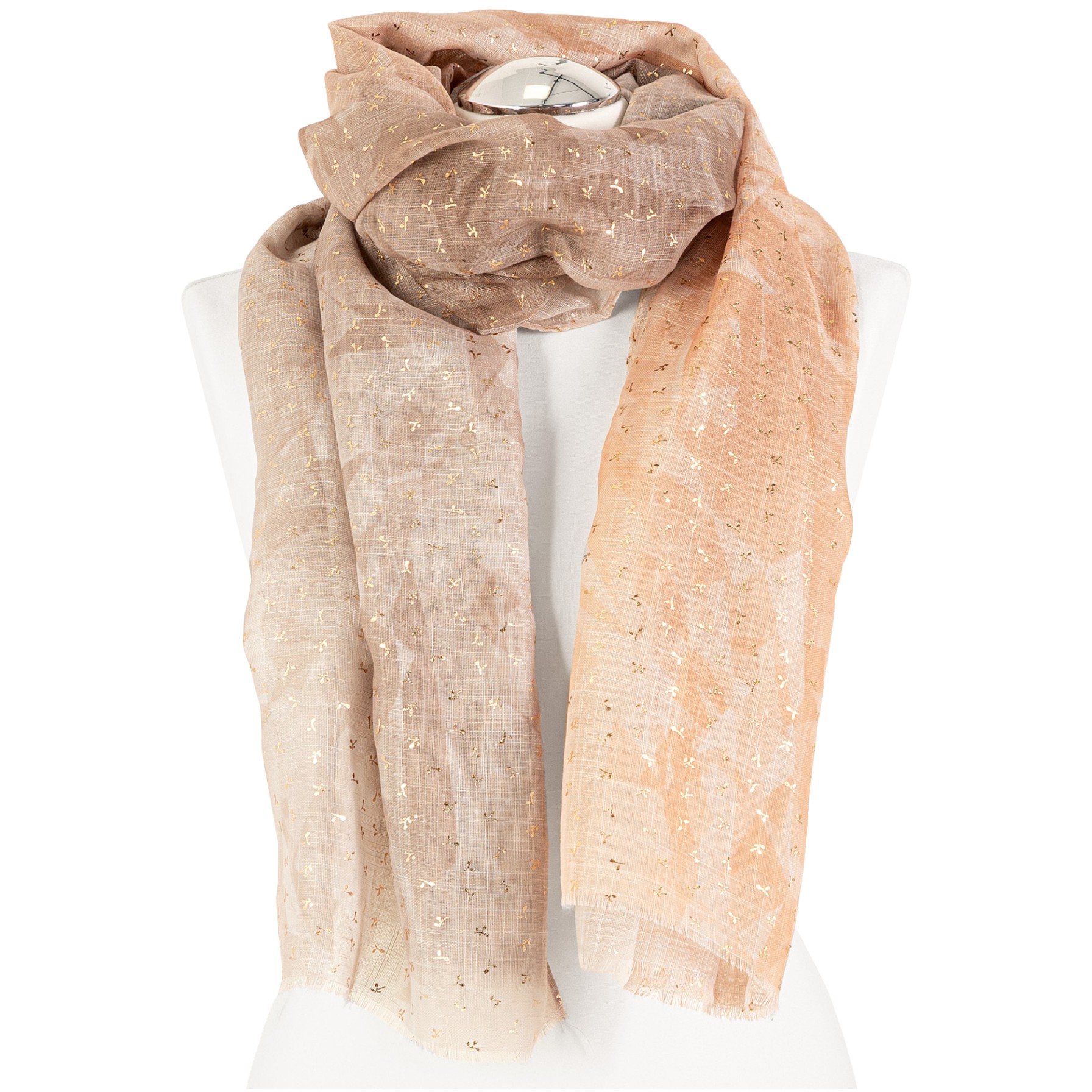 CIENKI SZAL DAMSKI ELEGANCKI ZE ZŁOTYMI ZDOBIENIAMI SZALIK ZWIEWNY MORAJ