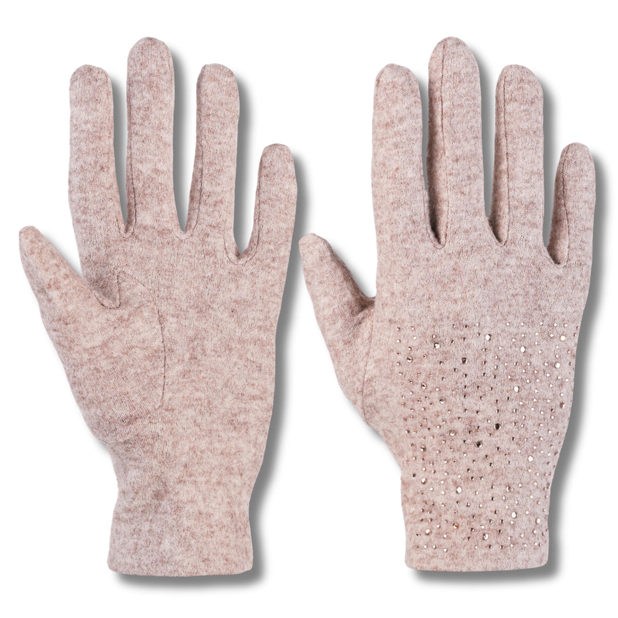 CIEPŁE RĘKAWICZKI DAMSKIE NA ZIMĘ Z WEŁNĄ I KRYSZTAŁKAMI ELEGANCKIE MORAJ