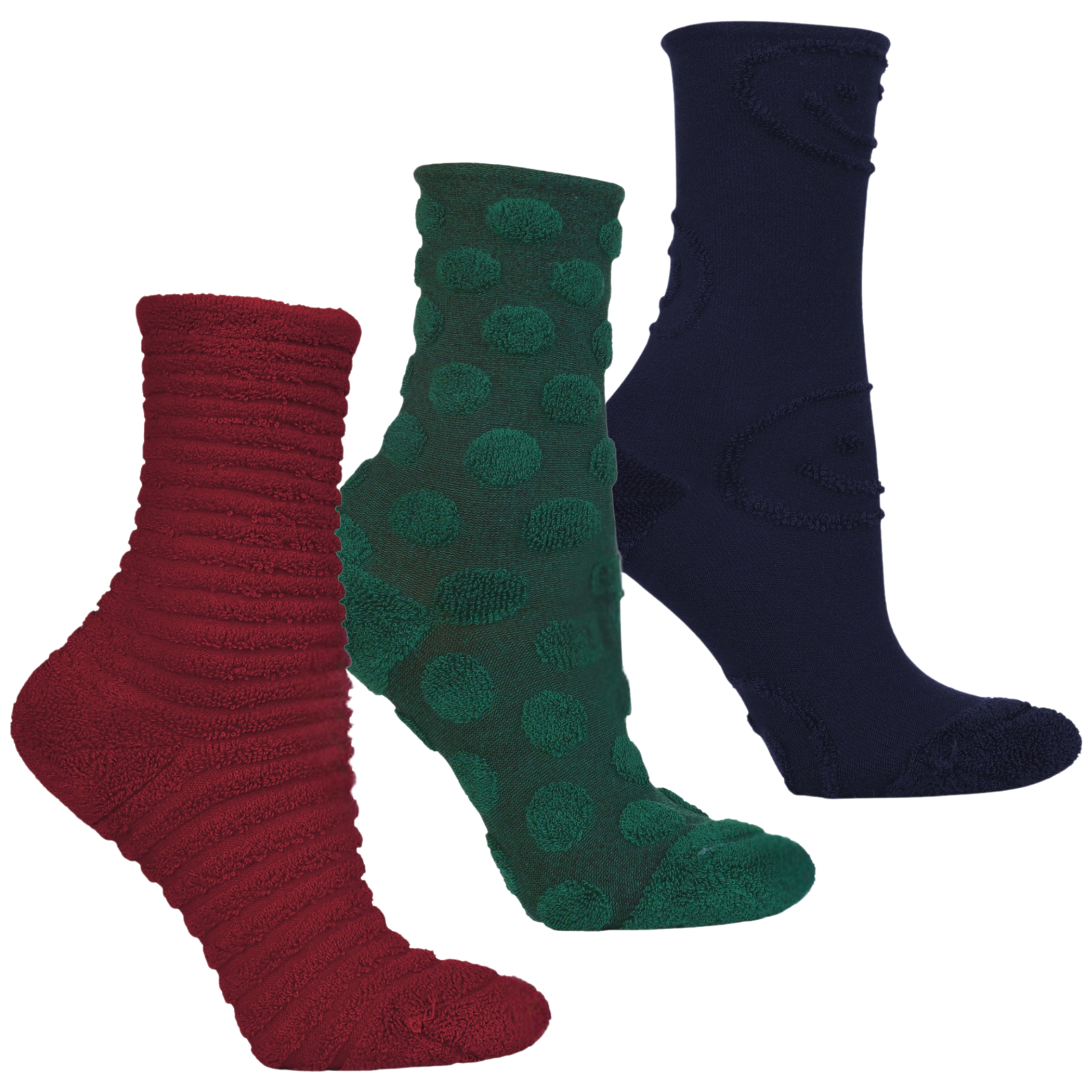 Te ciepłe skarpety damskie to idealny wybór na chłodne dni. Wykonane z miękkiego i puszystego materiału frotte, zapewnią Twoim stopom wyjątkowy komfort i ochronę przed zimnem. Tłoczone wzory dodają im stylowego charakteru, a praktyczny zestaw 3 par sprawia, że to idealne rozwiązanie na jesień i zimę.