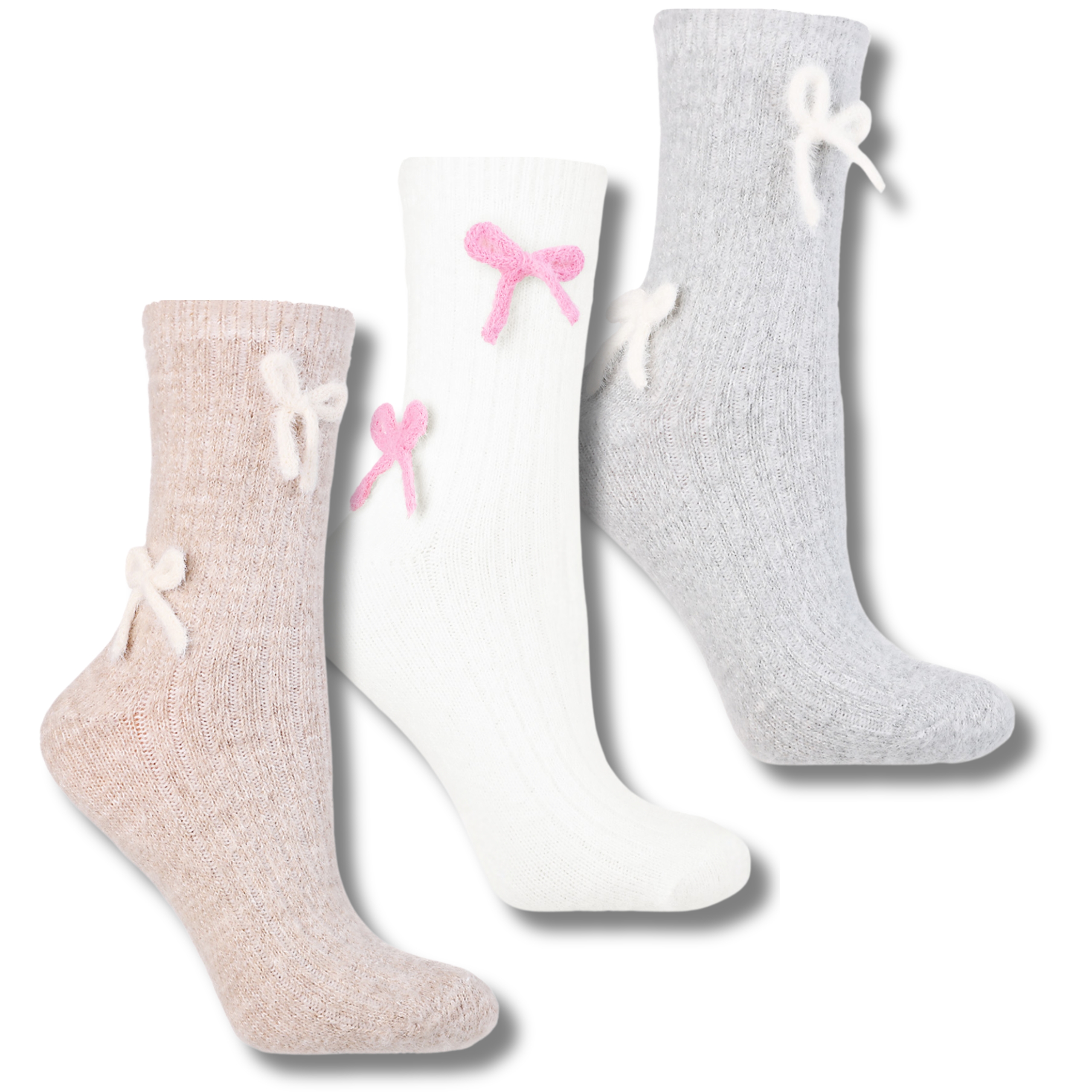 CIEPŁE SKARPETKI DAMSKIE SKARPETY Z KOKARDKAMI UROCZE MORAJ 3-PAR