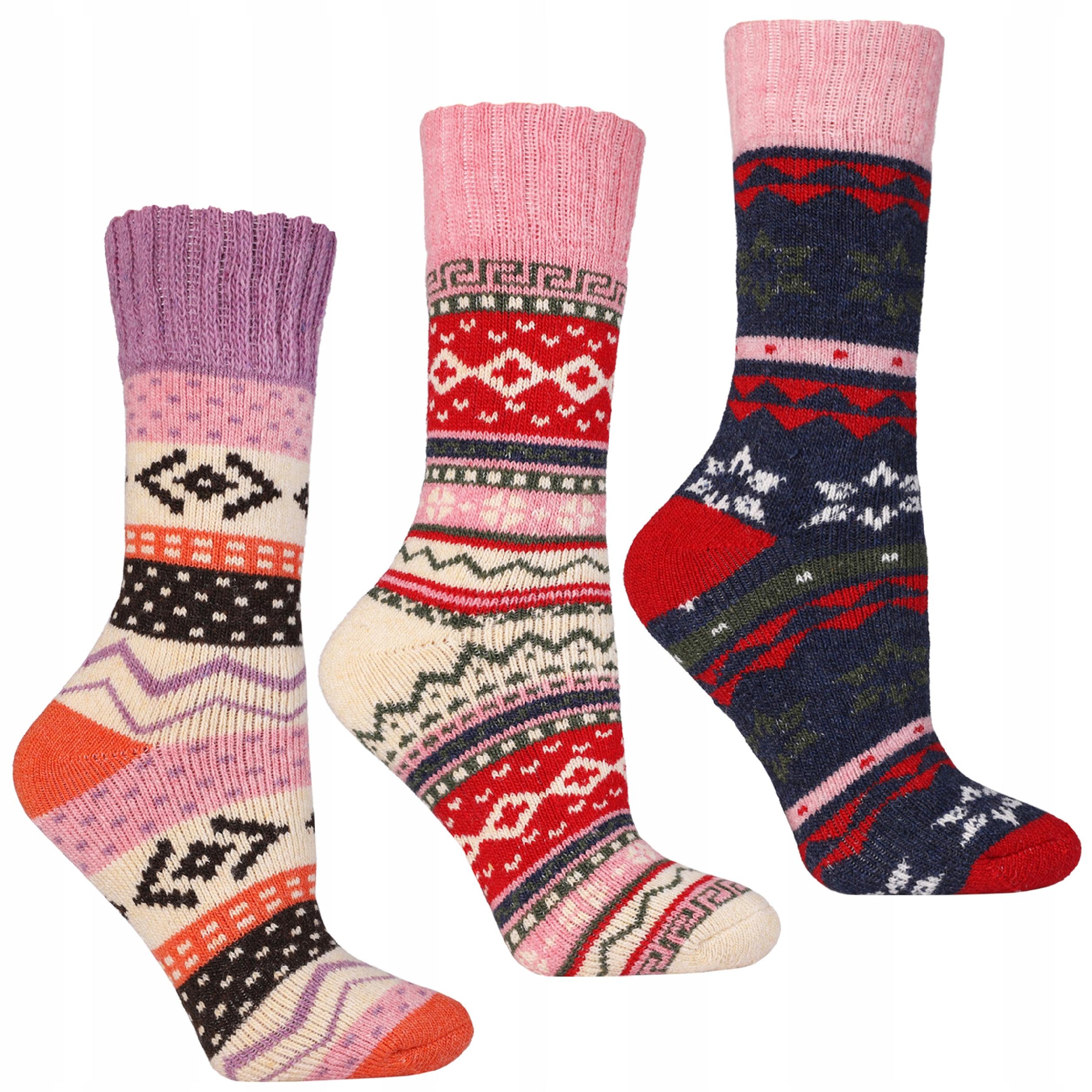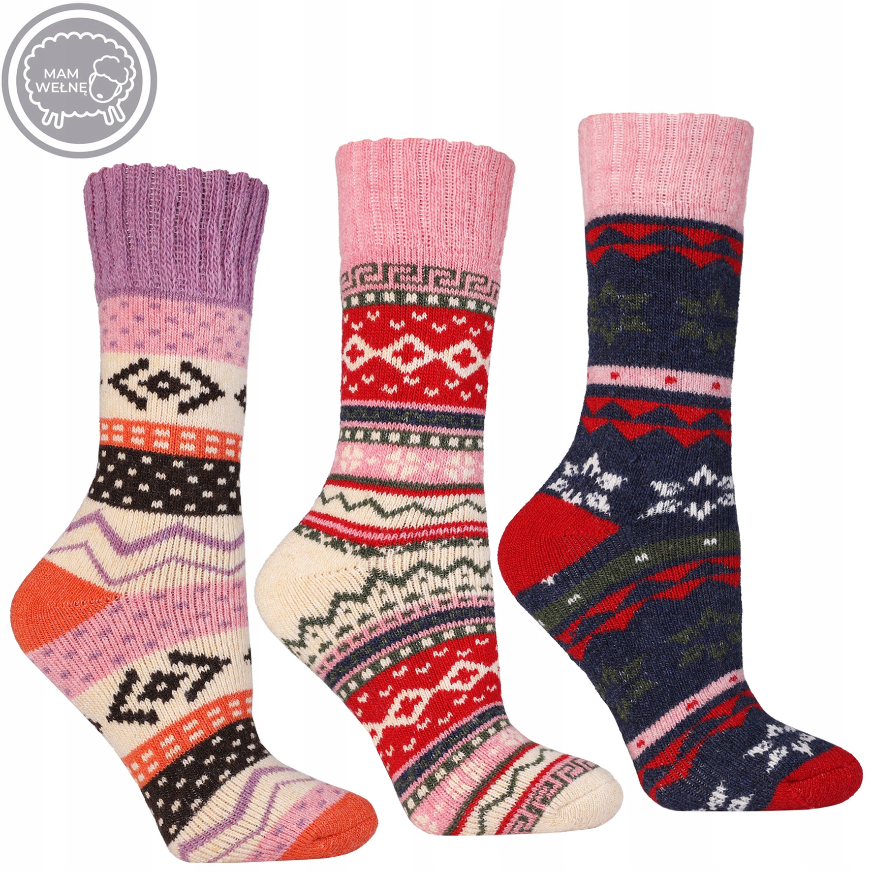 Ciepłe Skarpety Damskie Grube Termo Wełna Norweski Wzór 3-PAK MORAJ