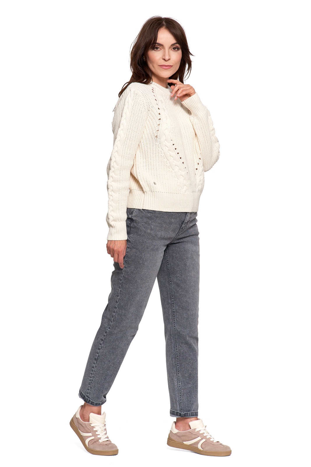 To model, który sprawdzi się w wielu stylizacjach. Noś go z jeansami i botkami na co dzień, zestaw z koszulą z kołnierzykiem do pracy lub połącz ze spódnicą midi i kozakami na wieczorne wyjścia. Sweter z warkoczowym splotem to klasyka, która nigdy nie wychodzi z mody i zawsze dodaje stylizacji ciepła oraz przytulności.