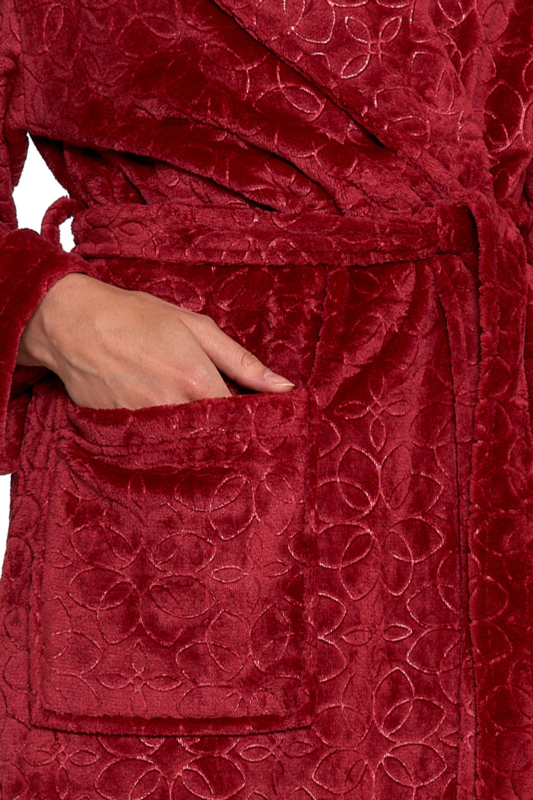 Design: Efektowny, tłoczony wzór na całej powierzchni dodaje szlafrokowi wyjątkowego, eleganckiego charakteru.