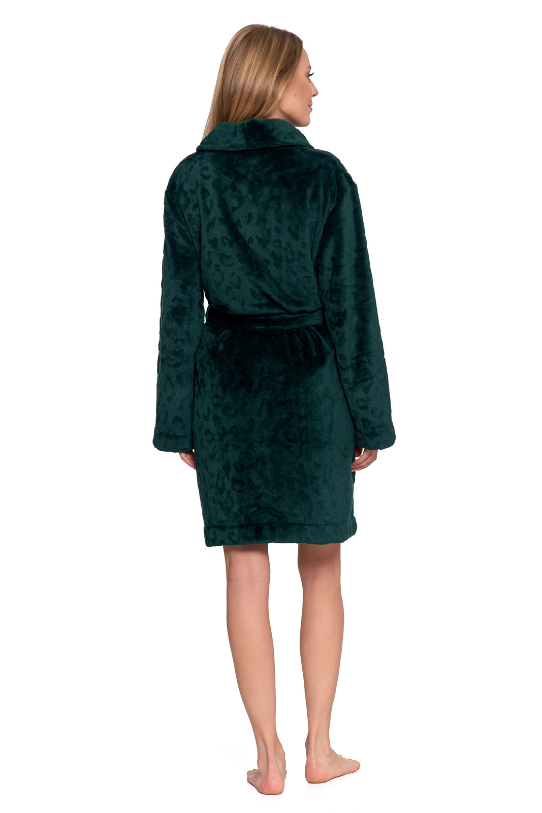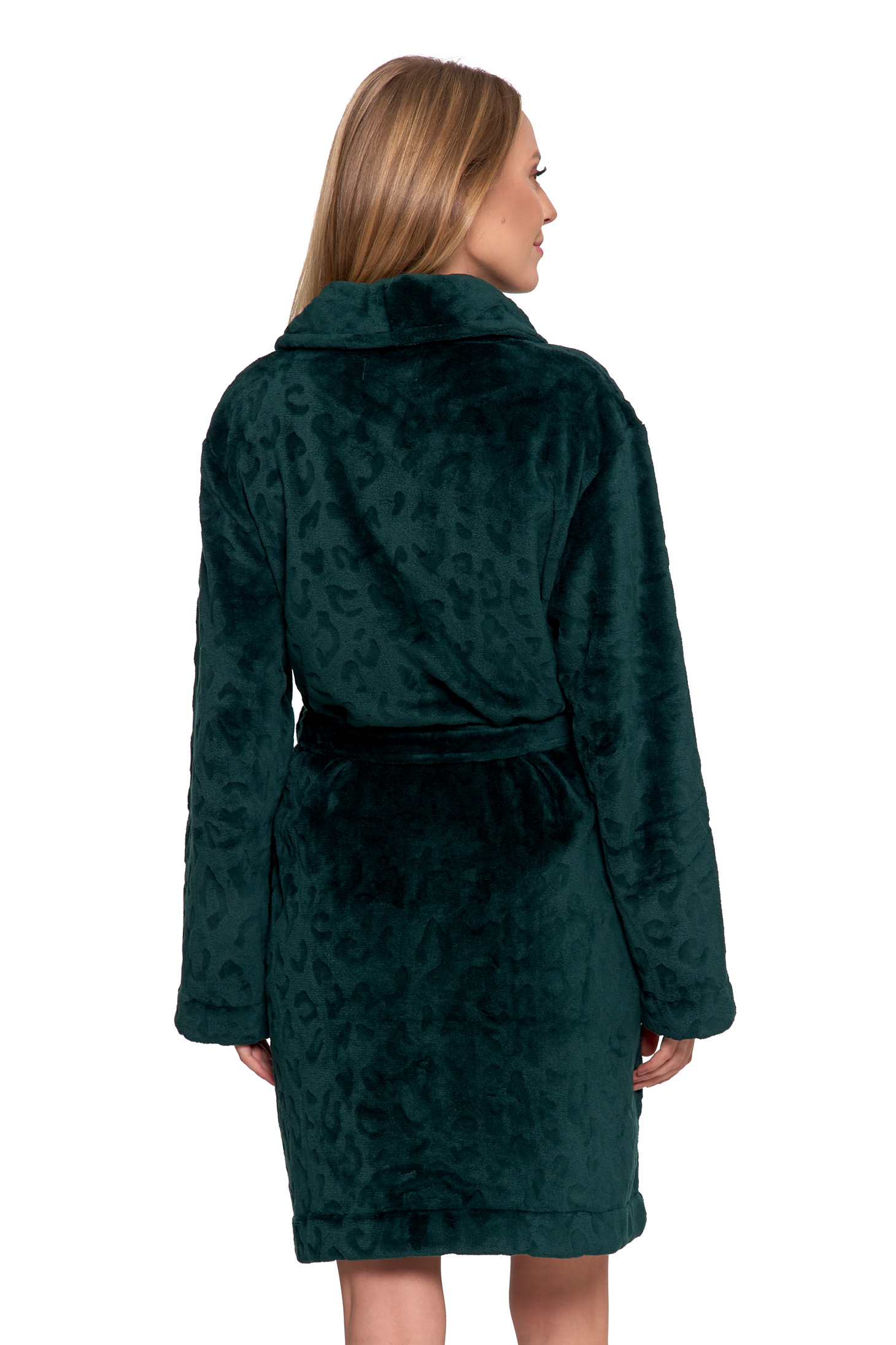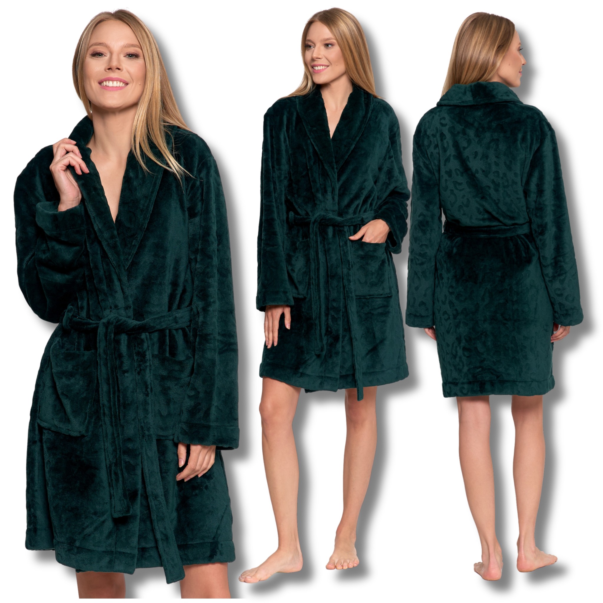 CIEPŁY SZLAFROK DAMSKI NA PREZENT TŁOCZONA PANTERKA WIĄZANY MORAJ