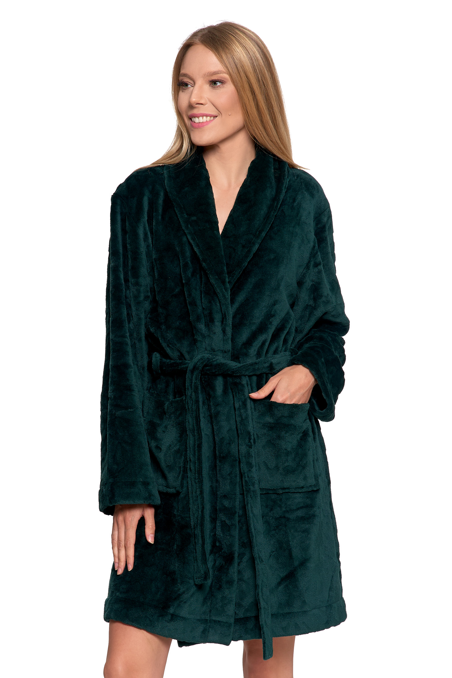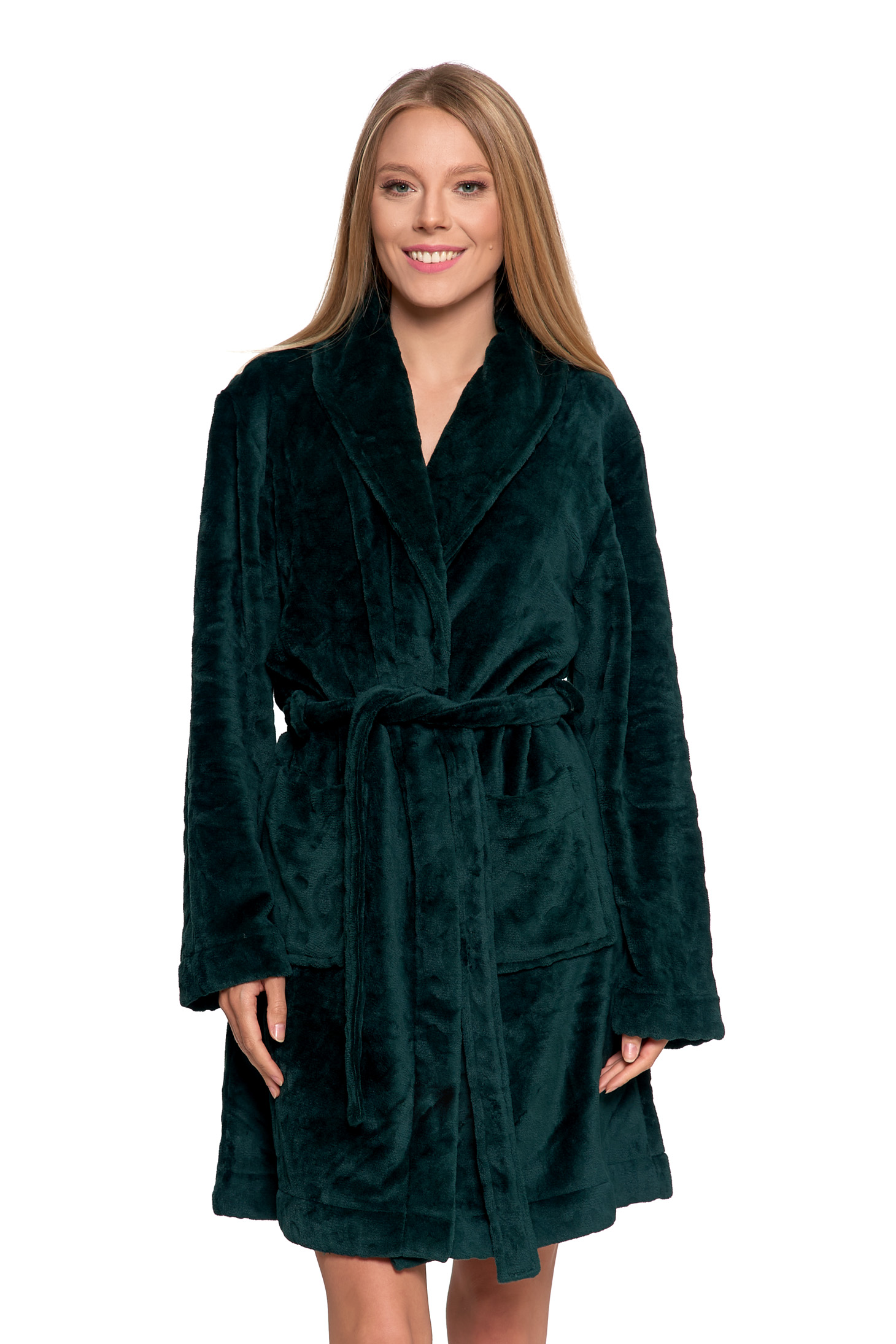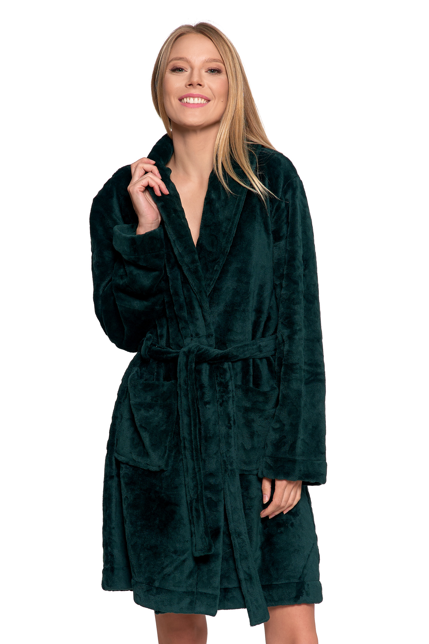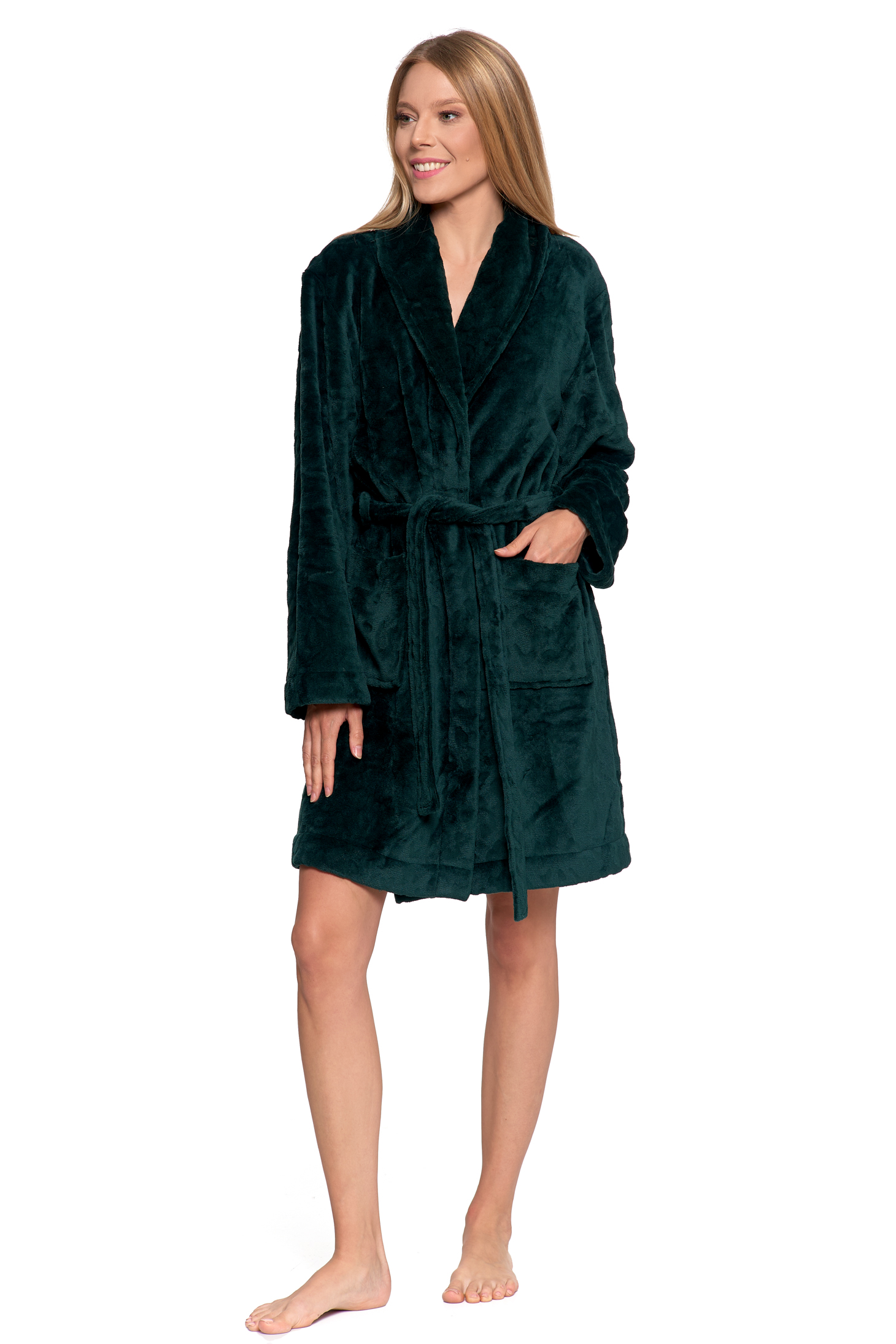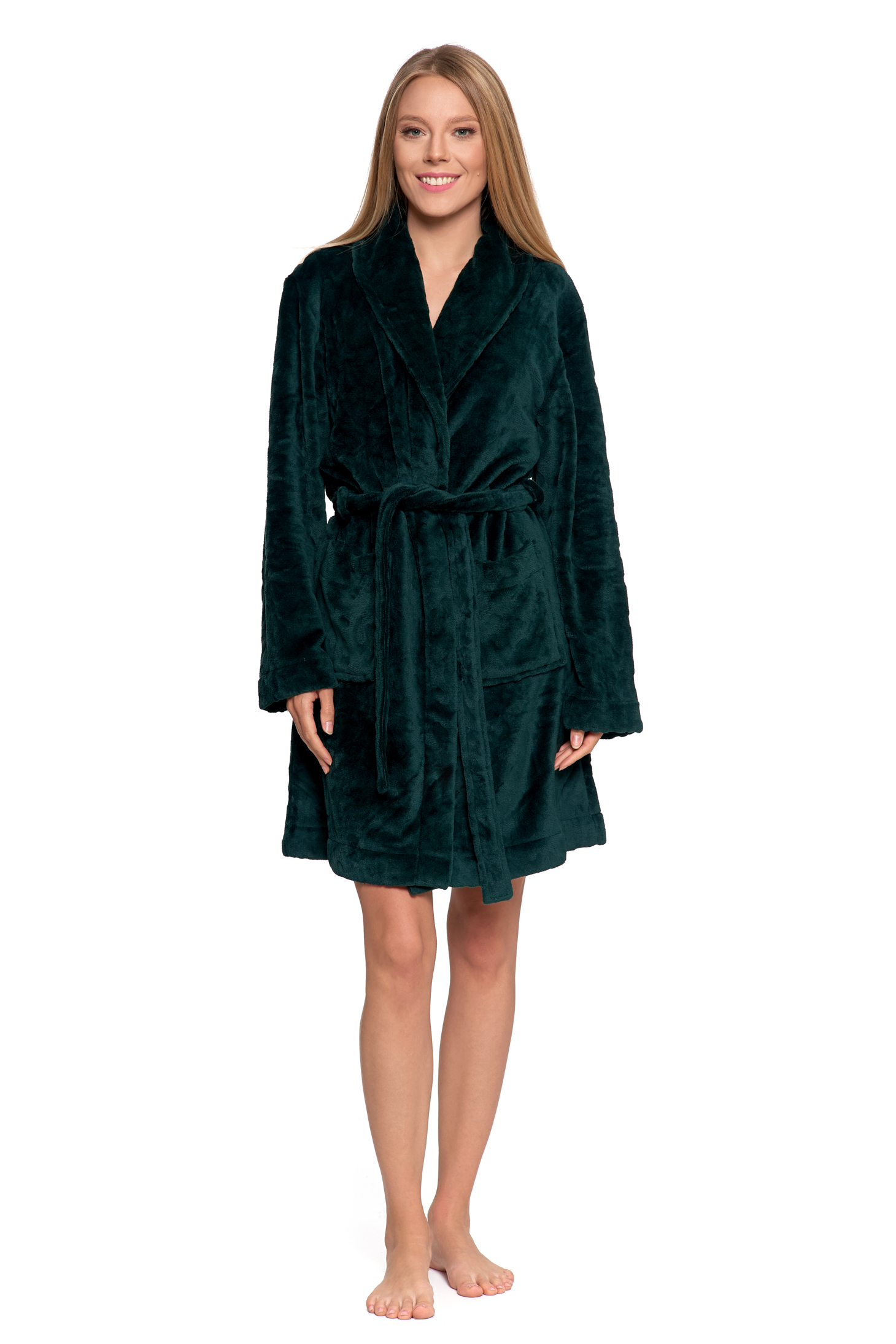 Ten krótki damski szlafrok to idealne połączenie elegancji i maksymalnego komfortu, które natychmiast wprowadzi Cię w stan domowego relaksu. Zapewnia doskonałe ciepło, jednocześnie stanowiąc stylowy i modny element domowej garderoby.
