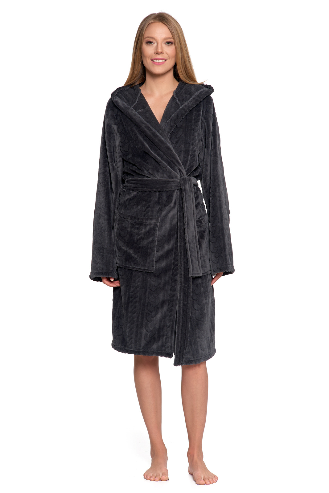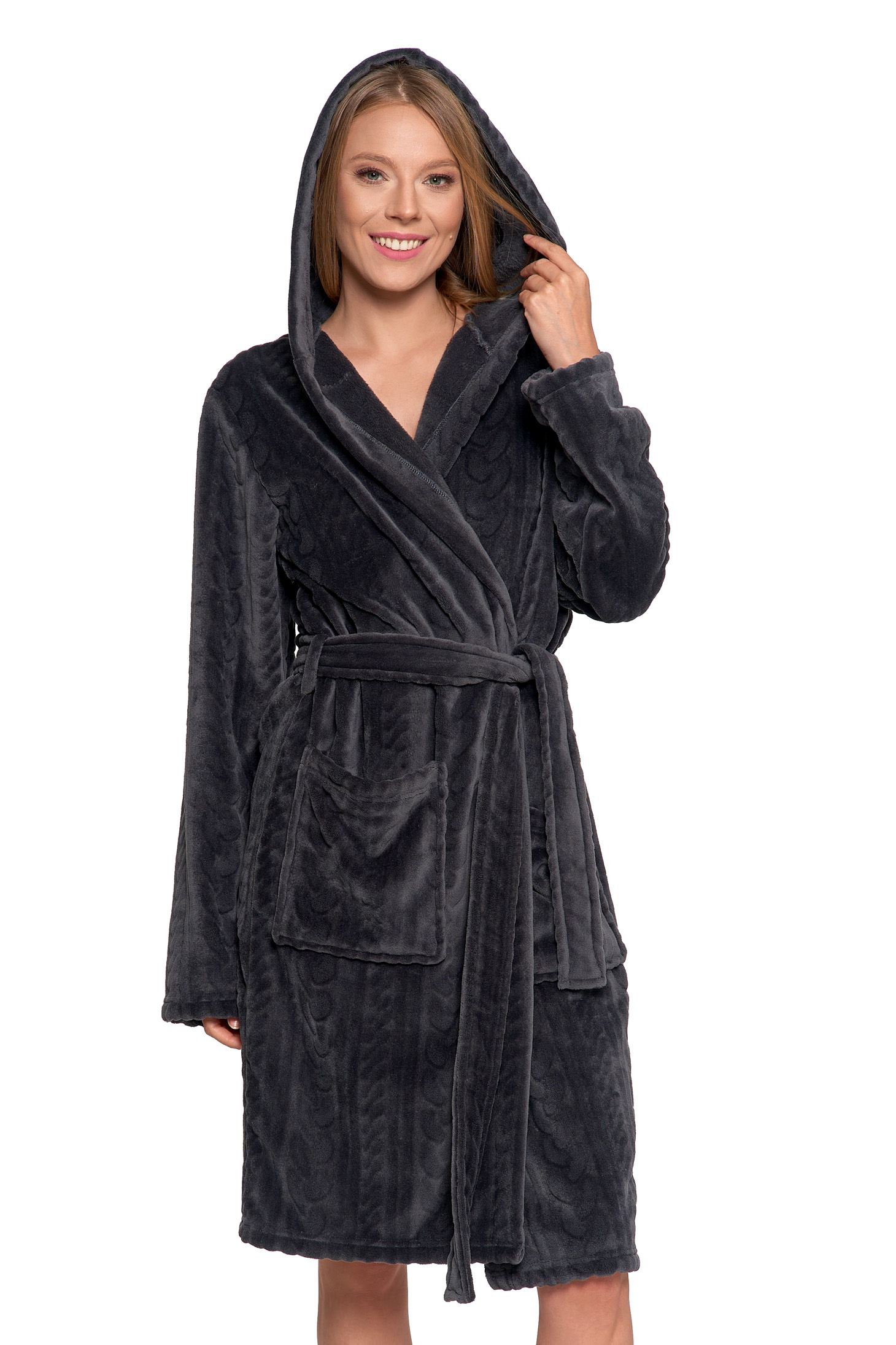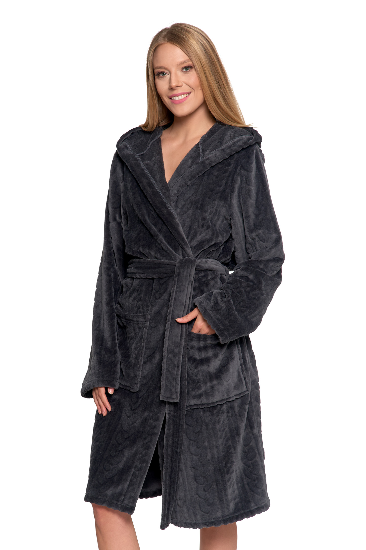 CIEPŁY SZLAFROK DAMSKI NA PREZENT WIĄZANY Z KAPTUREM PUSZYSTY MORAJ