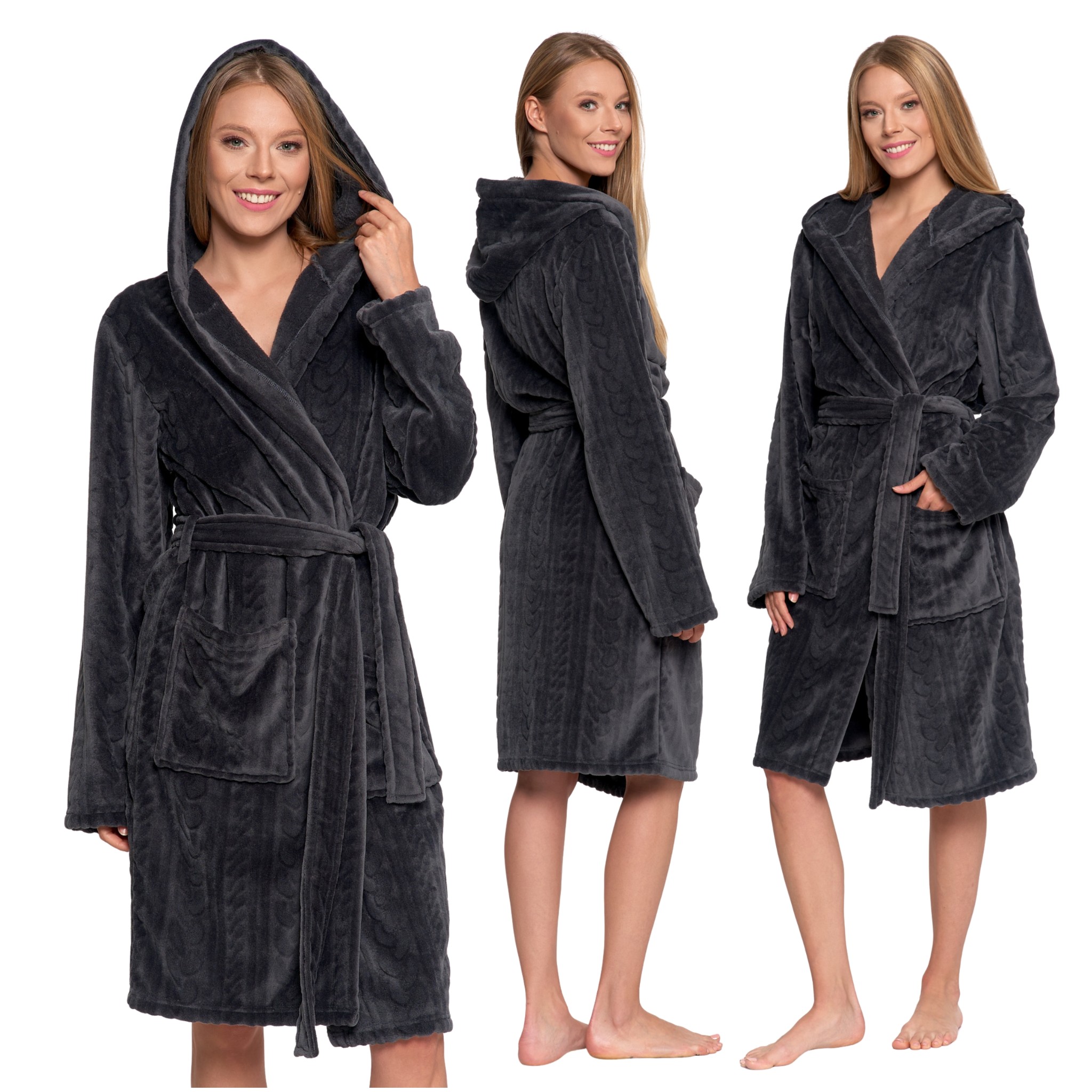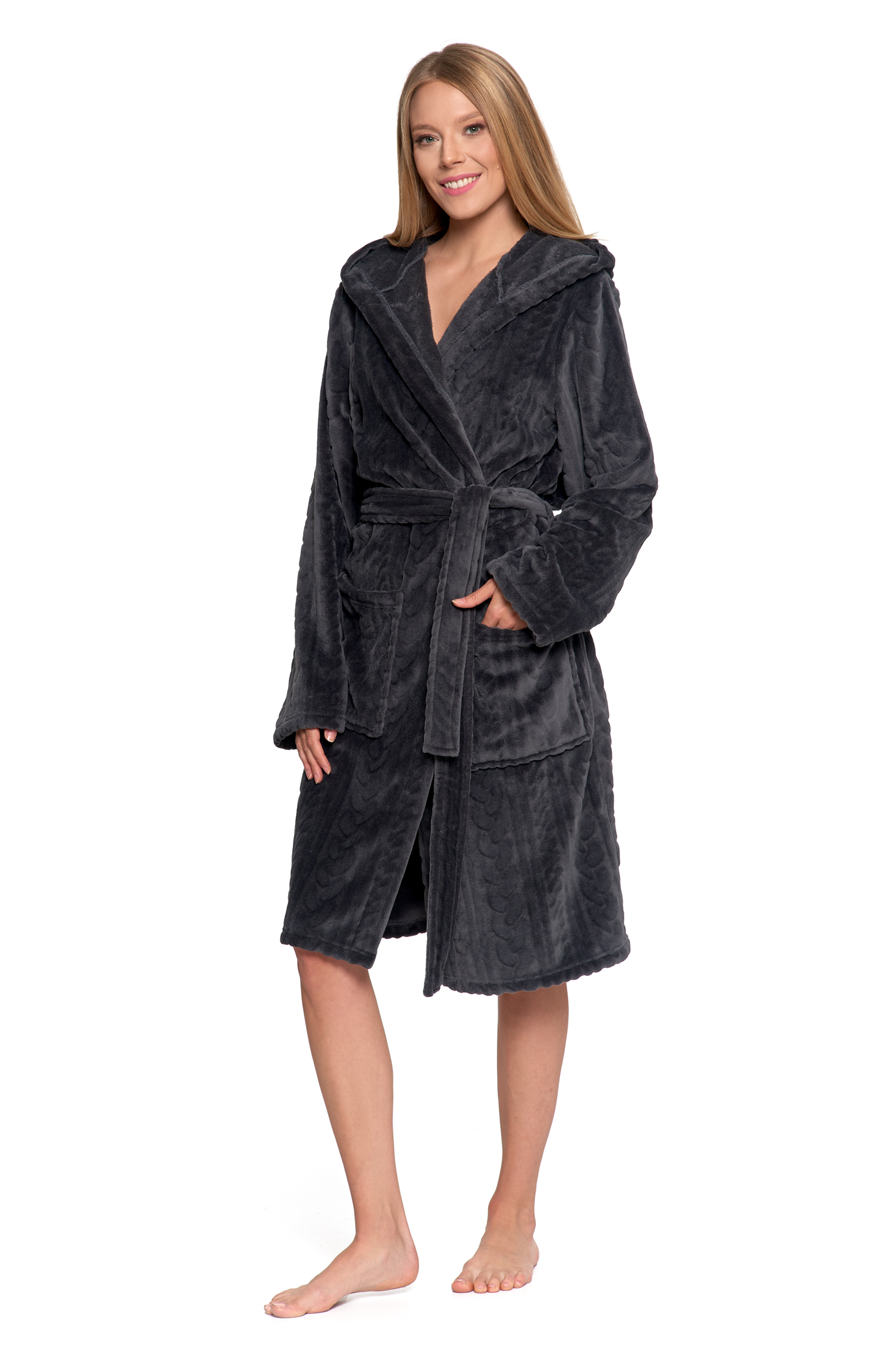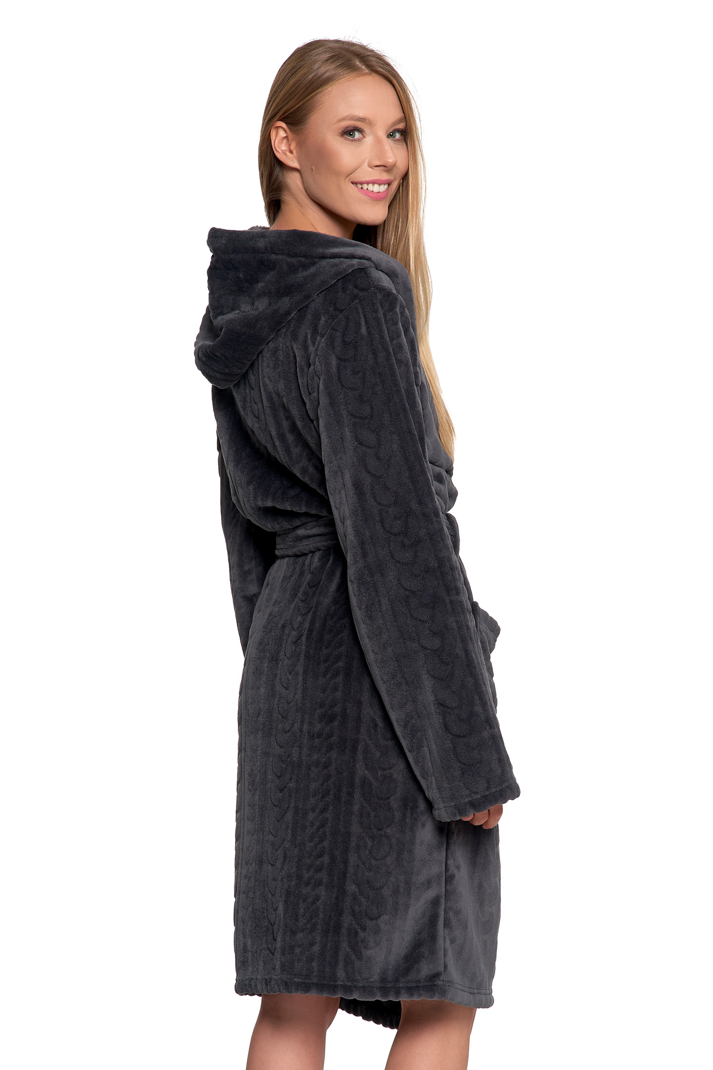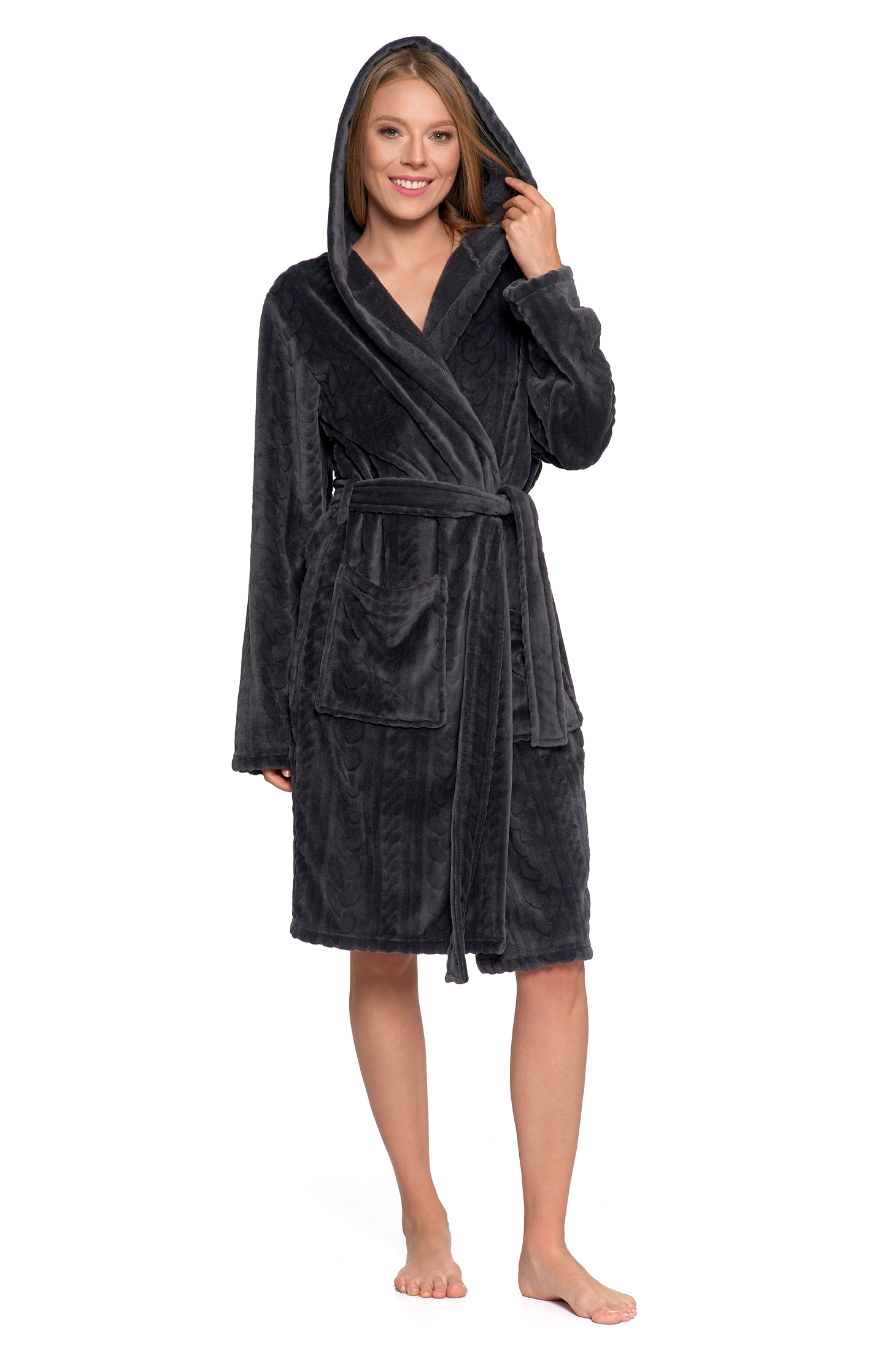 CIEPŁY SZLAFROK DAMSKI NA PREZENT WIĄZANY Z KAPTUREM PUSZYSTY MORAJ