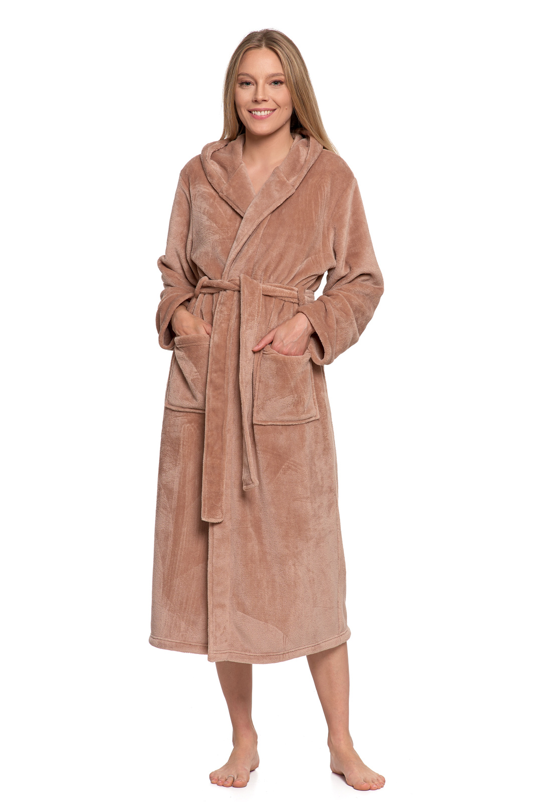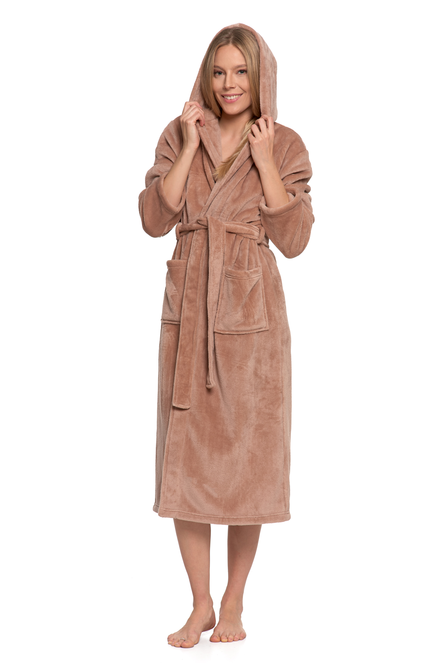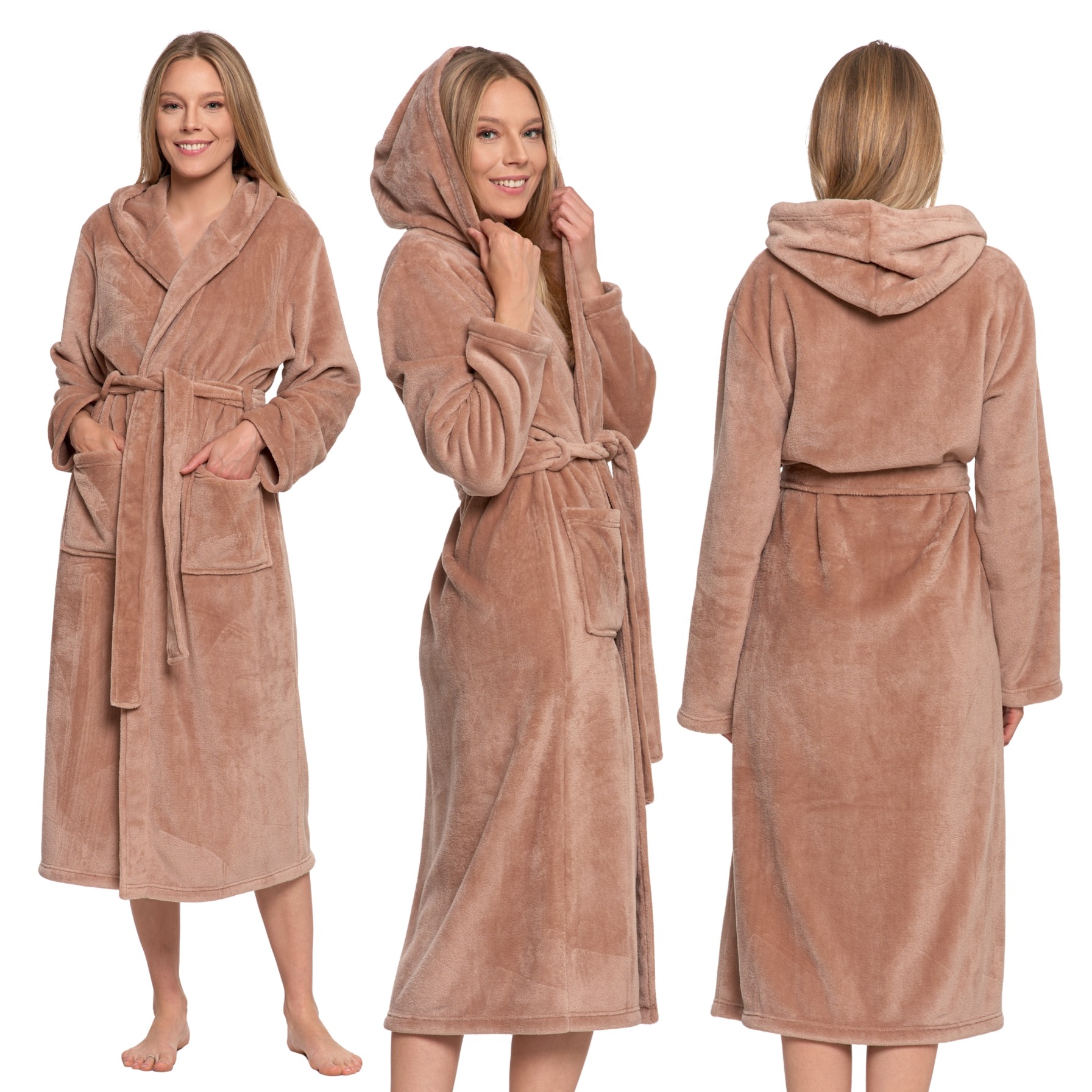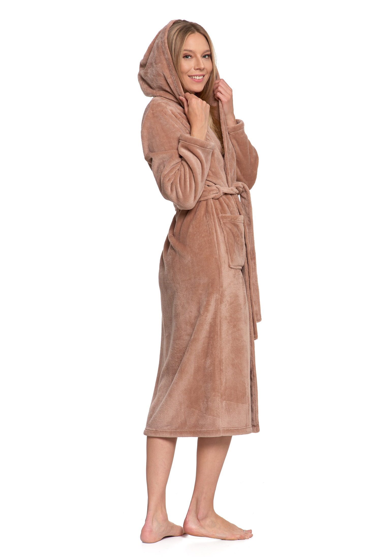 CIEPŁY SZLAFROK DAMSKI NA PREZENT WIĄZANY Z KAPTUREM PUSZYSTY MORAJ