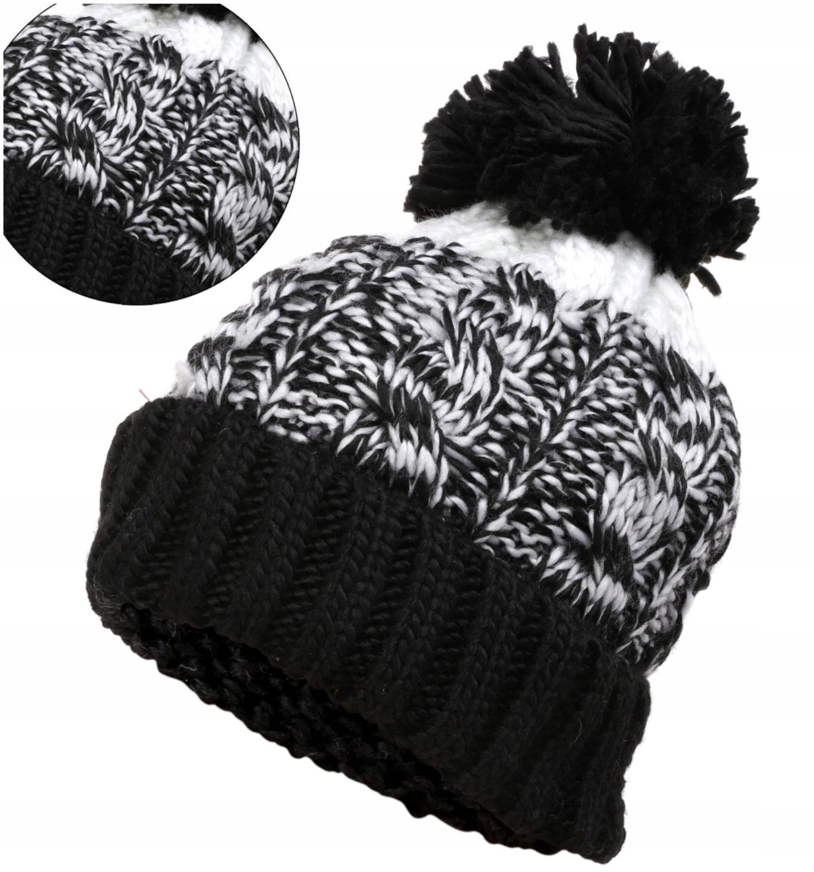 Czapka damska która ma efektowny wzór modnego i efektownego splotu dziewiarskiego. Jest ciepła i przyjemna w dotyku. Podszewka czapki jest wykonana z materiału typu polar, który skutecznie ogrzeje w chłodniejsze dni, ale także charakteryzuje się wyjątkową miękkością, zapewniając maksymalny poziom komfortu.Dodatkowym zdobieniem jest wiecznie modny, duży puszysty pompon.