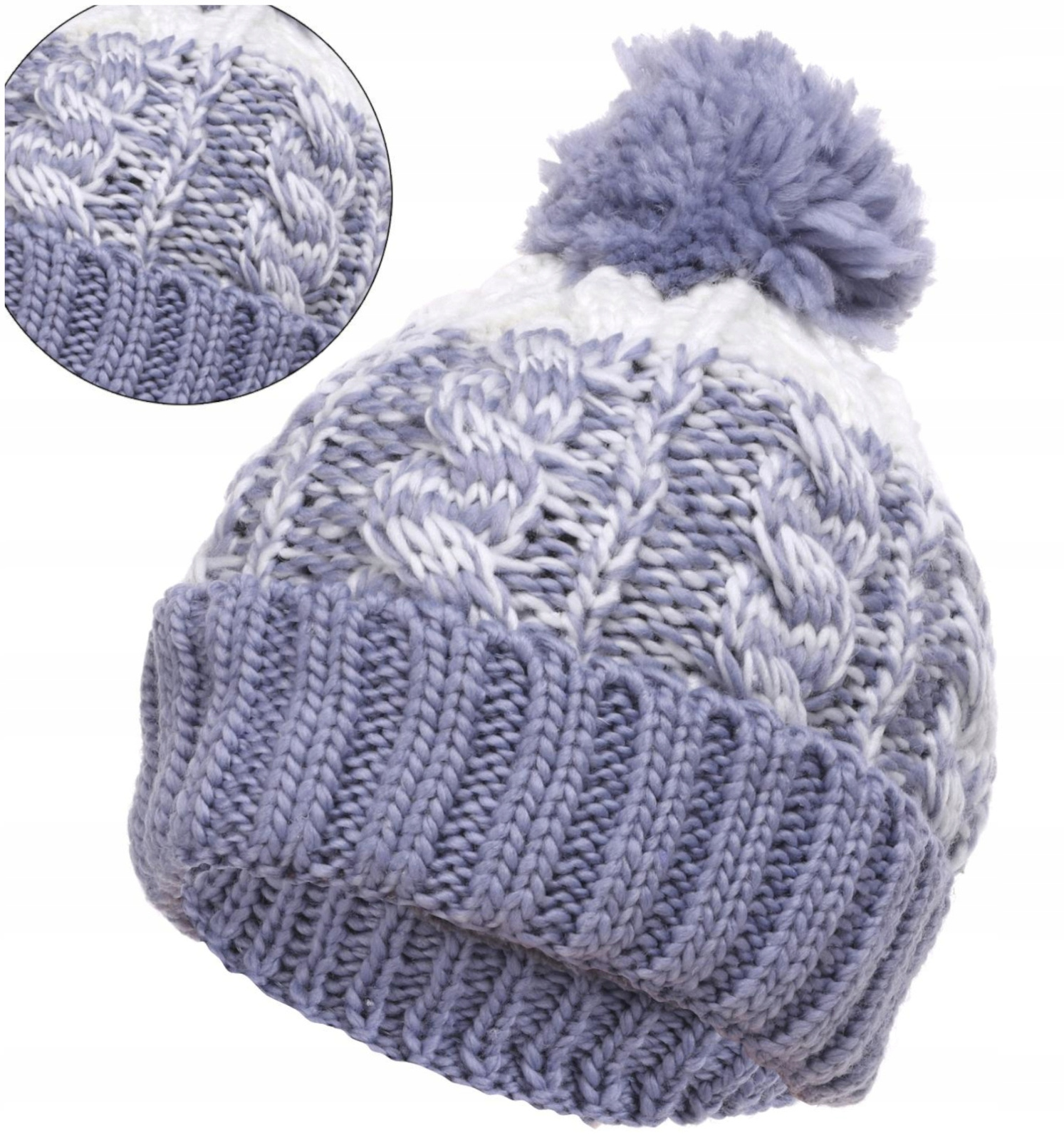 Czapka damska która ma efektowny wzór modnego i efektownego splotu dziewiarskiego. Jest ciepła i przyjemna w dotyku. Podszewka czapki jest wykonana z materiału typu polar, który skutecznie ogrzeje w chłodniejsze dni, ale także charakteryzuje się wyjątkową miękkością, zapewniając maksymalny poziom komfortu.Dodatkowym zdobieniem jest wiecznie modny, duży puszysty pompon.