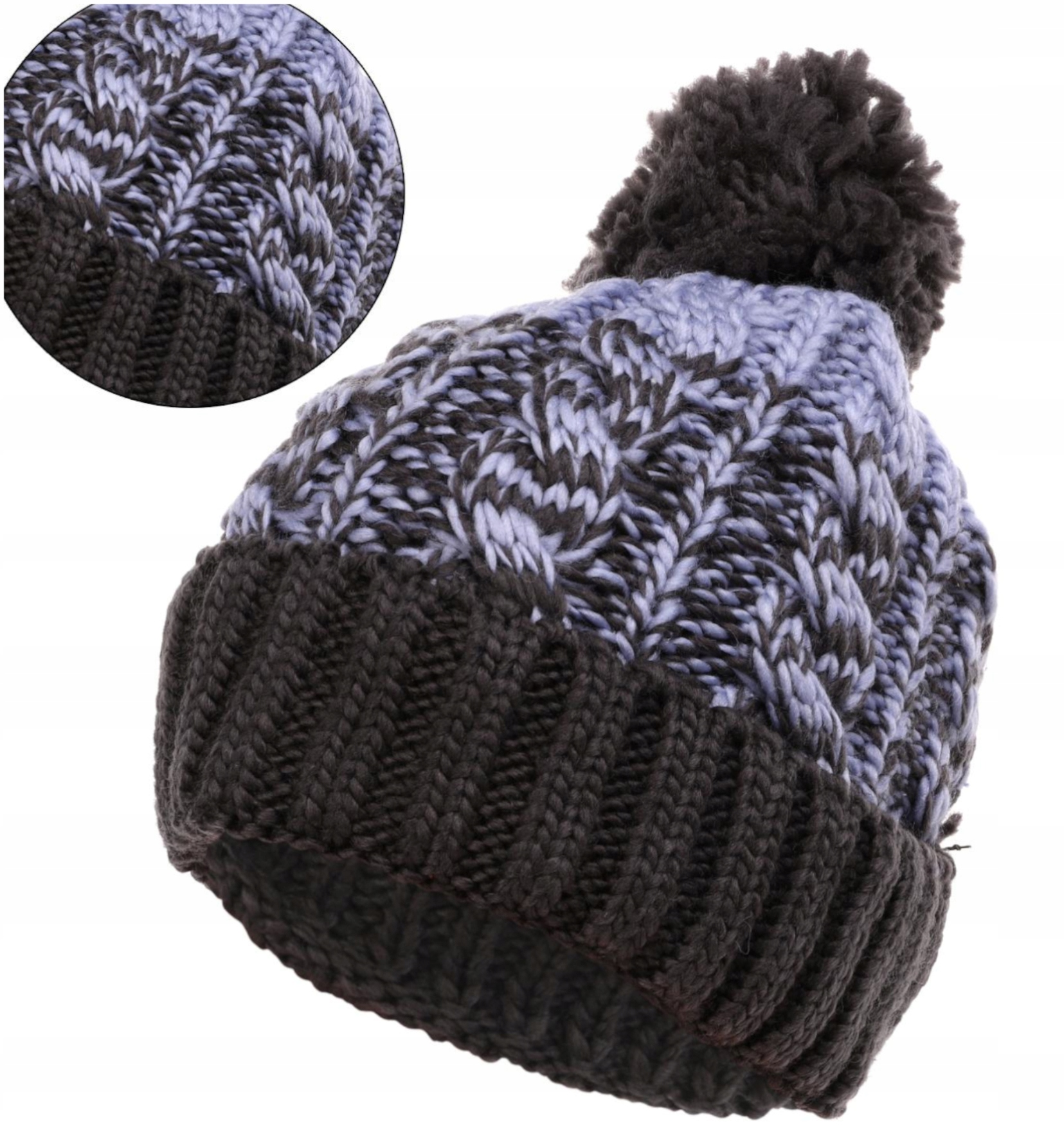 Czapka damska która ma efektowny wzór modnego i efektownego splotu dziewiarskiego. Jest ciepła i przyjemna w dotyku. Podszewka czapki jest wykonana z materiału typu polar, który skutecznie ogrzeje w chłodniejsze dni, ale także charakteryzuje się wyjątkową miękkością, zapewniając maksymalny poziom komfortu.Dodatkowym zdobieniem jest wiecznie modny, duży puszysty pompon.